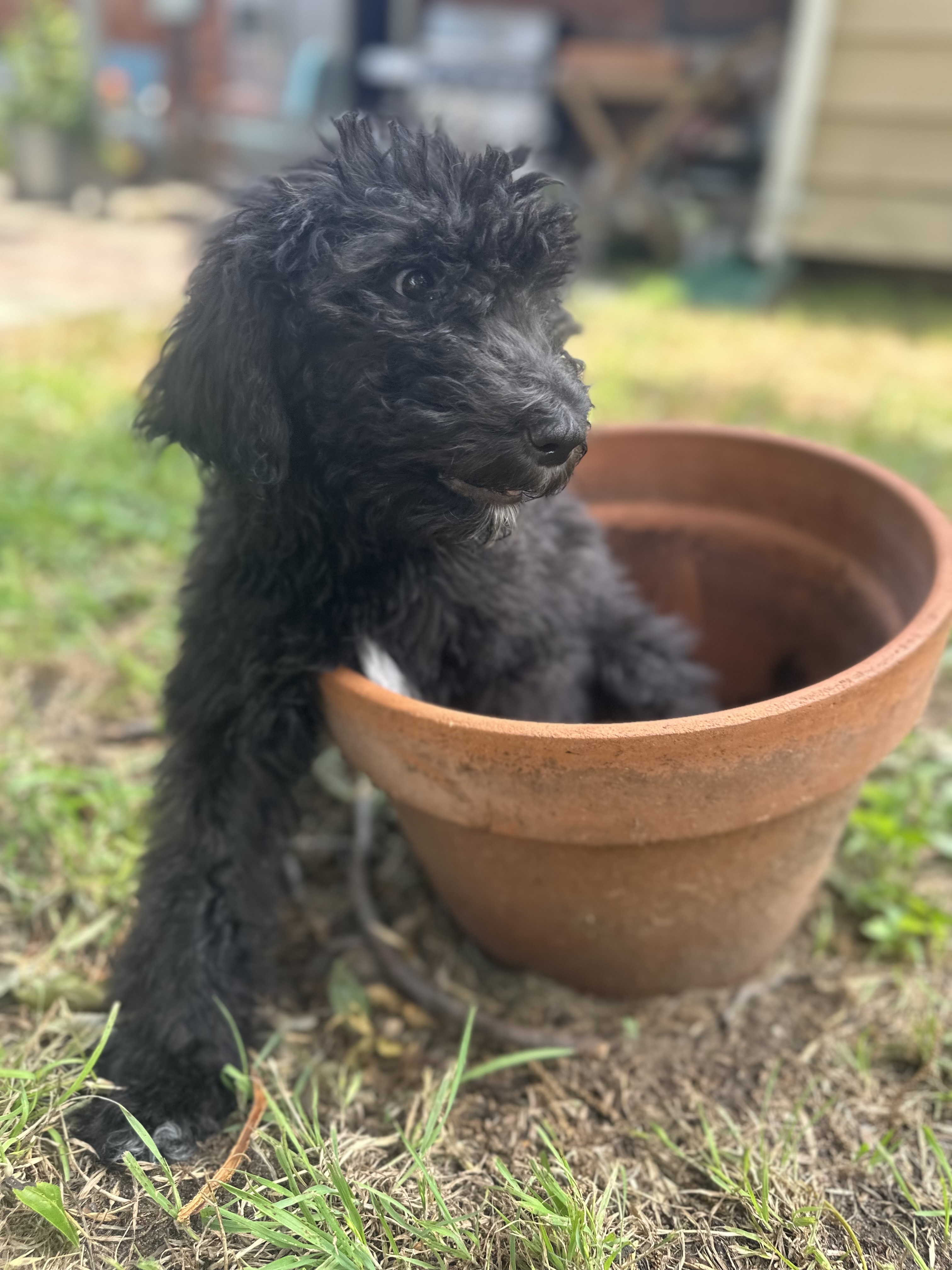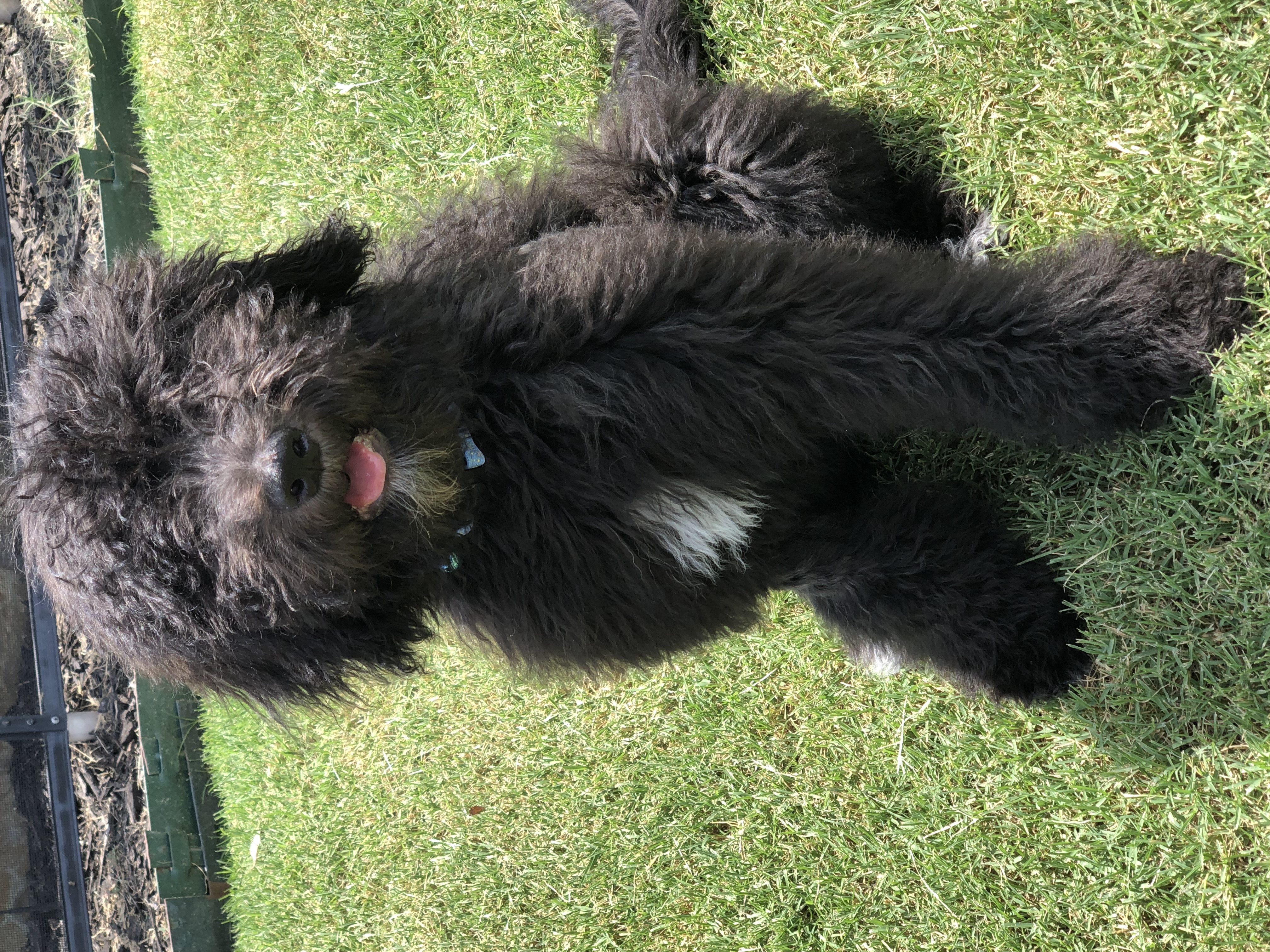 Hi everyone! My name is Domino and I am a 4 month old Sheepadoodle girl. I weigh about 15 pounds with the softest and prettiest fur! I shed very little too!