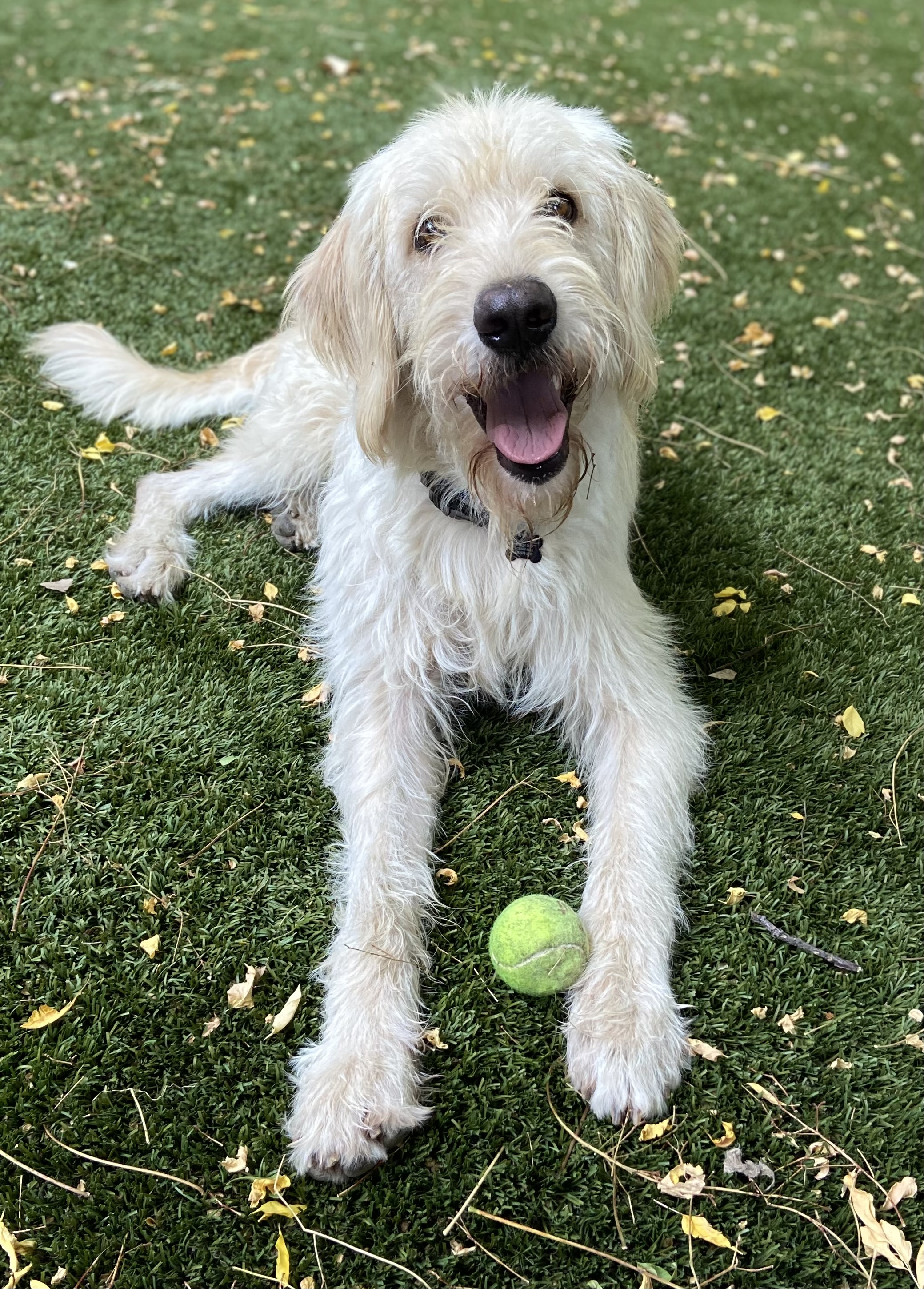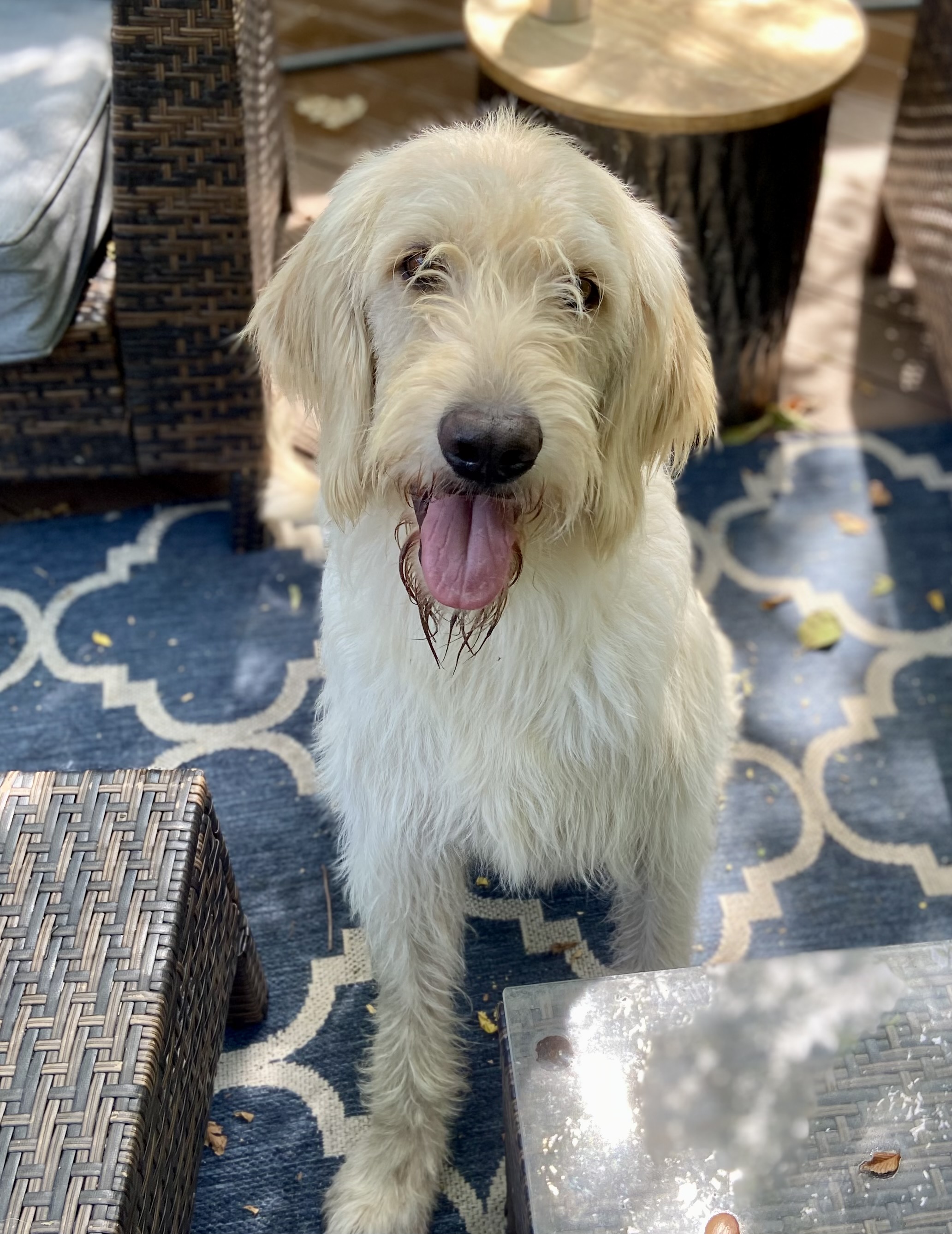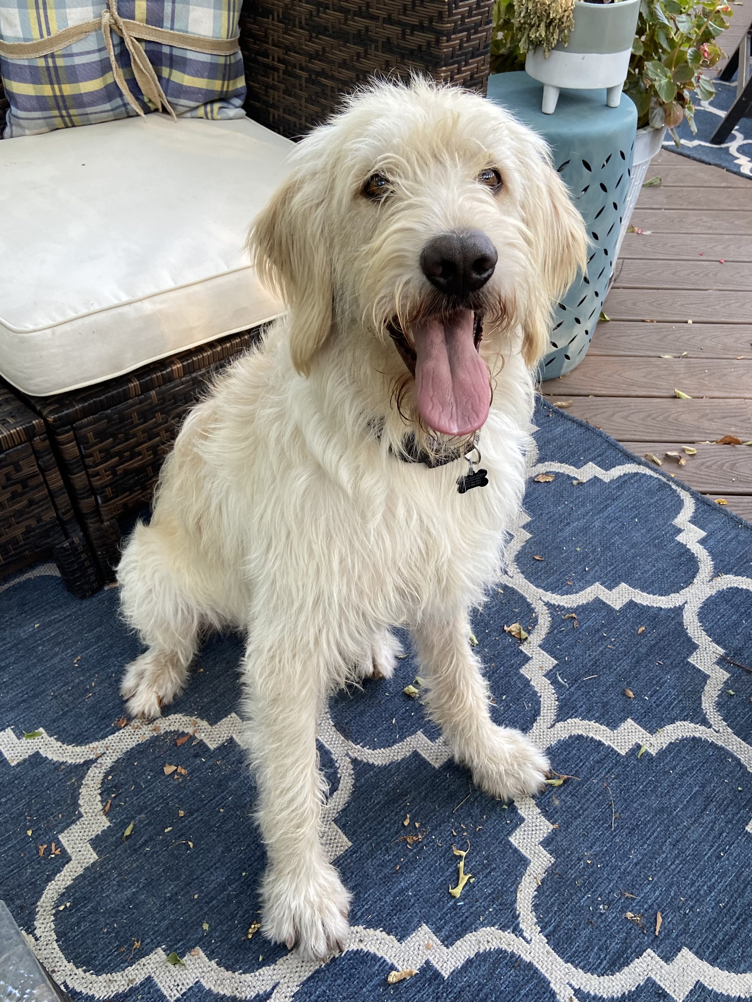 I am a handsome and charming Male Labradoodle with soft, wavy fur that's reminiscent of my Labrador heritage. I'm the perfect blend of both breeds, displaying more of the Labrador personality traits. My expressive eyes and endearing smile are sure to win your heart. I am about 3 years old and weigh 74lbs!