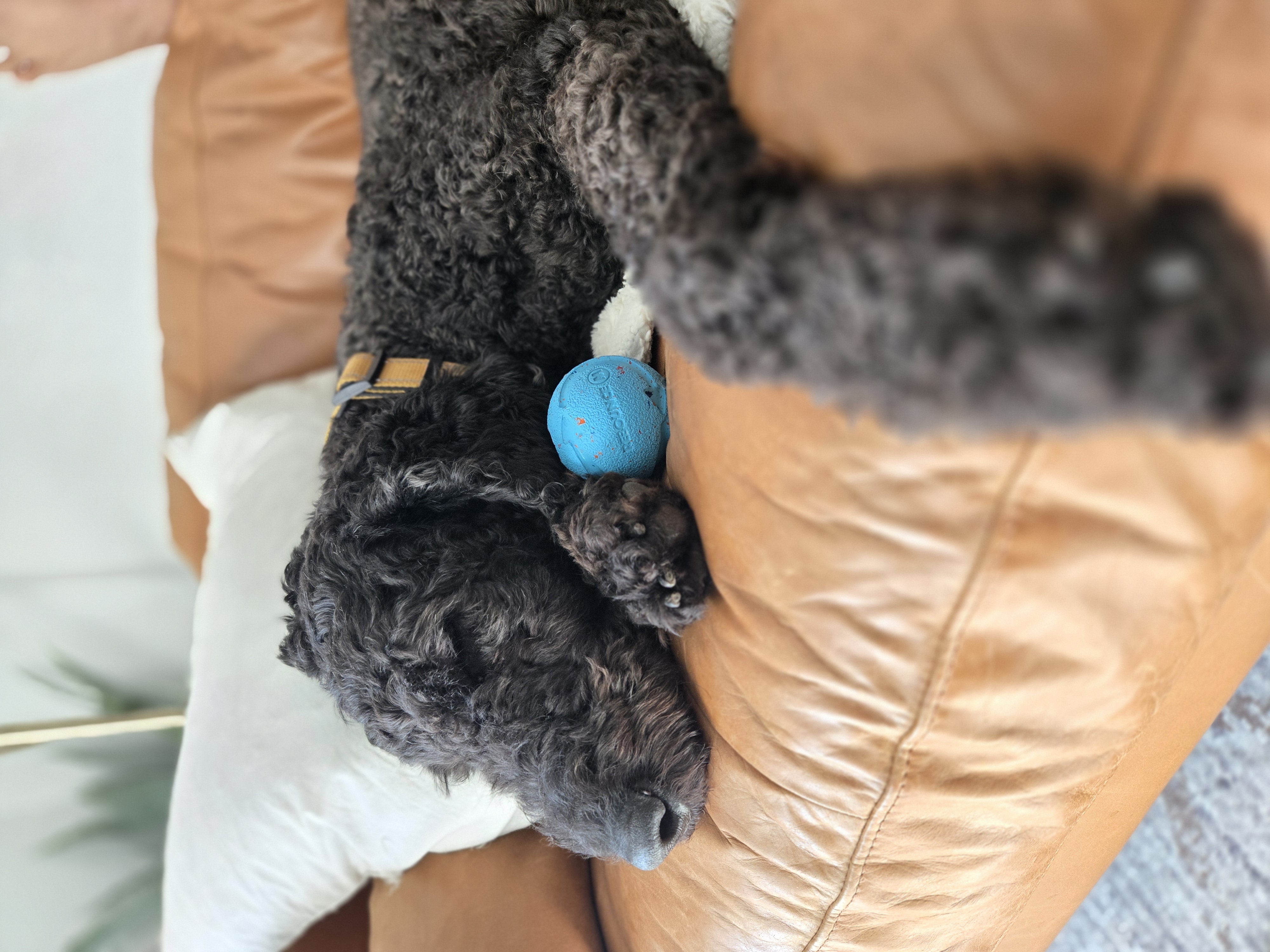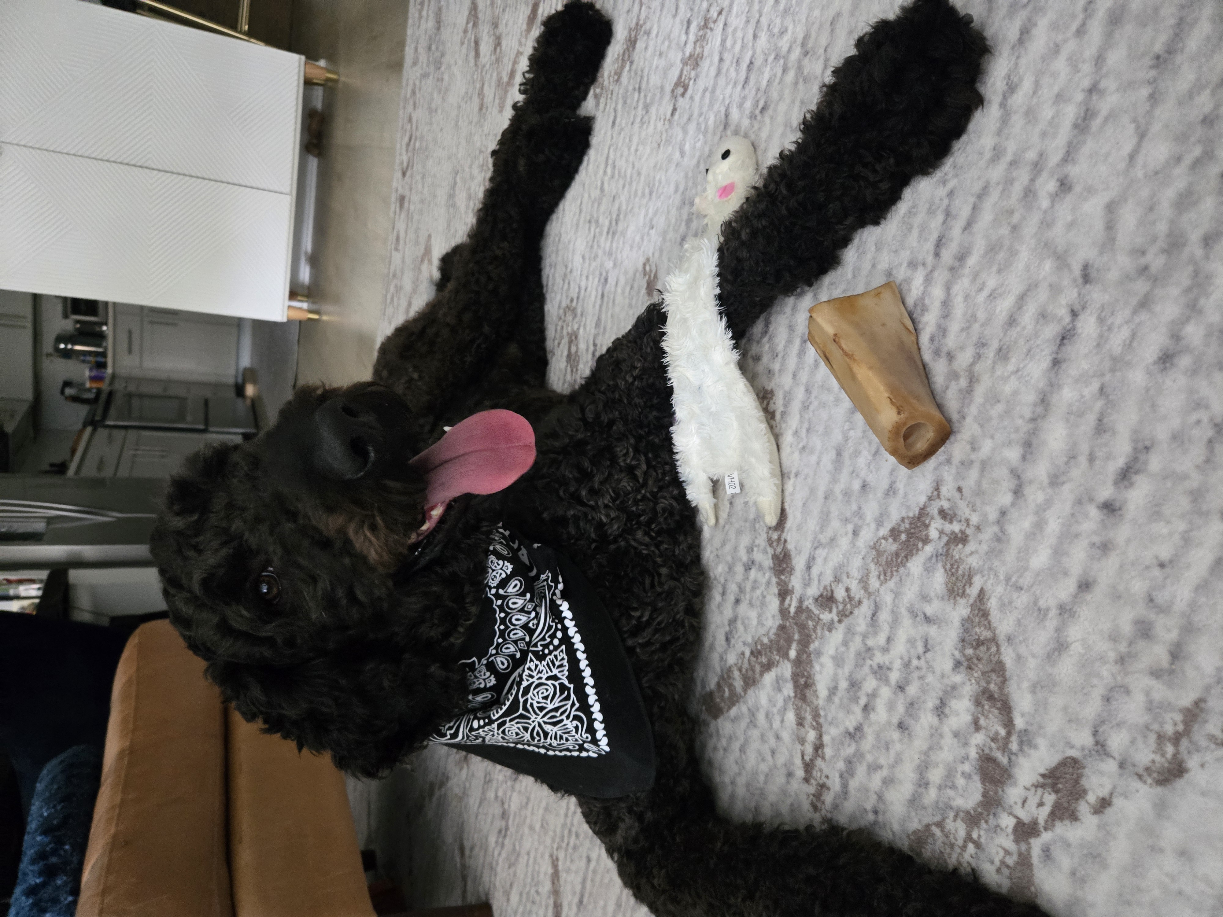 Some of my daily rituals involve following around my 🐈⬛ sis, forcing my 🐩 sis to play tug of war or wrestle around, cuddling up to my foster mom…or snoozing on the couch 💤. When I’m not napping, I love spending time inside & outside with my family…I do a happy dance when I see my leash since that means it’s time to take our daily walks to the park (I’m good on a leash save for the occasional tug to go say hi to some bushes 🌲 💦 😉)! I have access to dry food always since I’m not an overeater, for dinner I get some yummy wet food mixed in which is a FAVORITE part of my night… I’ll even sit & wait for you to tell me “okay” so I can chow down!