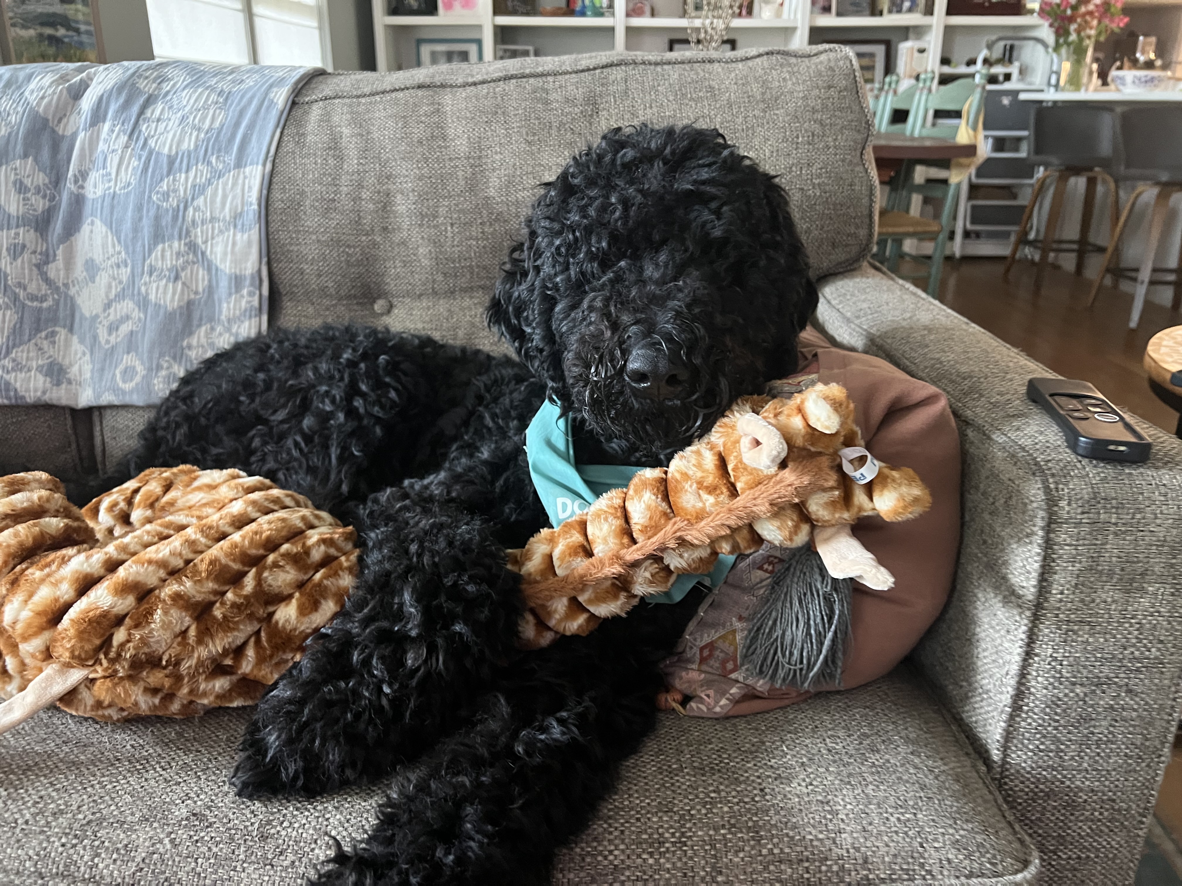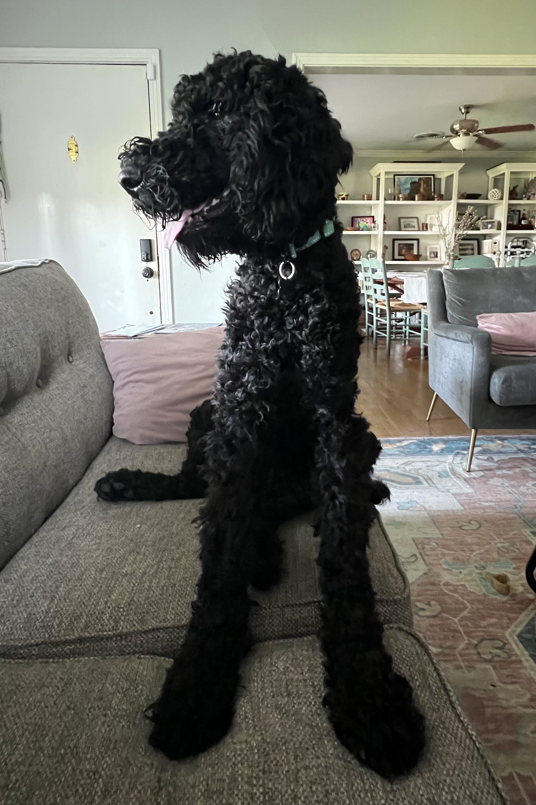 I’m an 11-month-old, 65-pound, 34-inches-tall bundle of love—part poodle, part lab, and completely chill. People I meet always call me “handsome,” “elegant,” and “dignified.” I don’t totally know what that means, but I do know they can’t resist petting my soft, shiny, curly black coat.