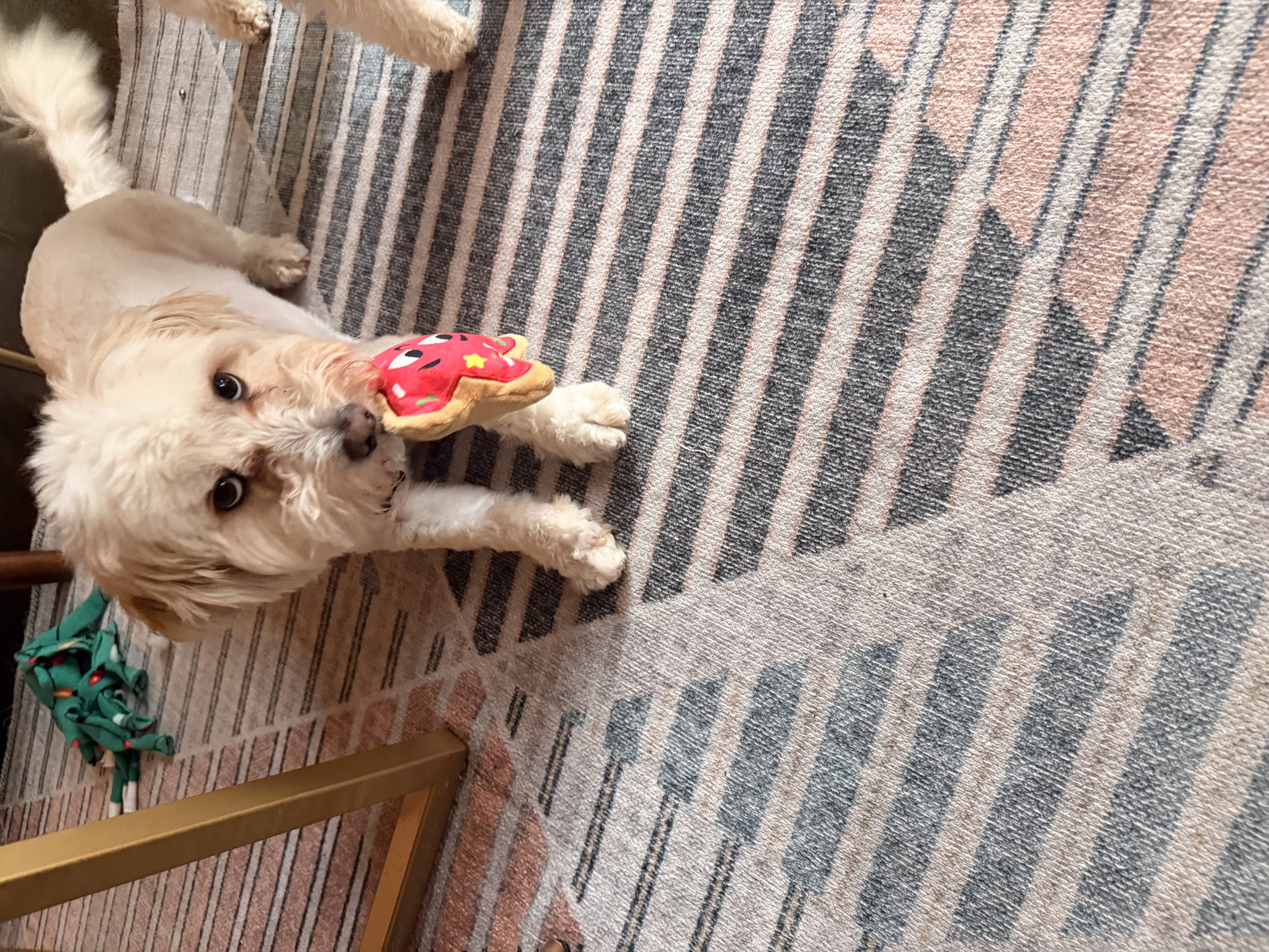 I’m a low-to-medium energy kind of guy who would much rather curl up next to you than get into mischief. I enjoy my toys and a nice game of fetch, but my favorite part of the day is giving one big hug before bedtime and then sleeping peacefully beside my person. I’m naturally quiet, gentle, and very sensitive. Sudden loud noises can make me nervous, and certain sounds near my ears (like clips or Velcro) aren’t my favorite, but I’ve already made great progress with the help of kind, patient humans. Calm environments help me feel secure, and I truly thrive when life feels predictable and peaceful.
