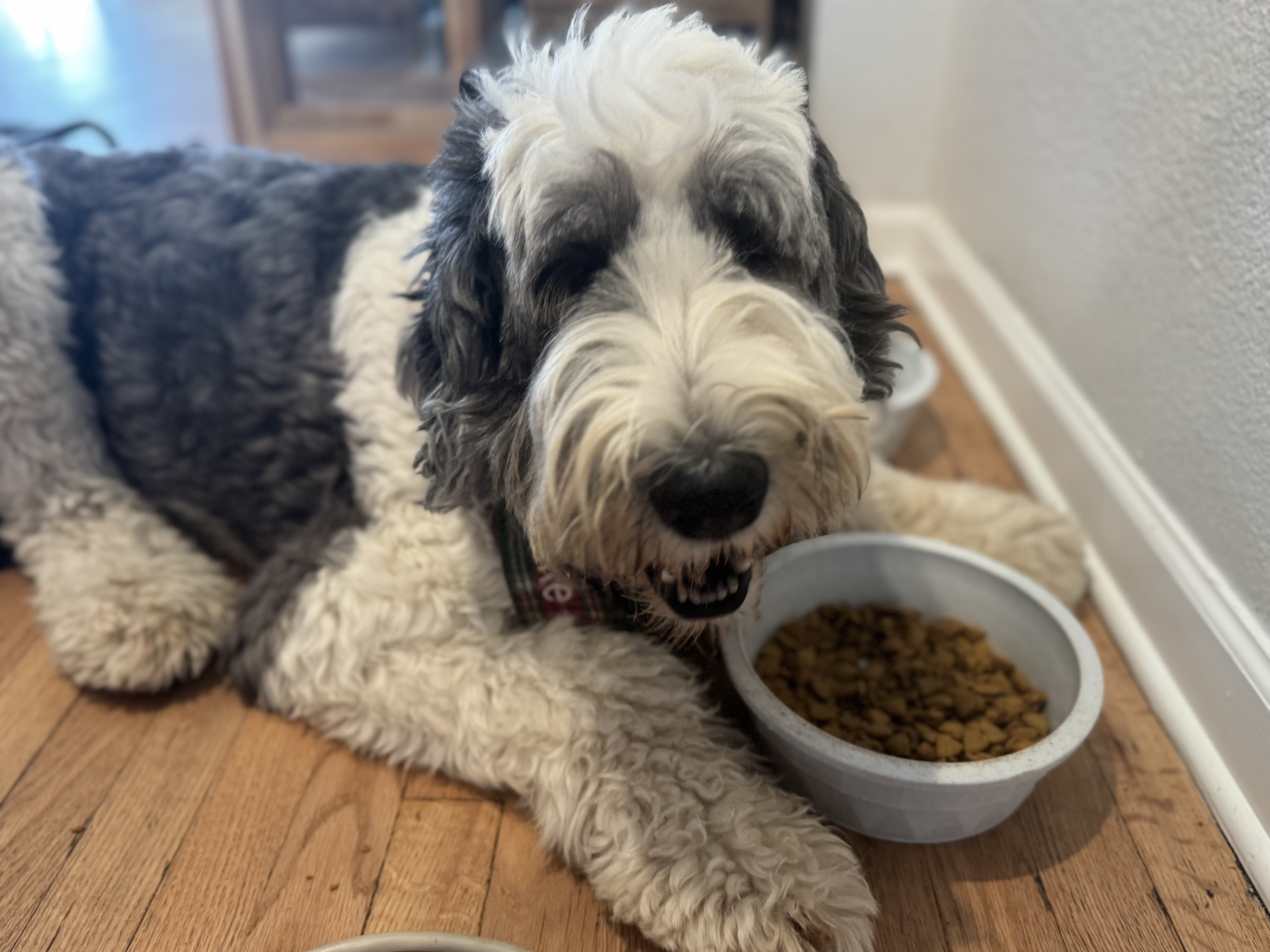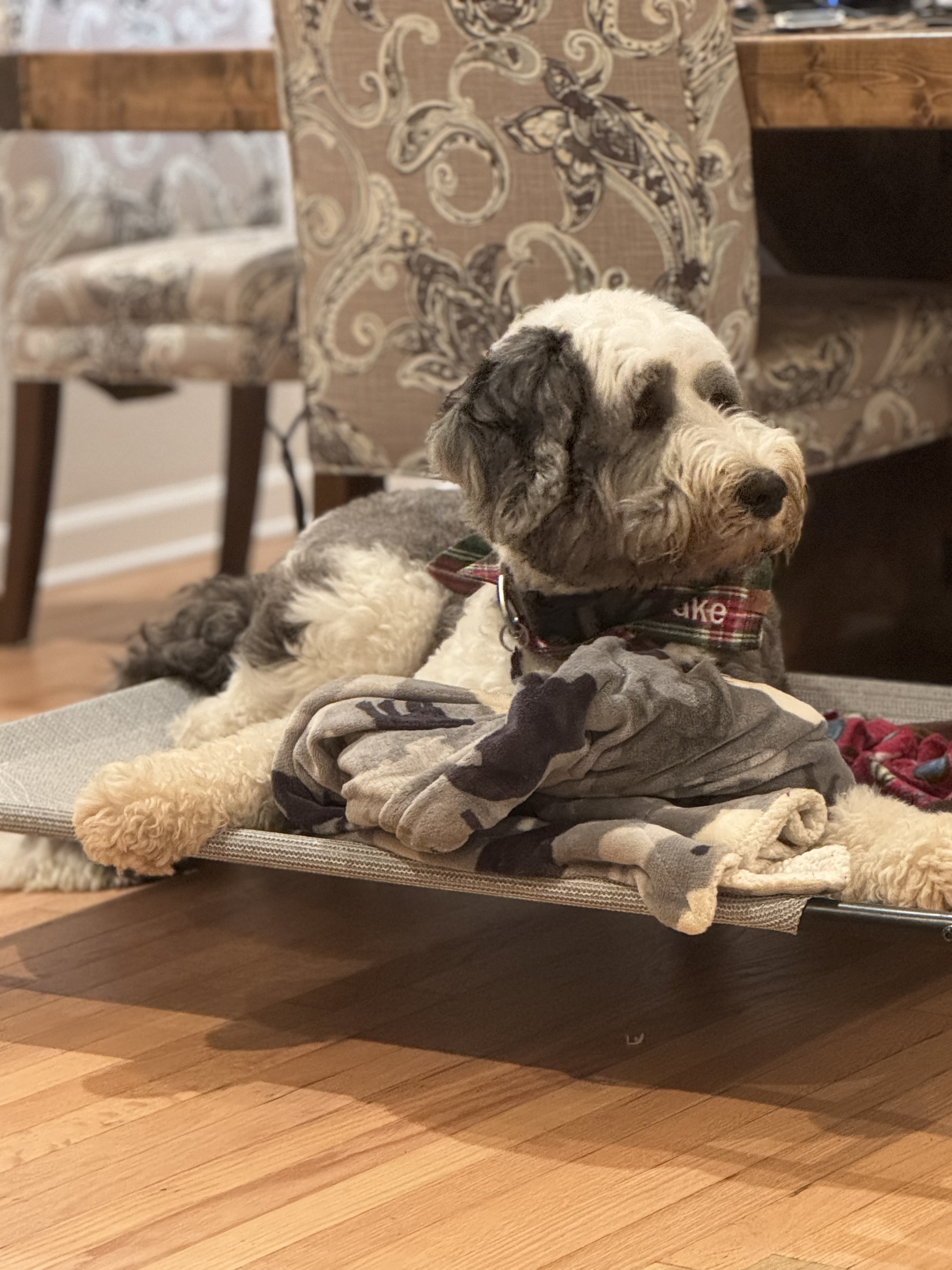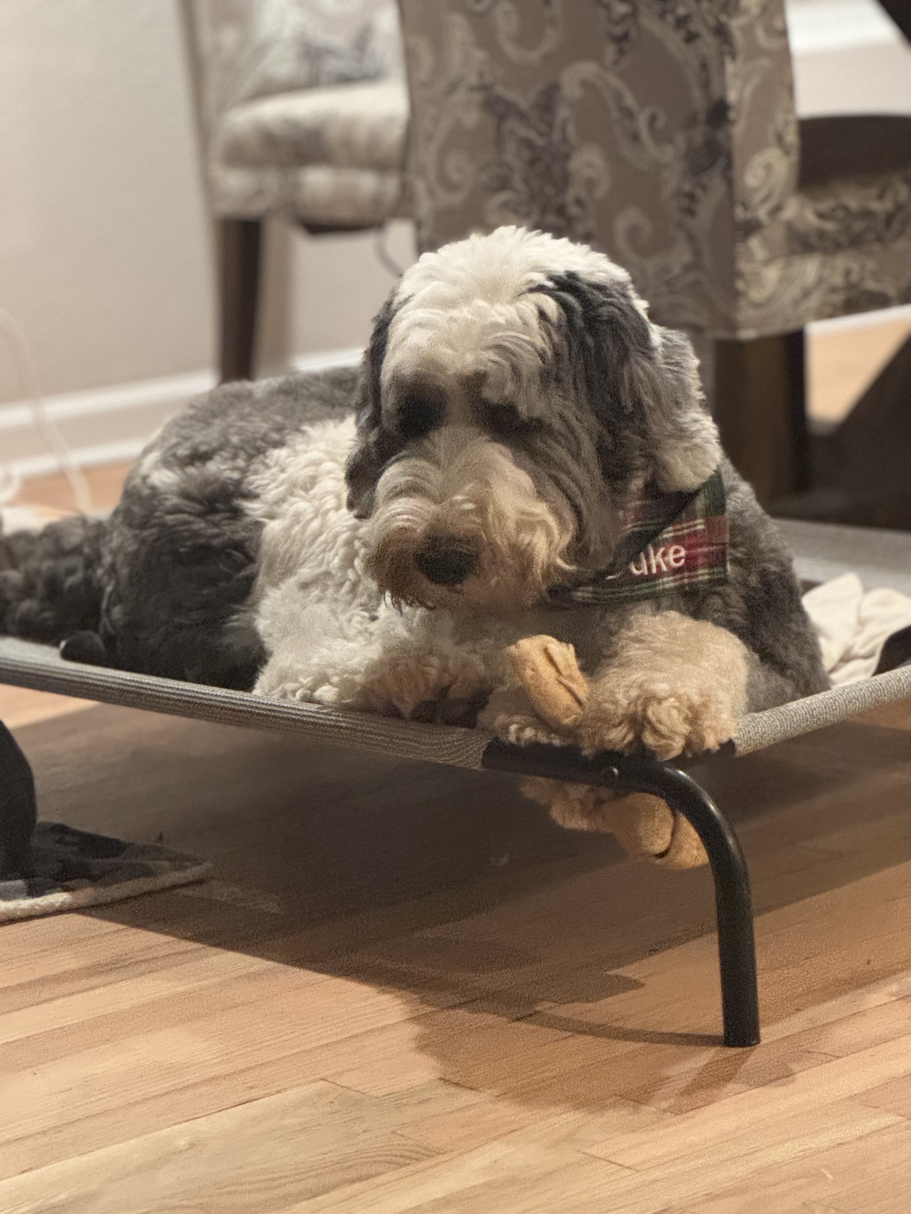Hi there! My name is Duke, and I’m a 4-year-old, 80-pound male Sheepadoodle—a mountain of love, if I do say so myself!
