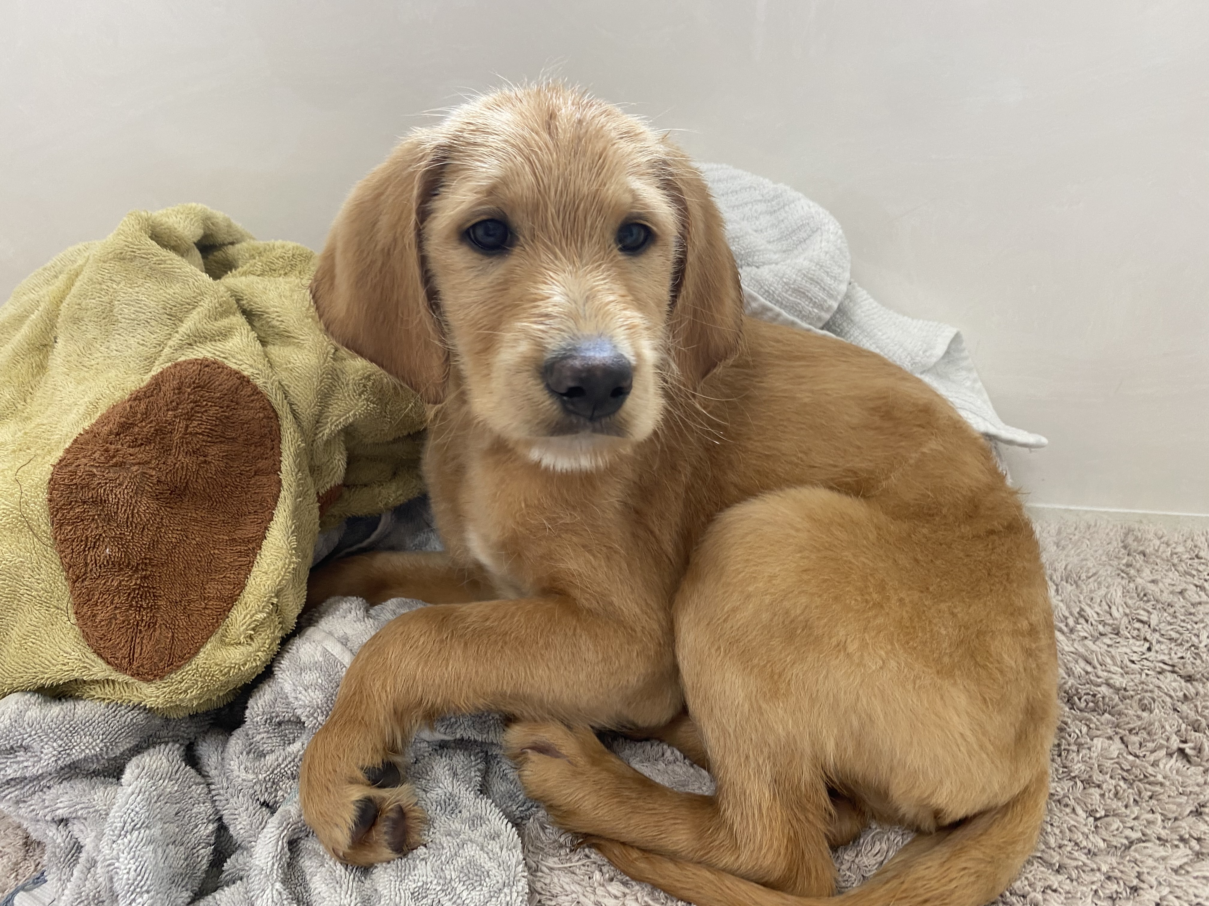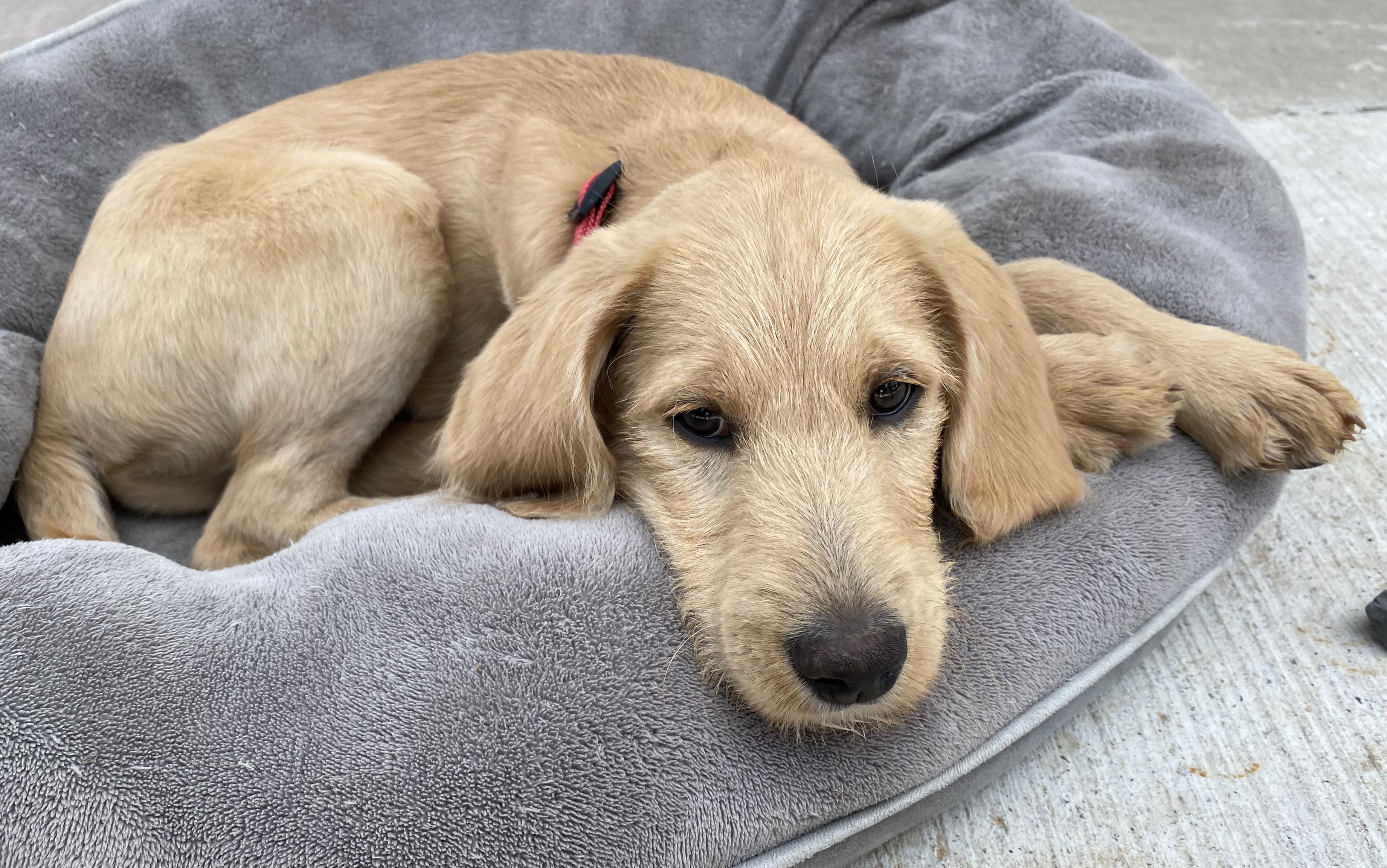 Hi there! Eggie here. I’m one cool dude. I’m a 15-Week-Old floppy male labradoodle and the sweetest 18 lb boy you’ll ever meet!