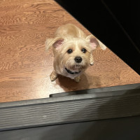 I’m a big fan of belly rubs, morning walks, and curling up beside you—or right on you, if I can get away with it. I use my paws like little hands to remind you to keep petting me or to nudge that phone out of your hand. I’m a low-maintenance kind of gal: I rise when you rise, start my day with a potty break, breakfast, and then a nice stroll. The rest of my day is filled with light zoomies, snacks, snuggles, and supervised people-watching.