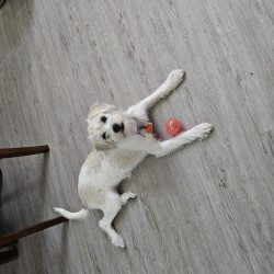 My name is Empanada, and I am a 5-month-old female poodle mix, weighing 18 lbs and growing every day! I'm a lovable and friendly pup who absolutely adores playing. Let me tell you a bit about myself because I’m on the lookout for my forever home, and maybe it’s with you!