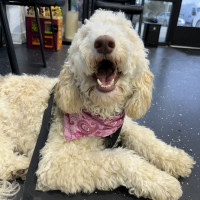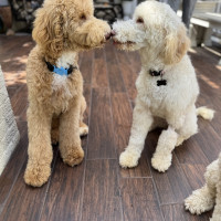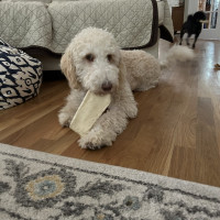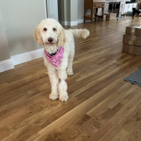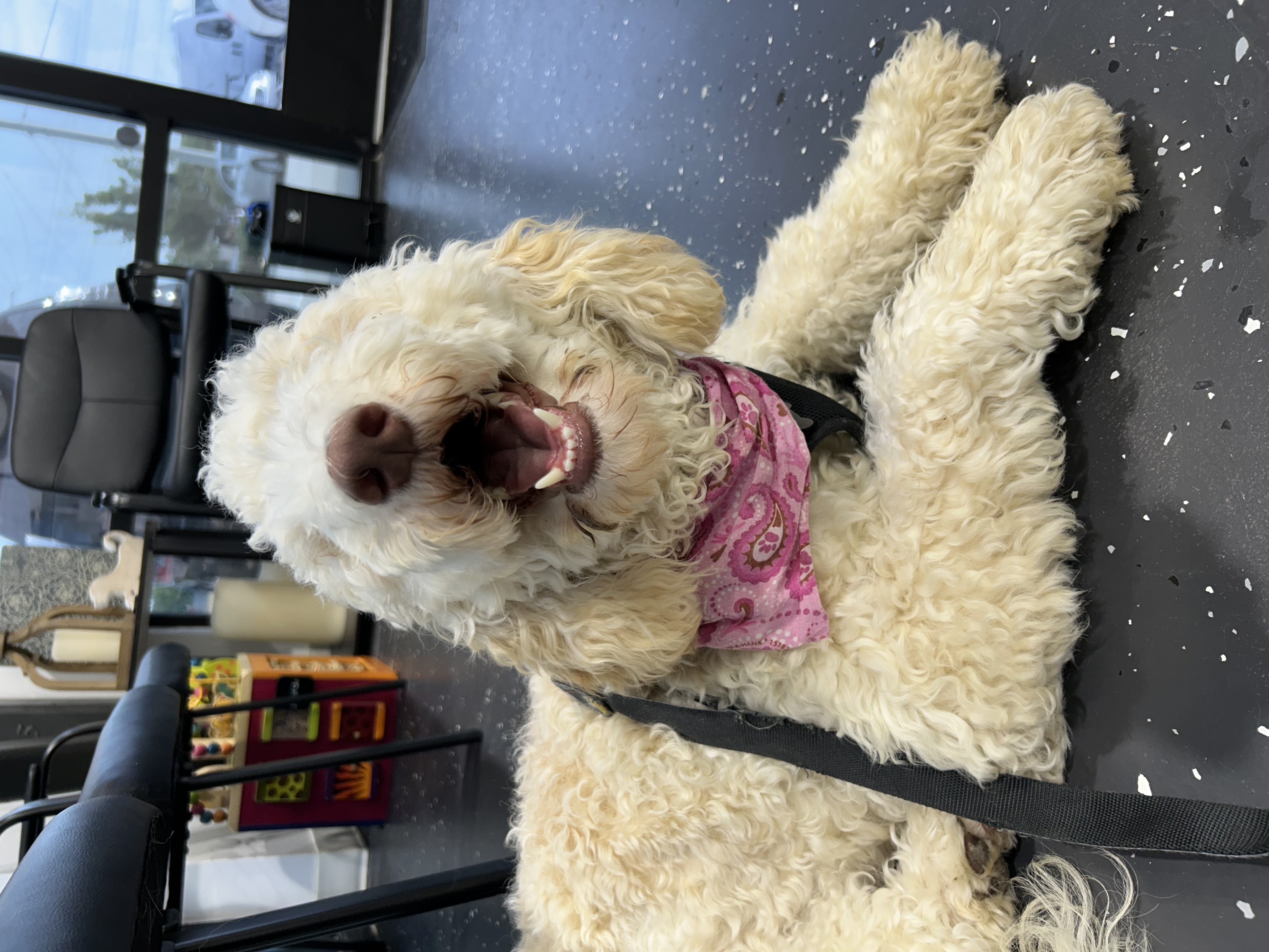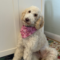 Hi, I'm Fairway – the best part of the course and even better as your loyal sidekick. I'm the kind of pup who makes life feel like a hole-in-one. I'm a 9-month-old doodle with soft, curly fur and an even softer heart.