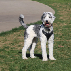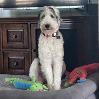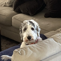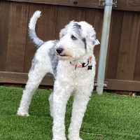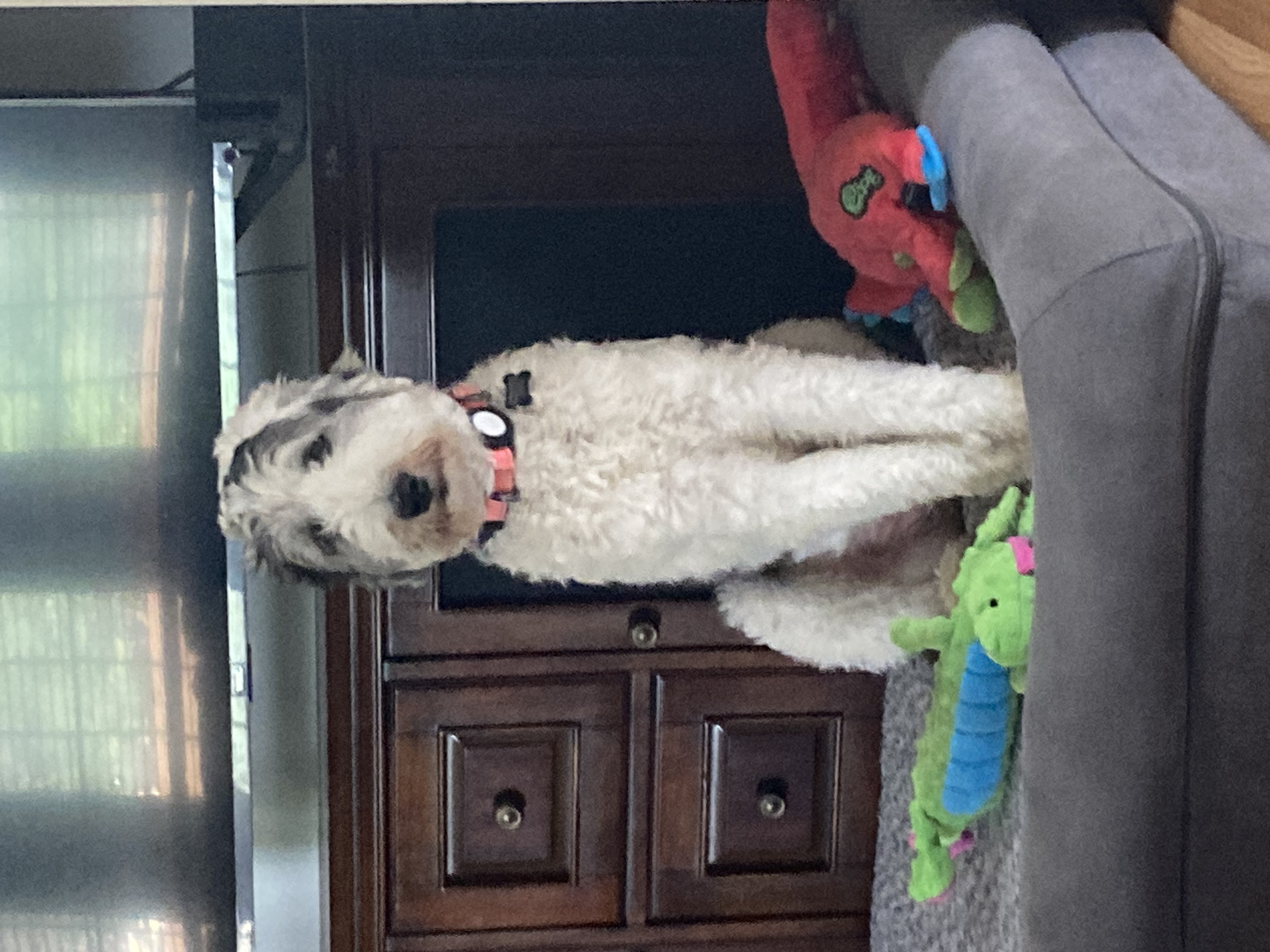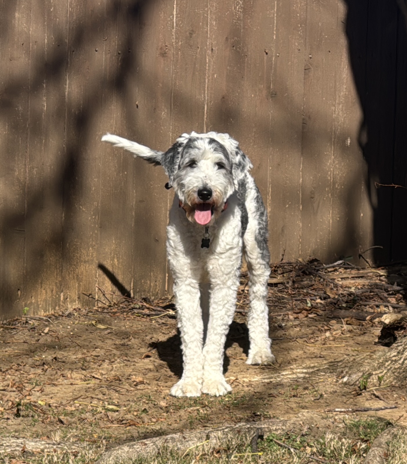 Hi, I’m Faye. I’m a 3 year old medium sized Sheppadoodle weighing about 45 pounds, and I’m a gentle, thoughtful girl with a calm soul. I love being close to my people, quietly keeping them company, while still appreciating having my own cozy space to retreat to when I need it. I’m sweet, a little shy, and happiest when life feels steady and kind.