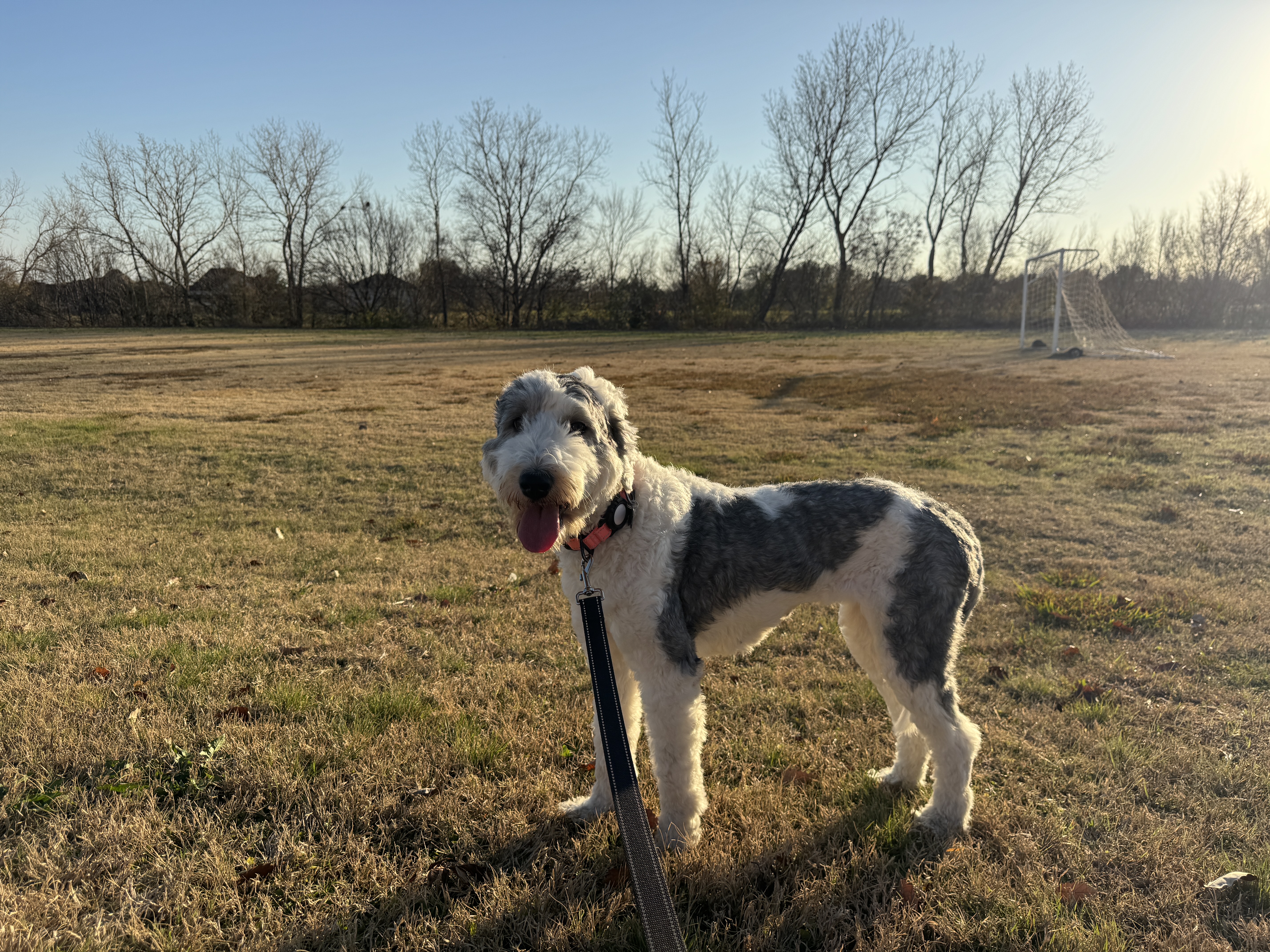 I do really well with routine. I head to the backyard three times a day to play, run, and take care of business, and I’m fully potty trained and crate trained. My crate is my safe place, and I’ll often choose it when I want a break. I’m still learning about barking, but with patience, reassurance, and consistency, I get better every day.