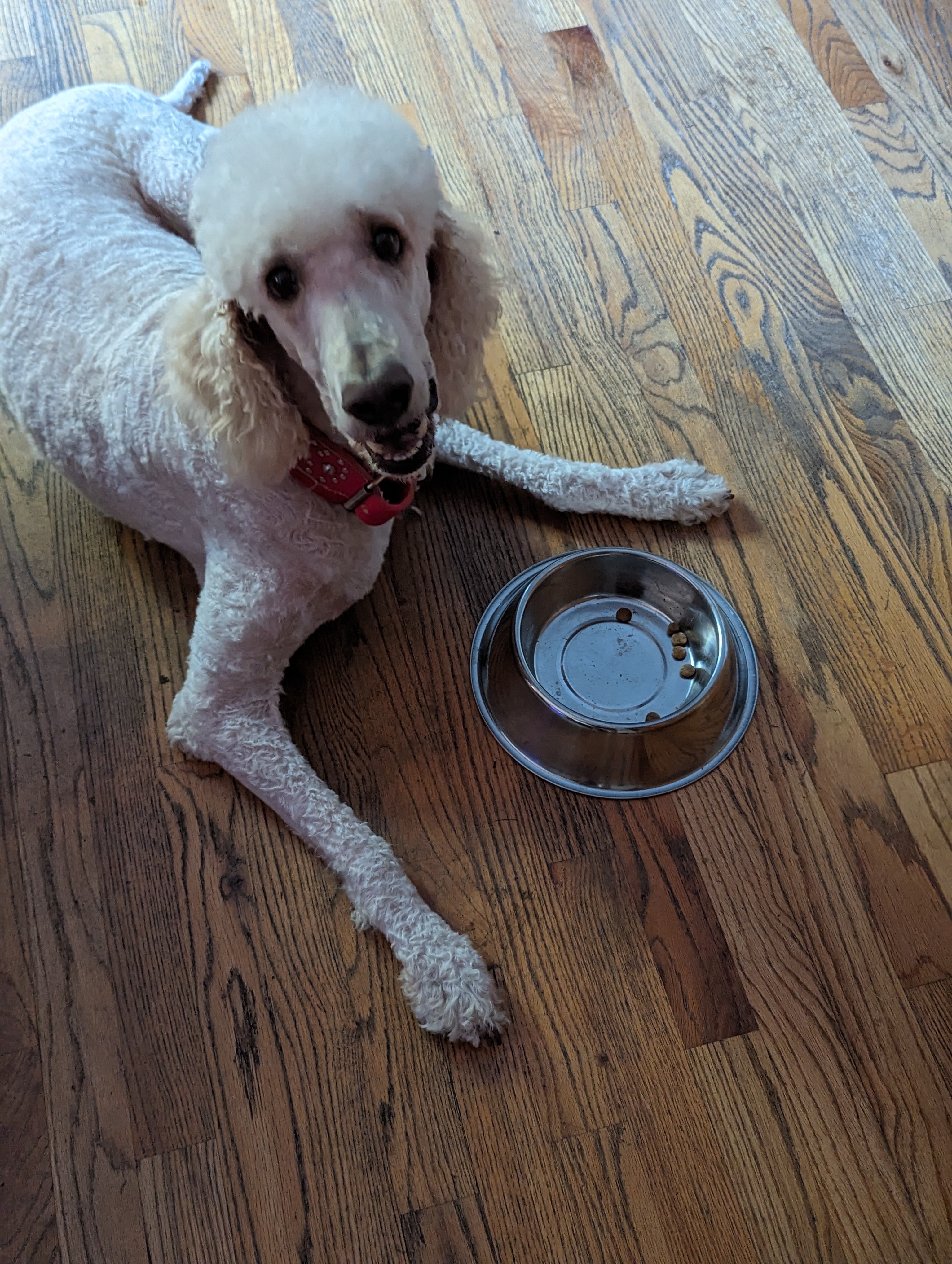Hello! My name is FeFe and although a lady should never tell her actual age, I’ll tell you—I’m 4 years old and I just KNOW I’m a pure Standard Poodle... or very close to it! Another secret? I weigh 59 1/2 lbs., although I don’t like to talk about that either.