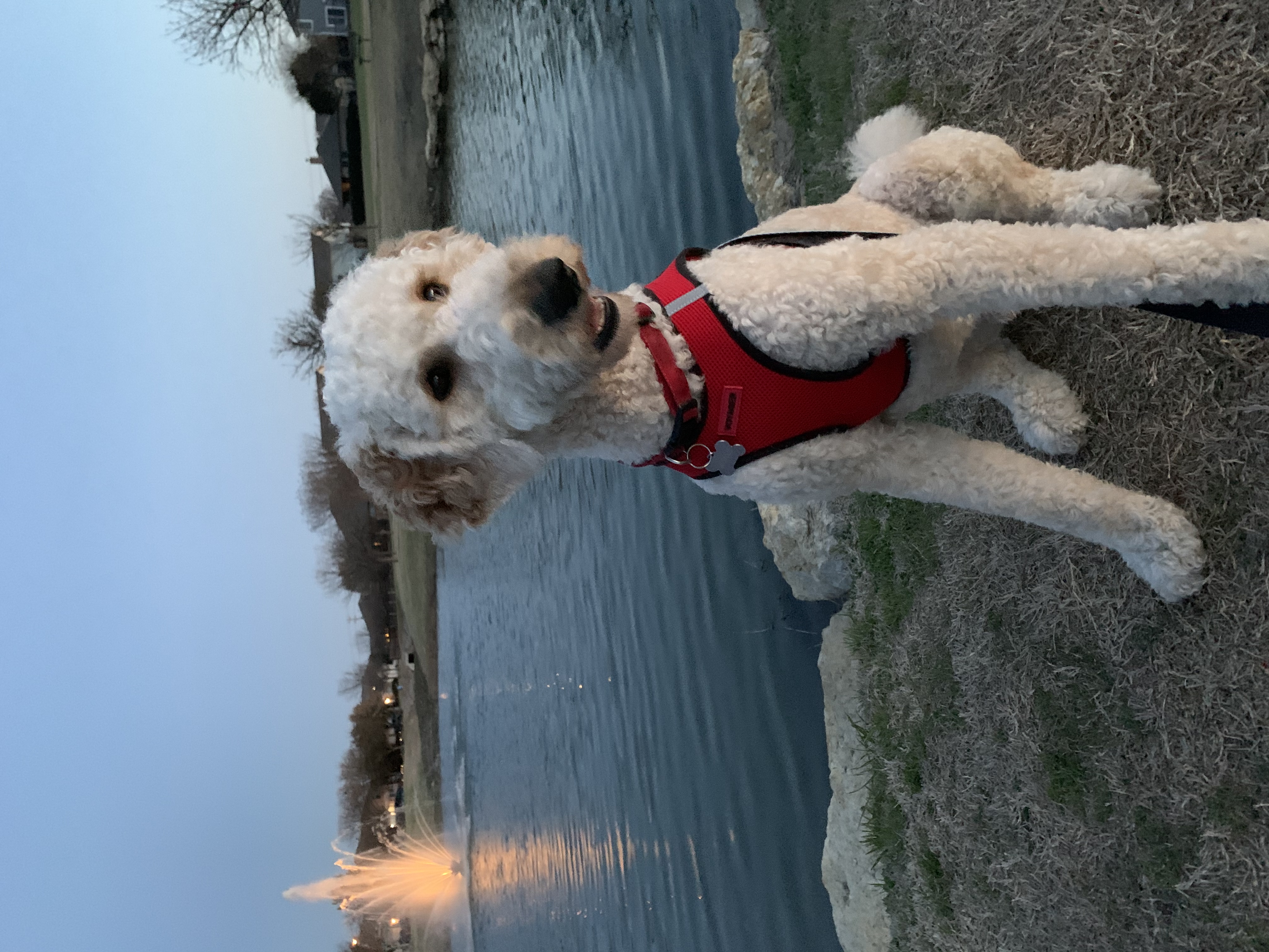 Hello! I’m Fergus! I’m a 1.5-year-old male Goldendoodle weighing in at 45lbs and I don’t shed at all!