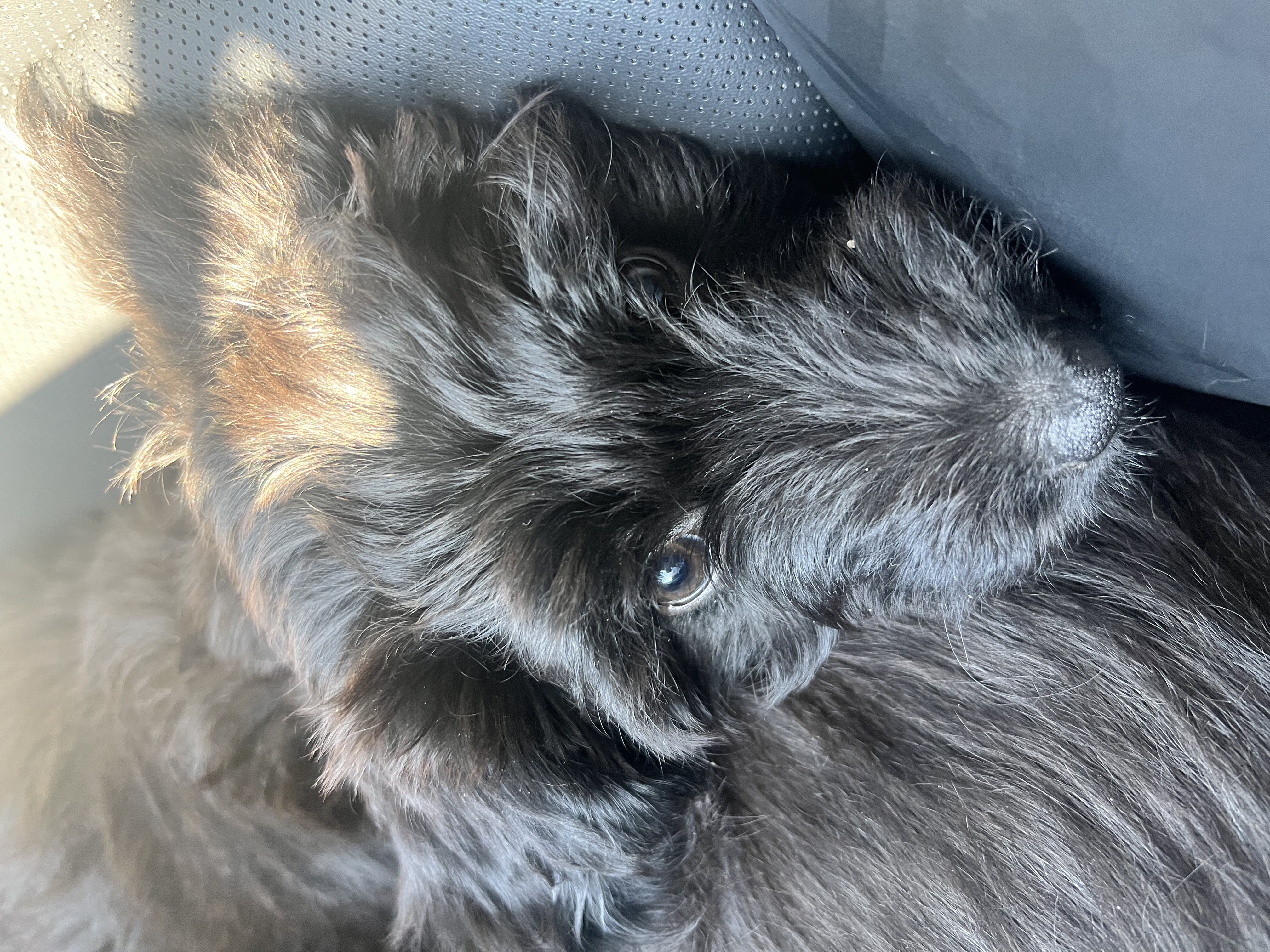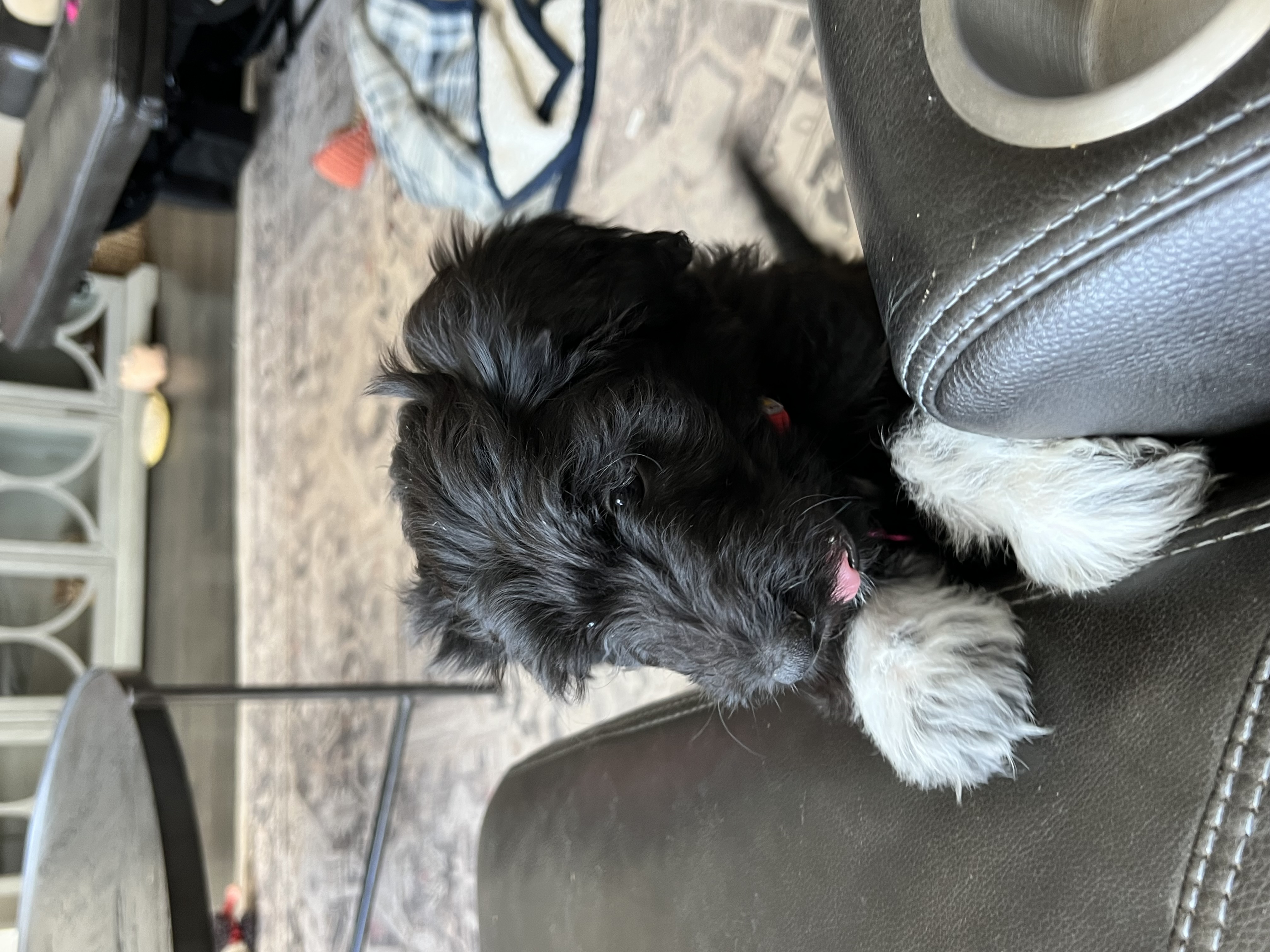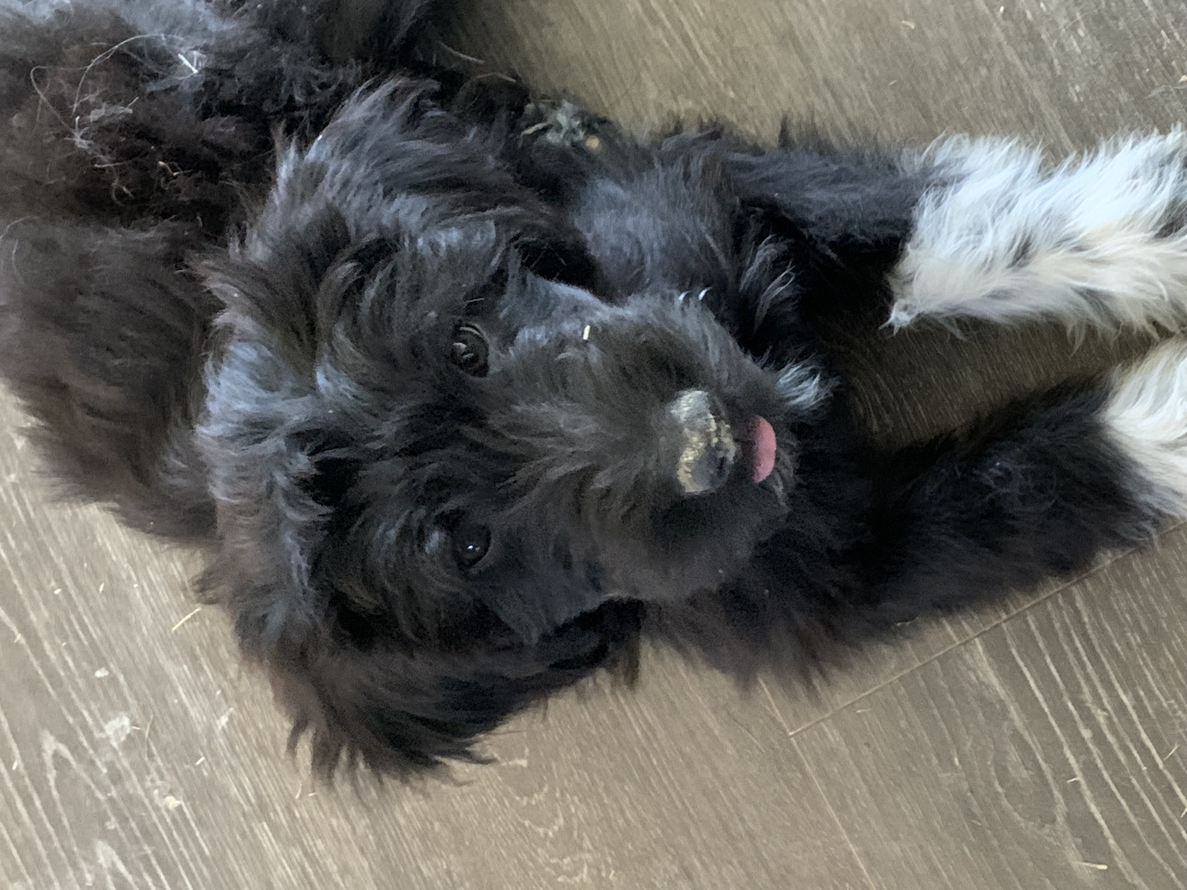 Hi! My name is Filet, you can also call me Boots because I have pretty white front paws! I’m an 11 week old female poodle mix and I weigh 10 pounds. I like long play sessions in the backyard, snuggles with my sibling, and chewing on toys. I don’t shed at all and I’m super smart! I’ve already mastered the dog door and take myself out when I need to potty. I’m super spunky and very playful!
