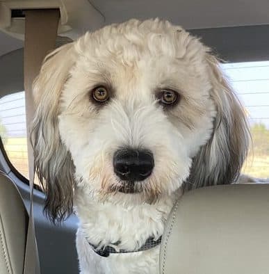 I’m Flynn. Can you tell by my smoldering eyes? I’m a 1-year-old male adoradoodle and about 42lbs. I have a lot of energy and consider myself super head strong and stubborn. Because of this, I need a VERY patient family to continue my training and teach me my manners.