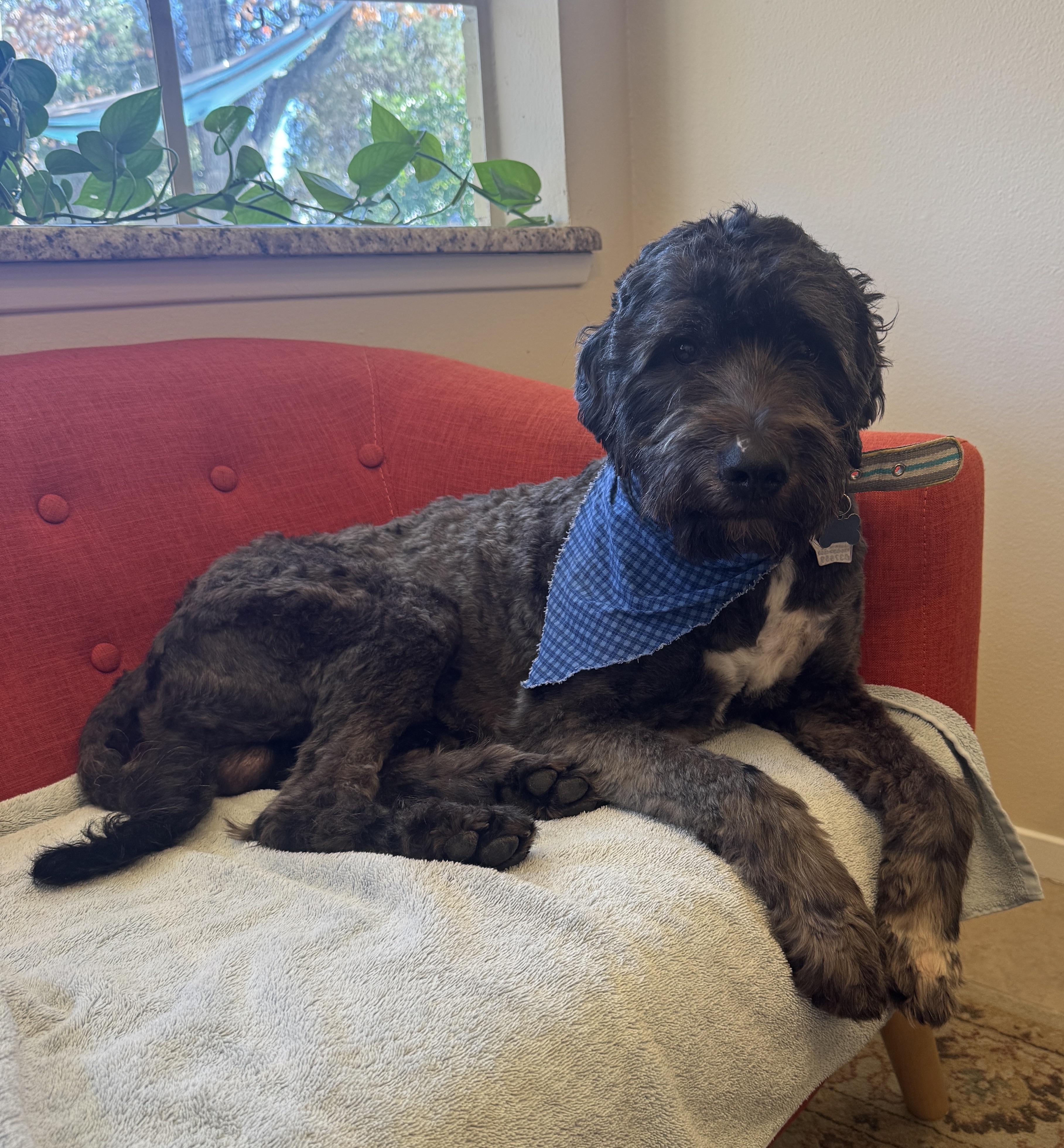I’m a total cuddle bug who loves to snuggle up and relax, but don’t let that fool you—I also get super excited for walks and outdoor adventures! I’m potty trained, crate trained, and I even know how to sit on command. I may have a few quirky traits, but I’m never aggressive! I tend to be a bit vocal when meeting new people because I’ve got lots to say (I’m just working on my social skills), but don’t worry, my tail is always wagging, even if my bark is loud. With time, I’ll get more comfortable and show you my true, laid-back side.