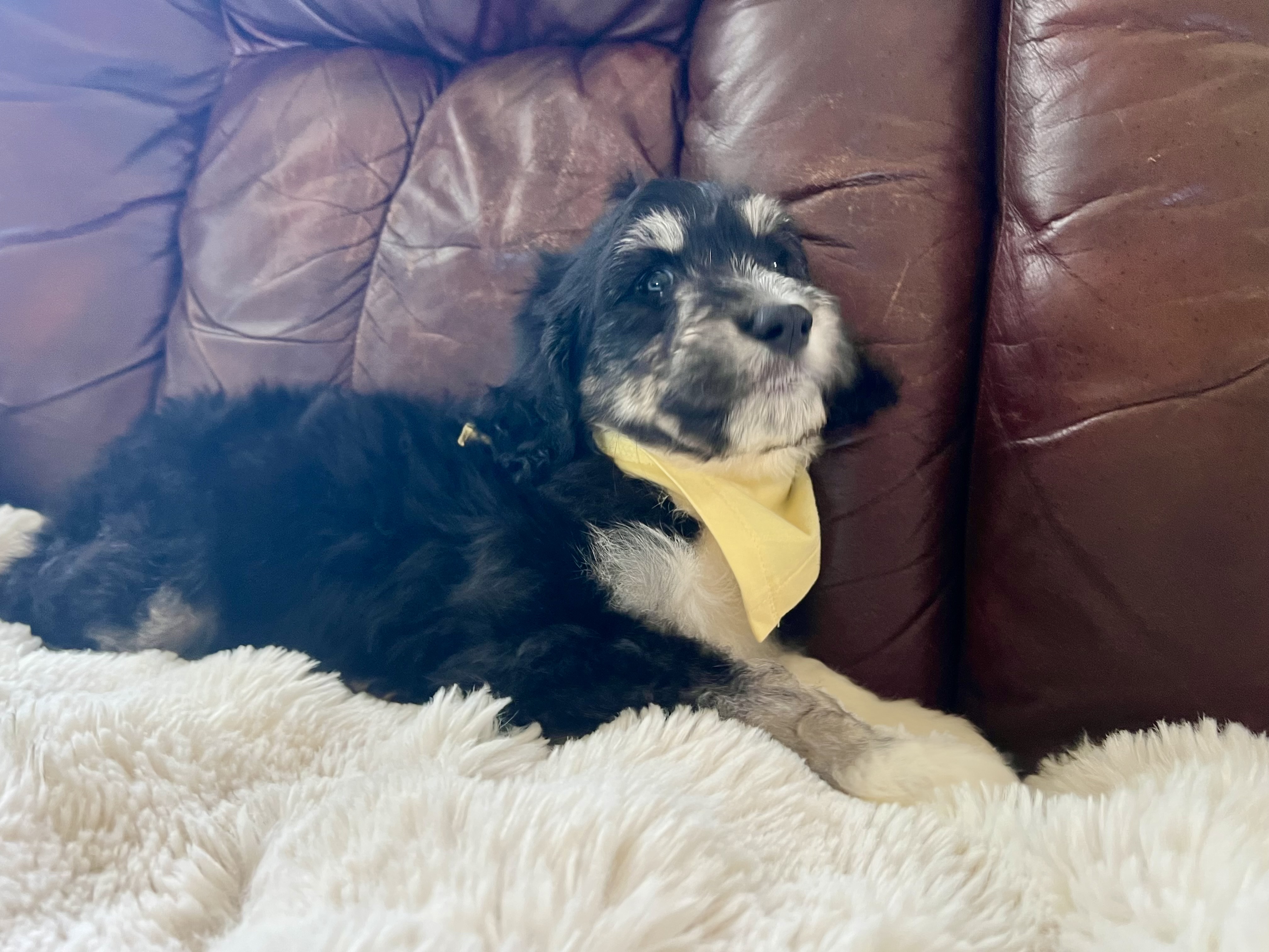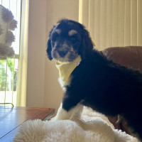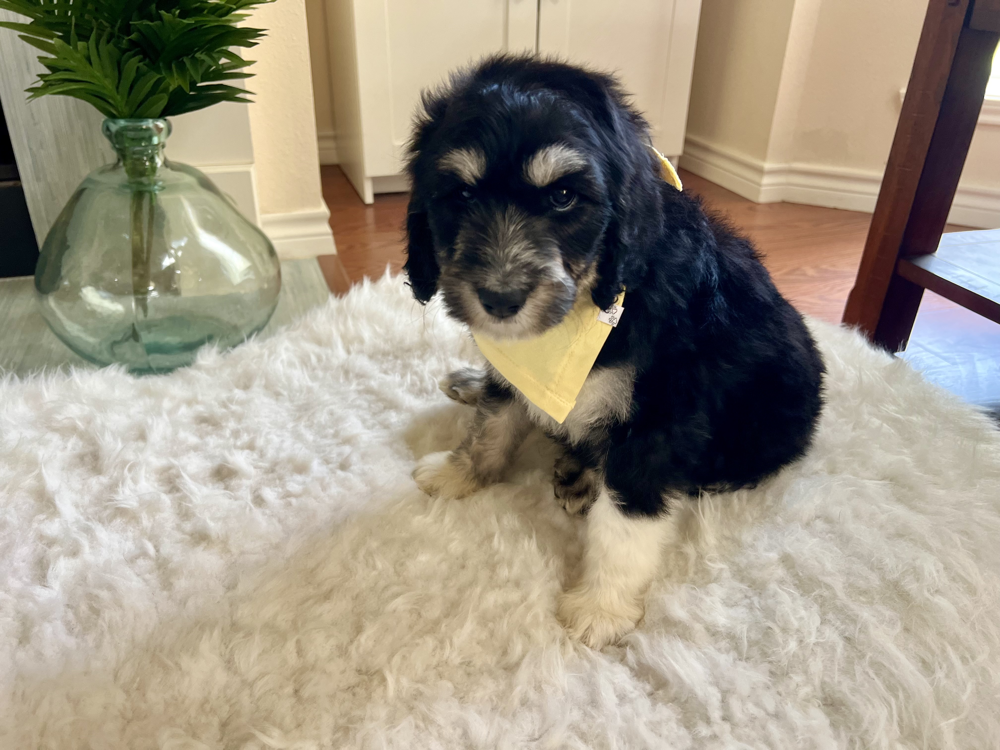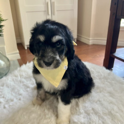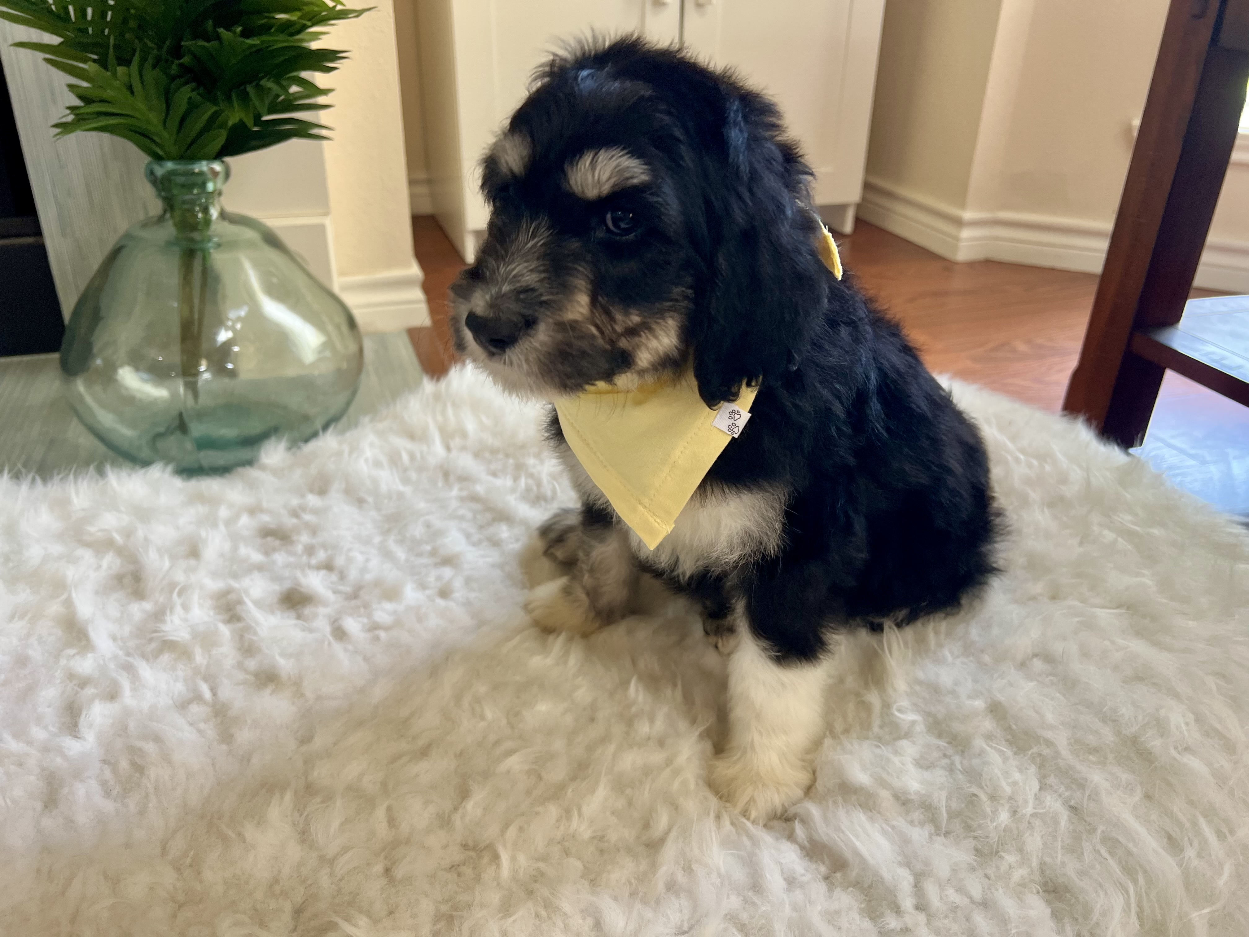 Howdy! I’m Freddie—named after the legendary golfer Fred Couples—and I’m the biggest boy in my litter, tipping the scales at a whopping 9 lbs! At just 8 weeks old, I’m a fluffy poodle mix (maybe even a sheepadoodle?) with a big personality and an even bigger heart.