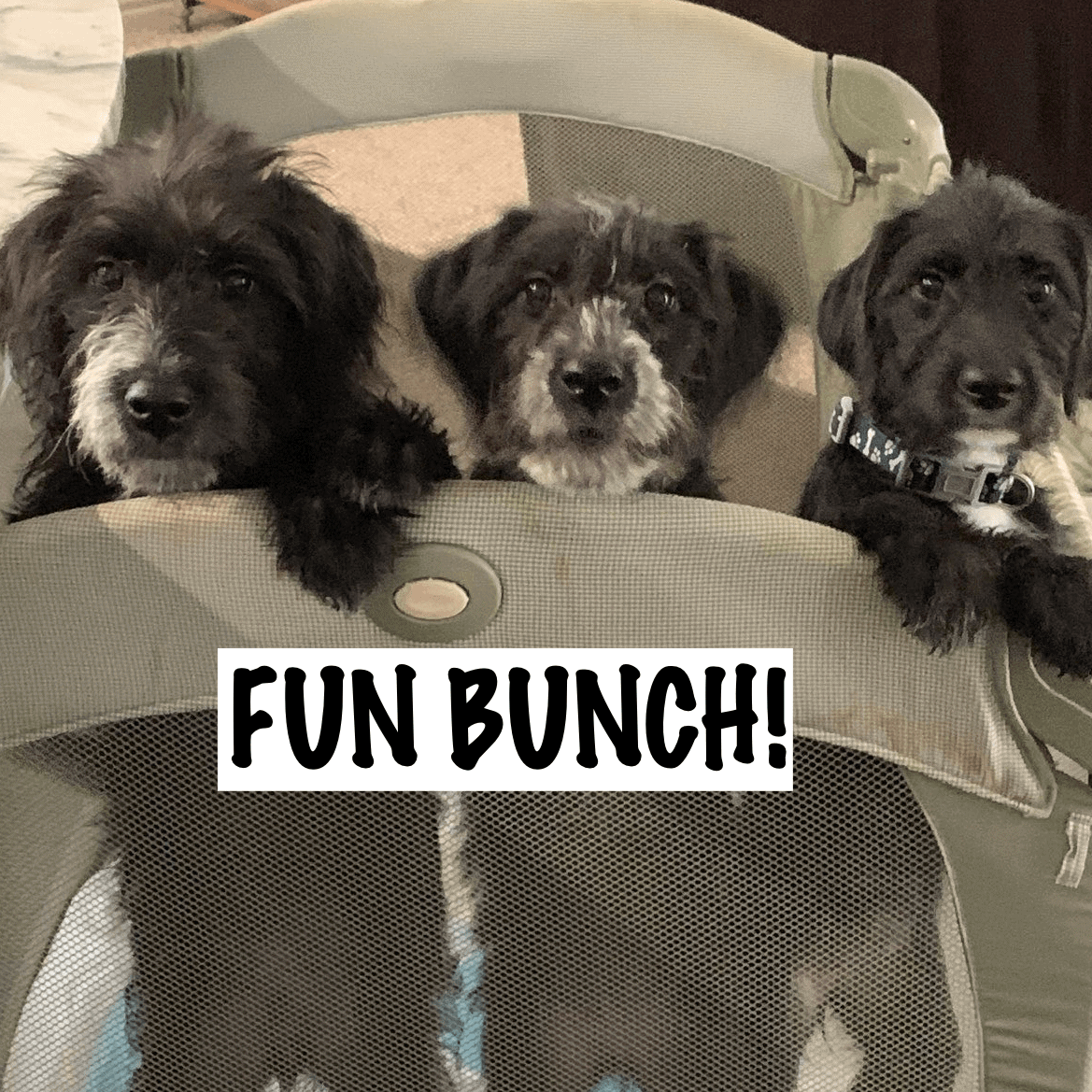 Meet the FUN BUNCH puppies! These 3 puppies are 14-week old, 16-pound Bluedoodles. Read what their foster has to say about them...