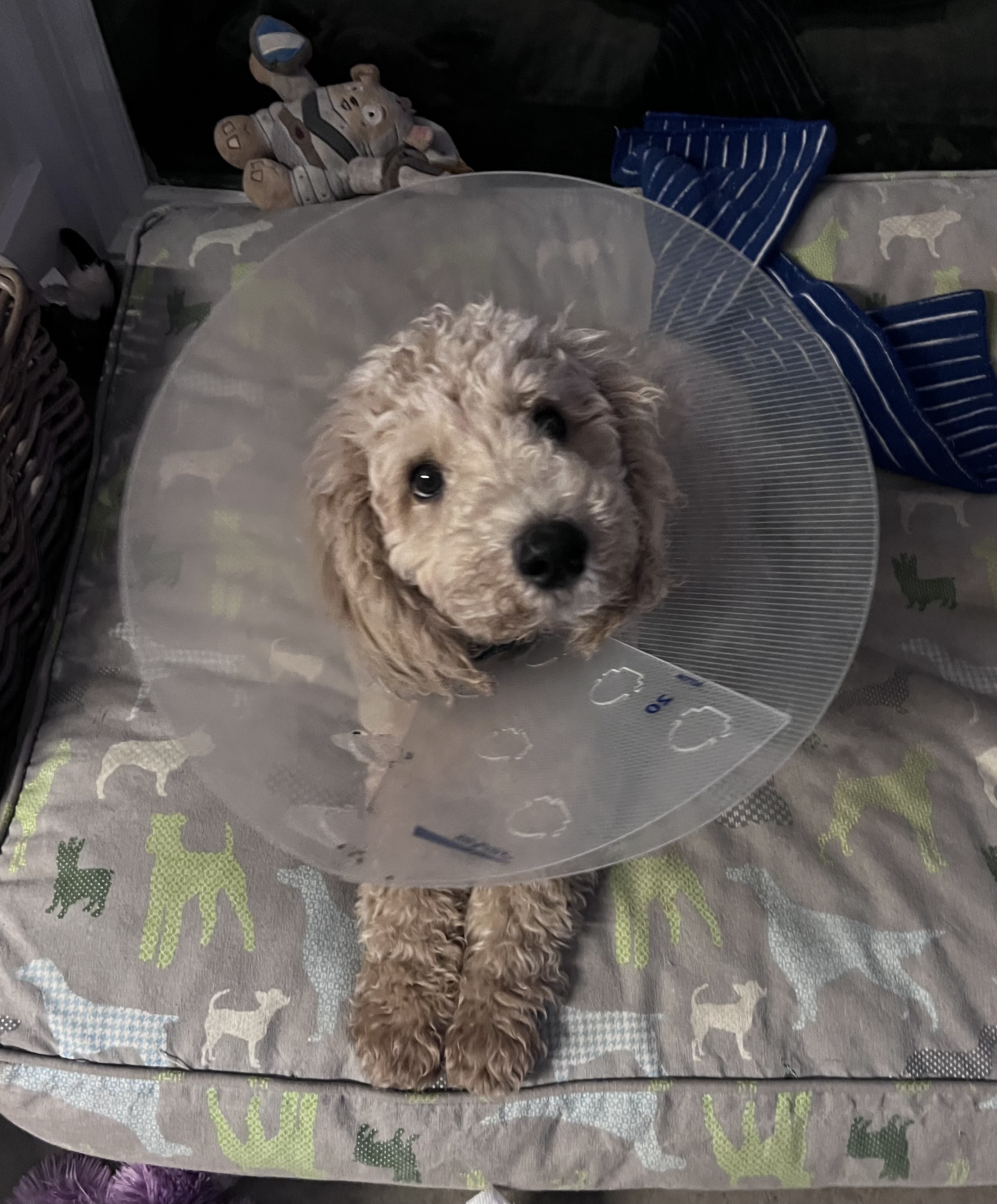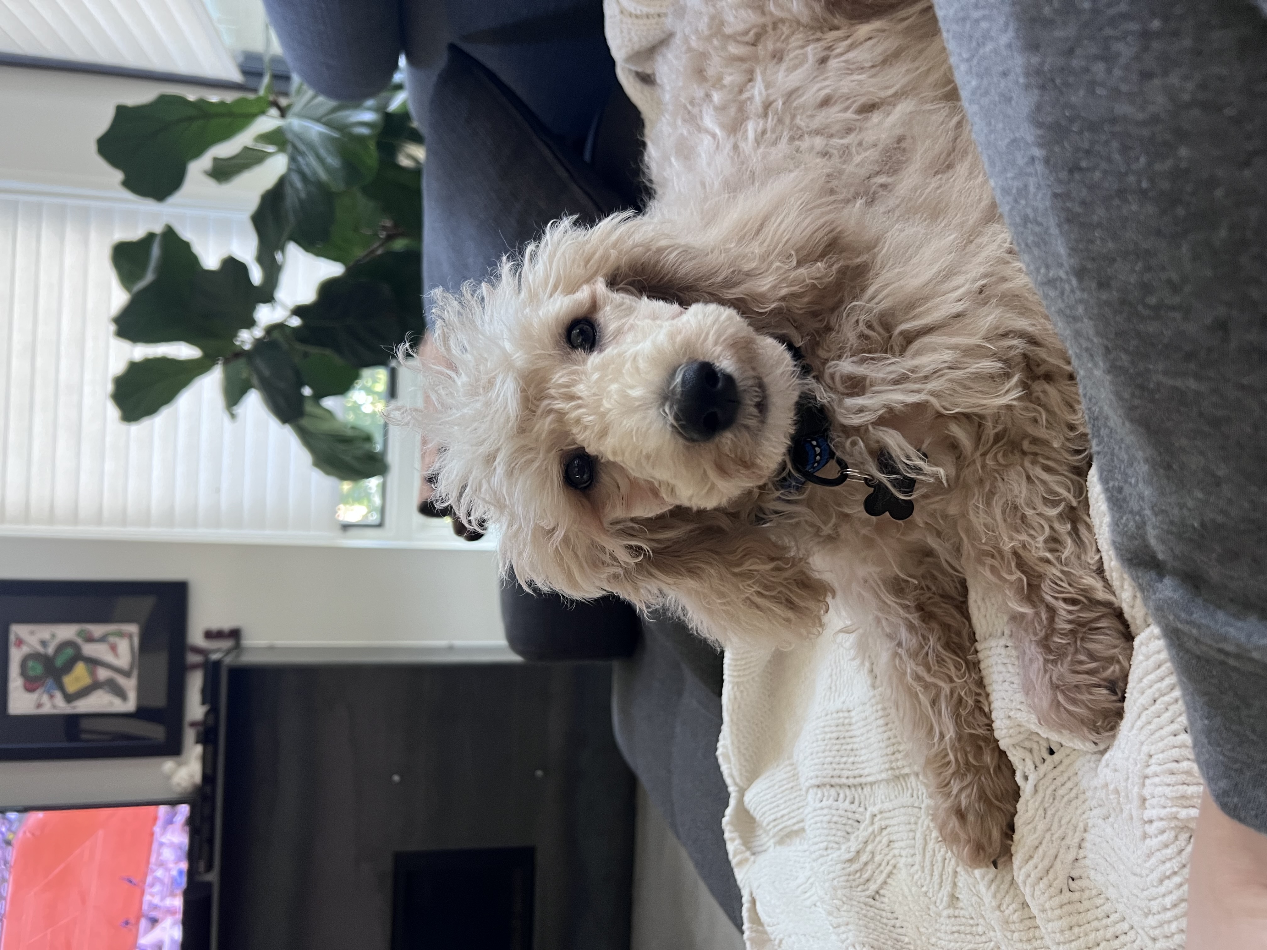 Hello, George Harrison here! I’m a 20 week old male Moyen Poodle. What’s a Moyen you ask? I’m basically a hybrid of a miniature and standard poodle AKA the perfect size if I don’t say so myself! Since I am full poodle; I am smarter than your average pup! 😉 I currently weigh around 16lbs.
