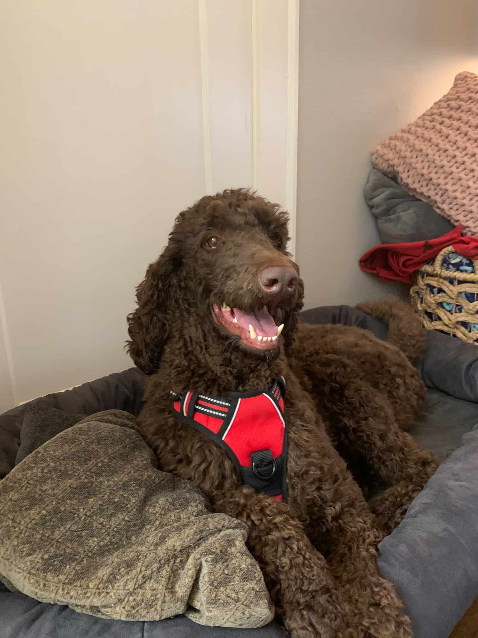 Hi my name is George! I’m an 18-month-old male Standard Poodle weighing 75lbs. I’m a big fluff ball who doesn't shed and loves to play. I’m a little quirky and clumsy when I run, but it's probably because I'm so tall, dark, and handsome!