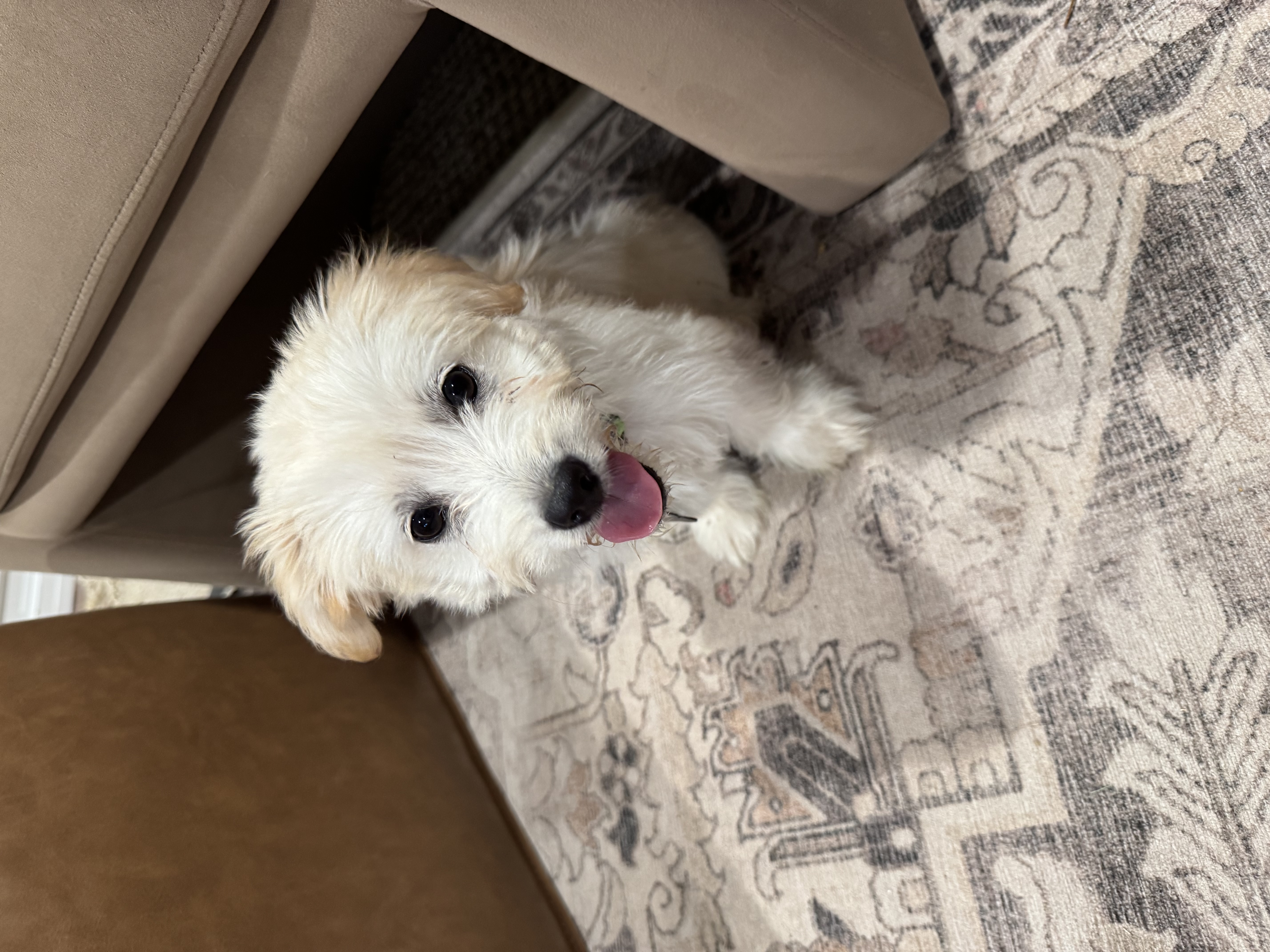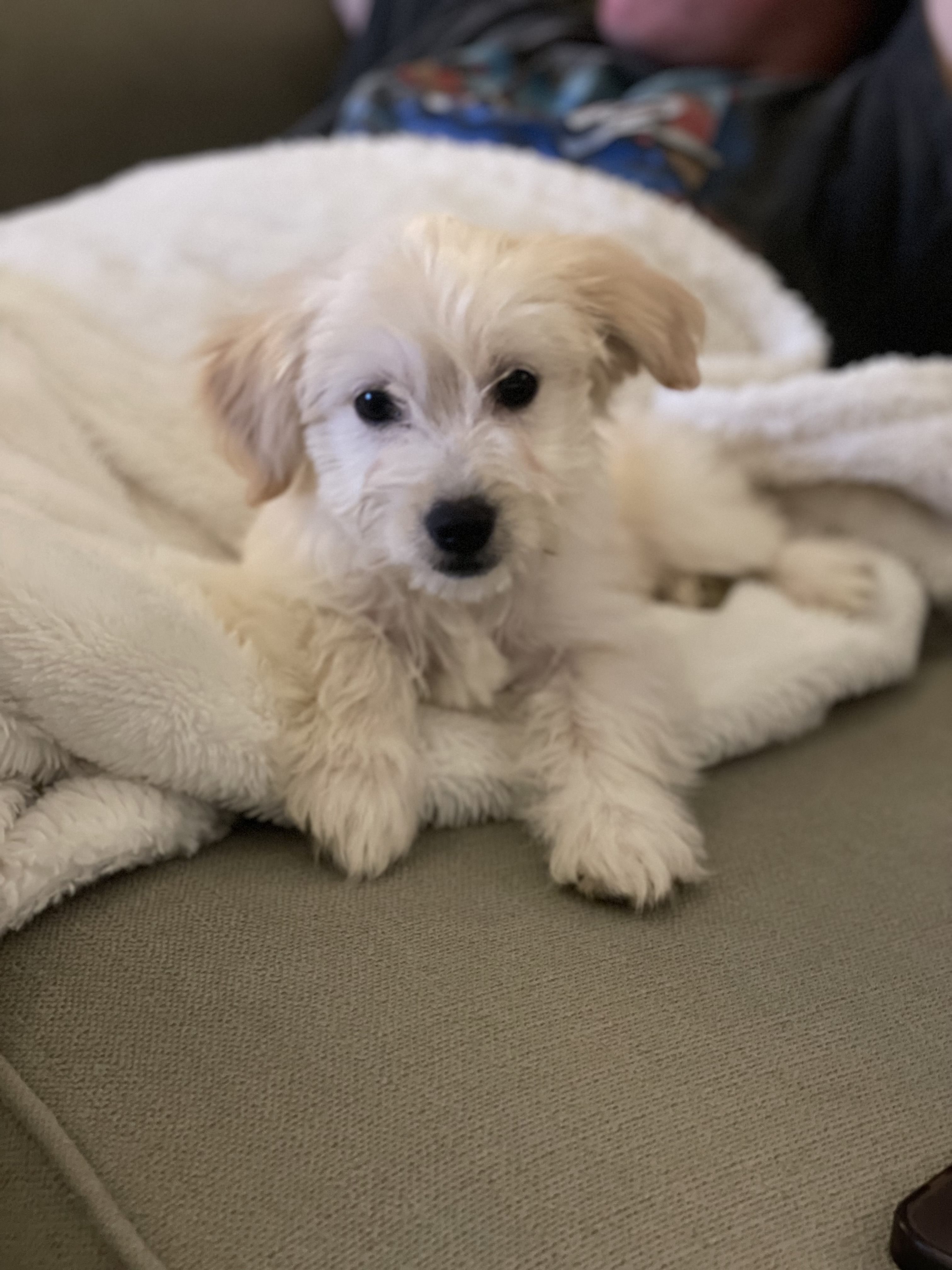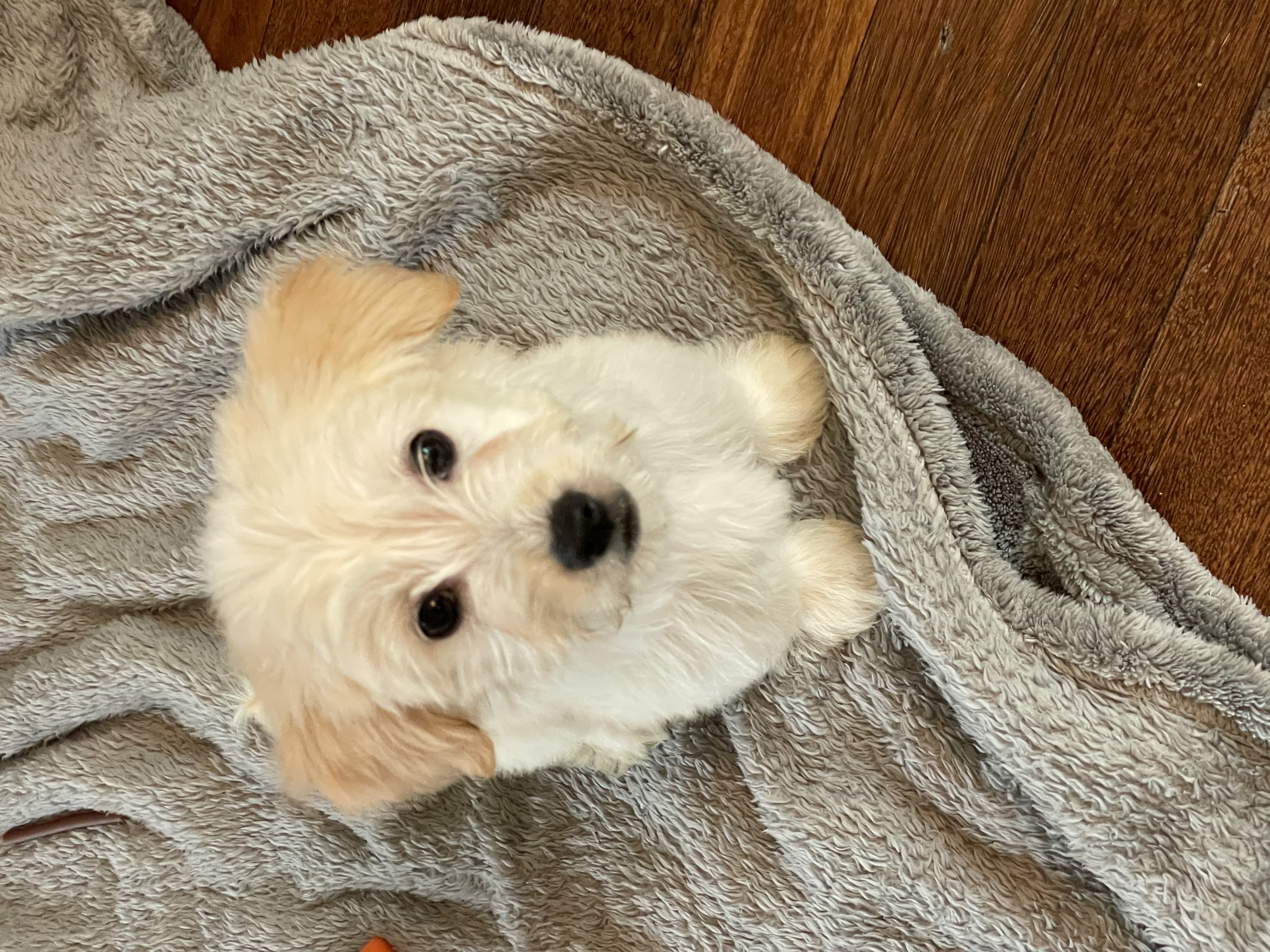 I’m a 13-week-old, 4 lb. female poodle mix.
