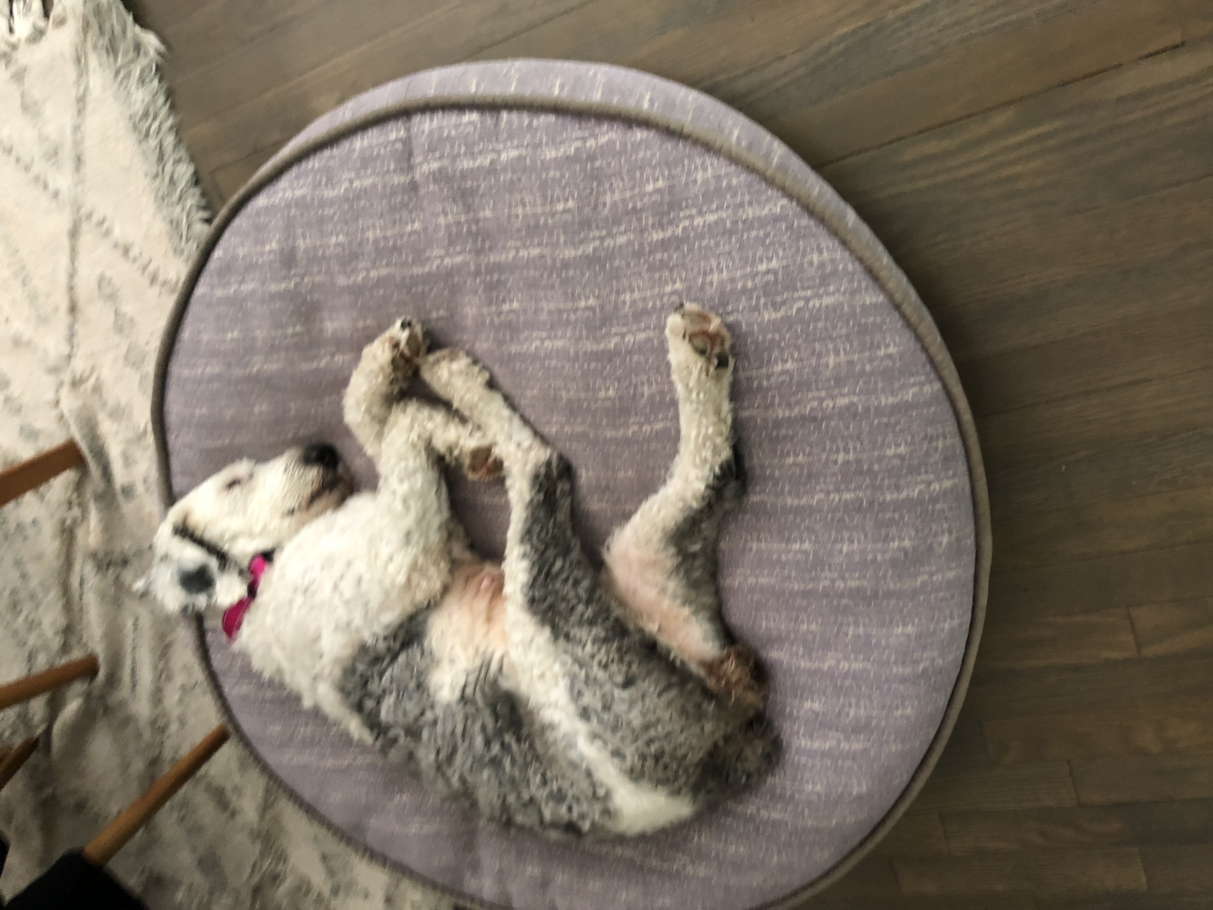 I sleep on a dog bed at night and I eat twice a day. Once in the morning and once in the evening. I love food and am always wanting to eat! I HAVE to go for my daily walks and am happy to do so any time of the day. It’s my favorite thing to do!
