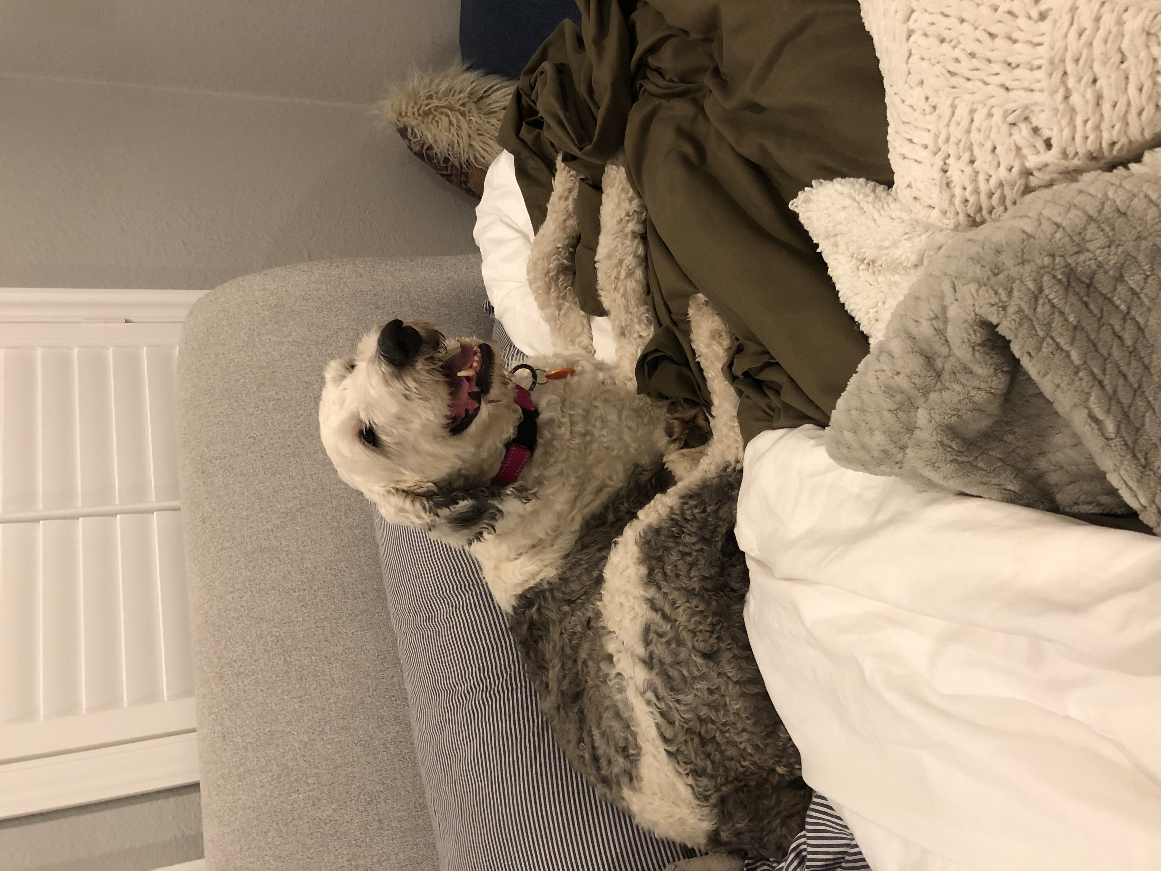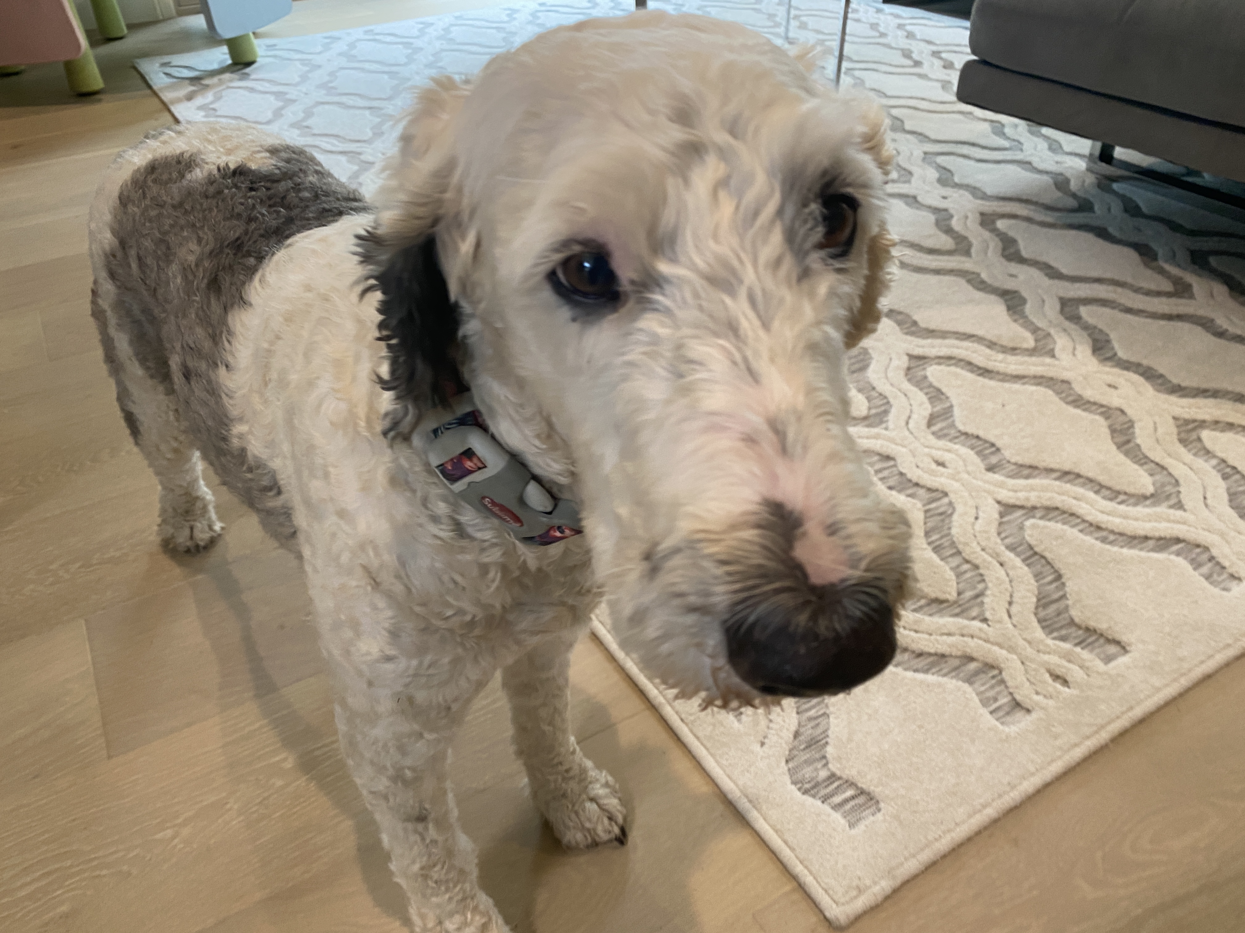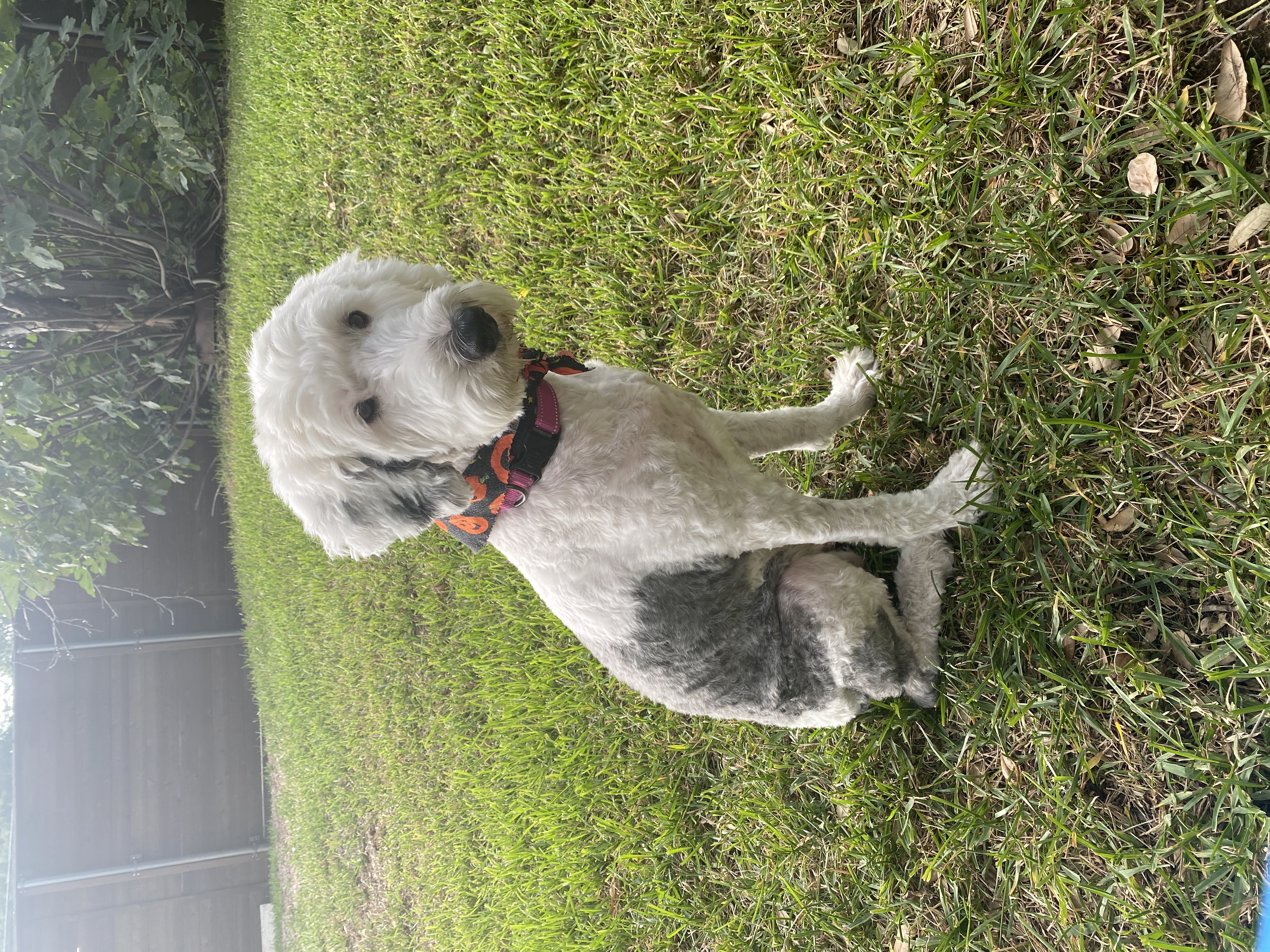 Hi my name is Gnocchi, I am 5 years old, female, Sheepadoodle and I am close to 55lbs.