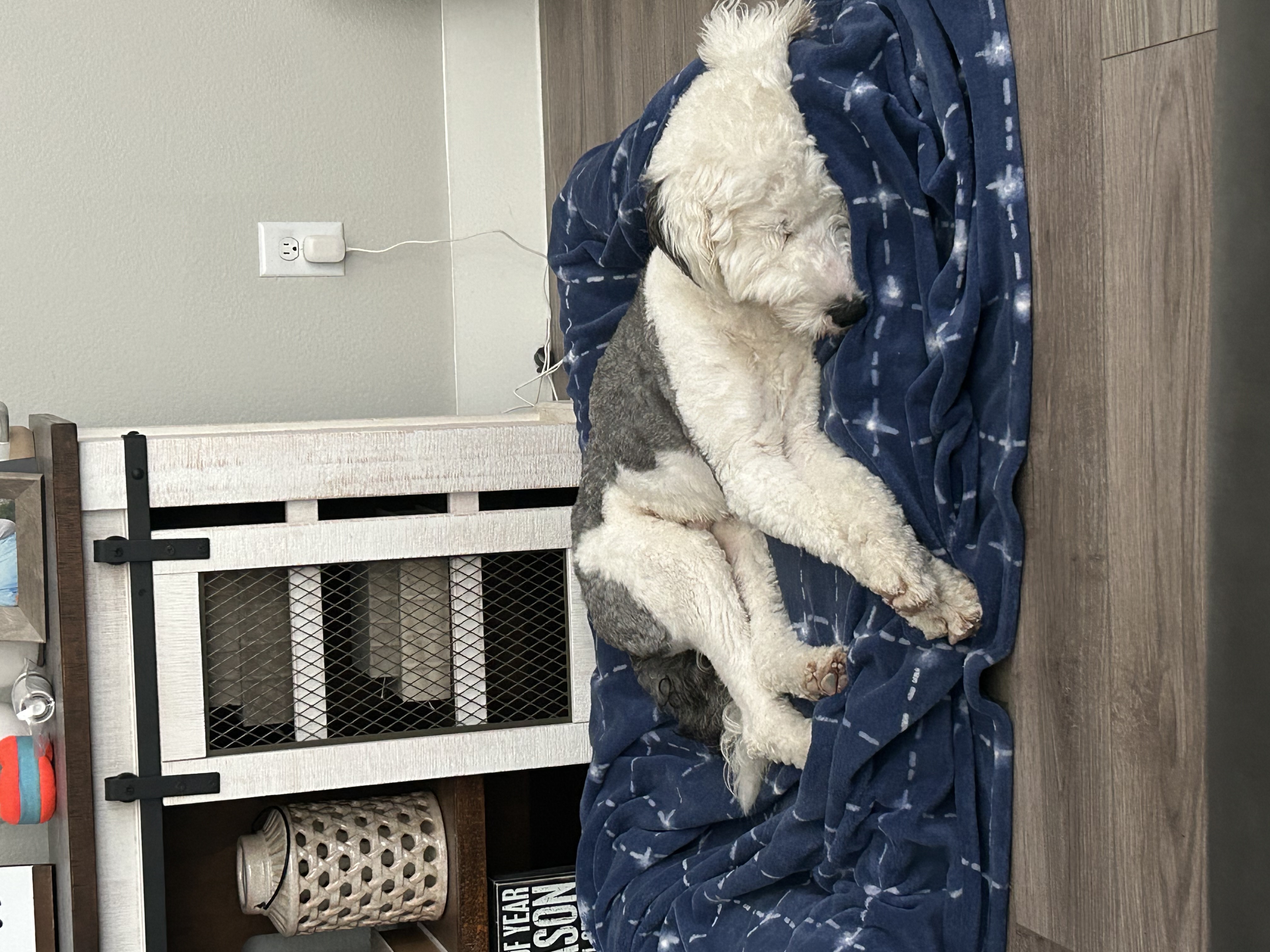 I start my day around 6:30-7 AM with a quick potty break and backyard exploration, then breakfast. After a second trip outside, I curl up by my foster mom in her office for a good snooze. I love our lunchtime walk, then relax until dinner around 5. Evenings are spent either outside with my foster family or snuggled on the couch. At night, I usually sleep under the bed—I’m still a little scared of the dark but getting braver every day.