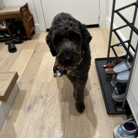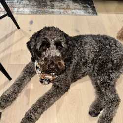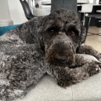 Hi there, I’m Graham—though some folks call me Benny. Honestly, I’m still figuring out this whole “name” thing, so if you’ve got a new one in mind, I’m all ears. I’m about 4 years old, a 45-pound doodle mix with a heart as easygoing as my personality. Most days, I’m happiest curled up right beside you, soaking up the quiet company of someone I love. Snuggles? Always. Couch time? Count me in. I’m the very definition of chill.