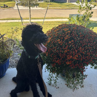 Hi there, I’m Hachie, a one-year-old, 40-pound poodle mix, and I like to think of myself as a professional love bug. I’m convinced I’m a lap dog and will happily prove it any chance I get.