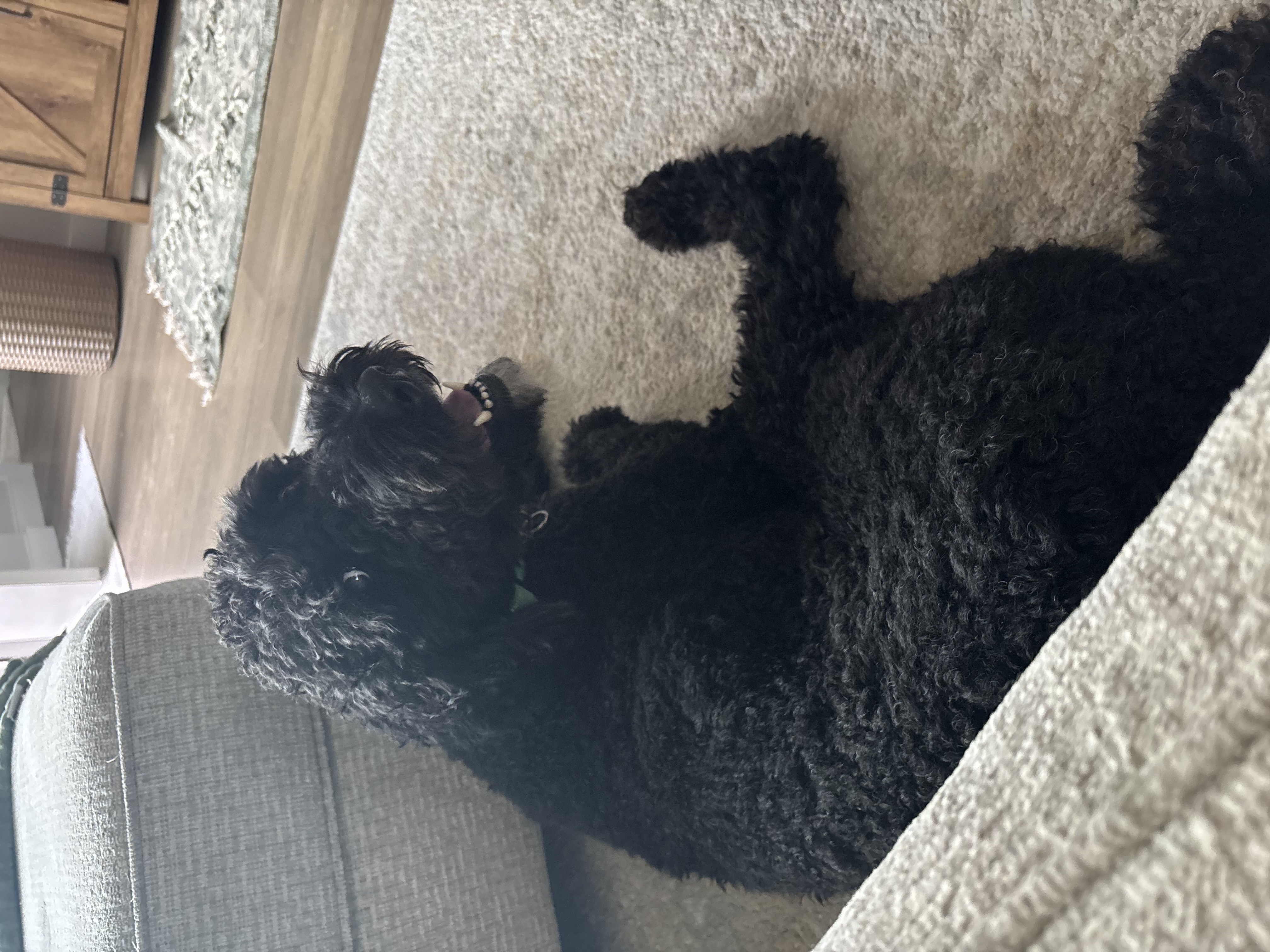 Hi there. I’m Hachie, a one year old, 40 pound poodle mix and a full time love bug. I am absolutely convinced I am a lap dog and will happily curl up as close to you as possible whenever the opportunity arises. If you are sitting down, there is a very good chance I am already on my way over.