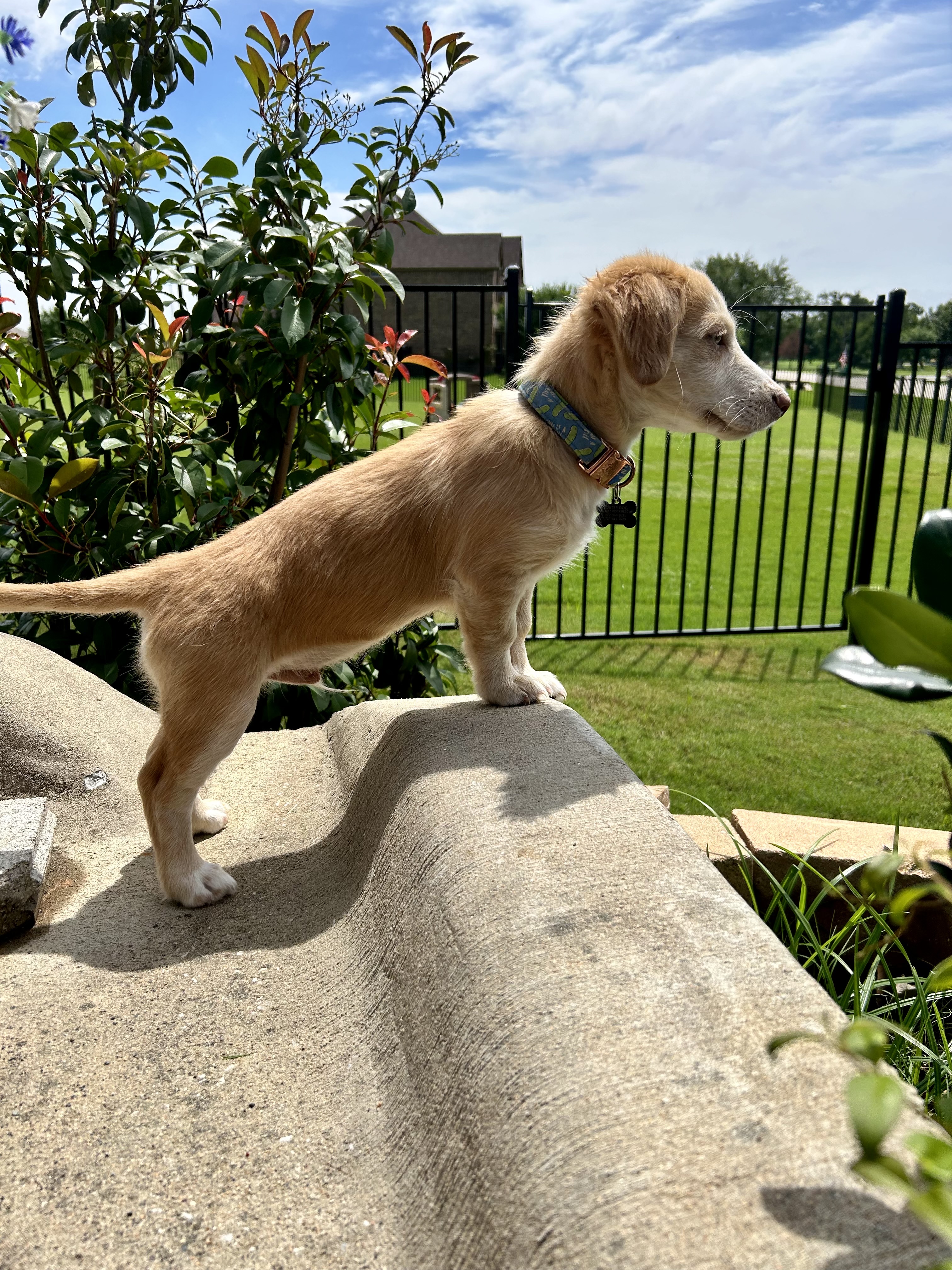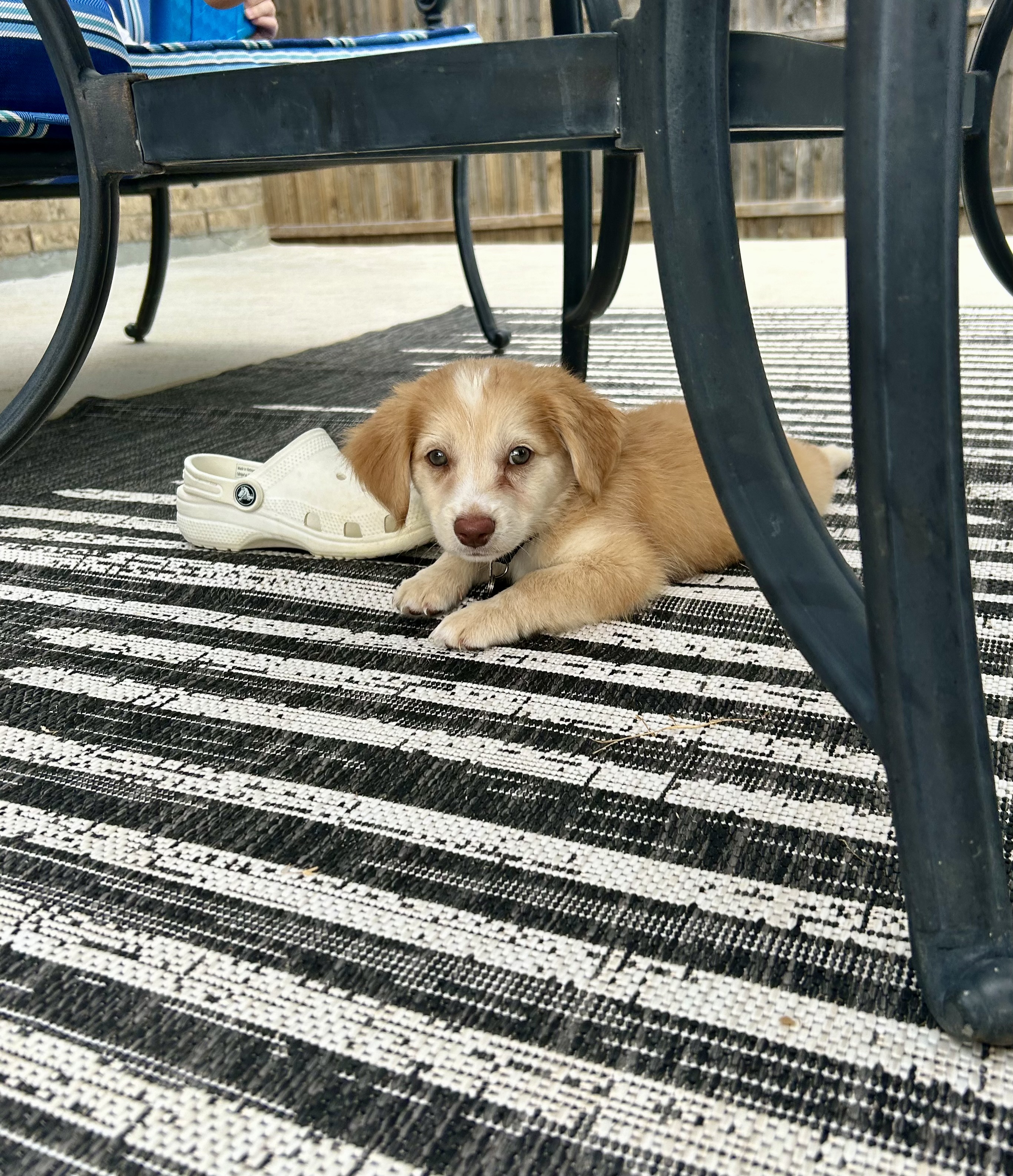 I’ve had to keep up with the big dogs here lately, so I’ve learned how to stand up with my chest out. One of my foster siblings is so fun to play with but he’s 80lbs. I have to let him know who’s boss, so I don’t get trampled on. I actually have three foster brothers right now, and I love them to pieces. We play everyday! I follow their lead with everything because it helps me learn how things operate. If I’m not playing with them then I’m right at my foster mom’s feet. I love cuddles and kisses!!