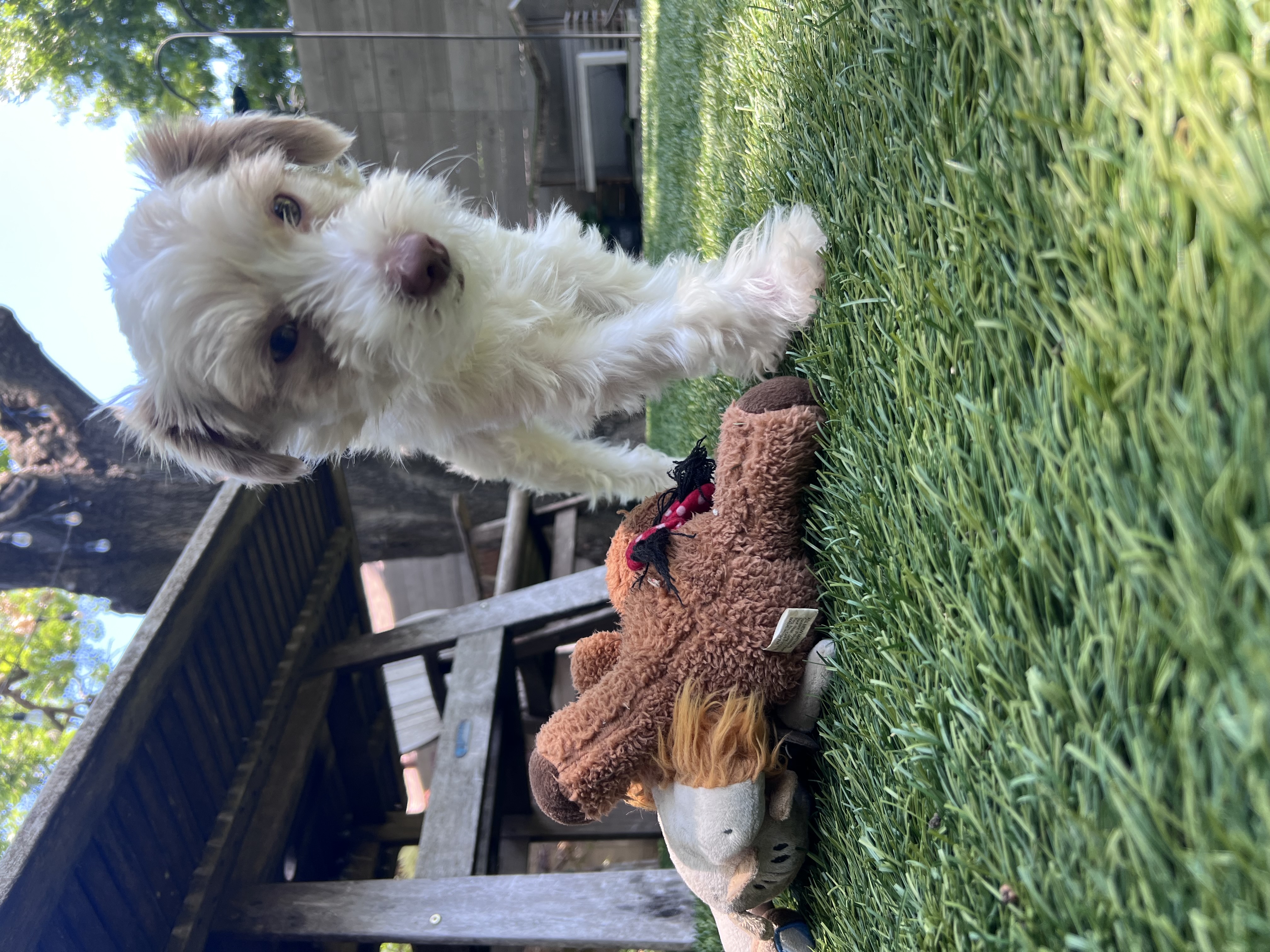 We wake up around 7am on weekdays and 9am on weekends! I sleep soundly in my crate all night not making a peep.. just be sure my crate is in or near where you sleep, I like to have my people and fur siblings close! Upon wake up it’s potty and playtime! I get the zoomies and love to play in the yard. I have recently learned how to fetch and enjoy it so much! My days consist of playtime and naptime. I do well on my leash and have so much fun going on walks and exploring the great outdoors. Bedtime is around 10pm.. sometimes I need a little nudge into my crate, but once there I curl up and go to sleep quickly. 💤