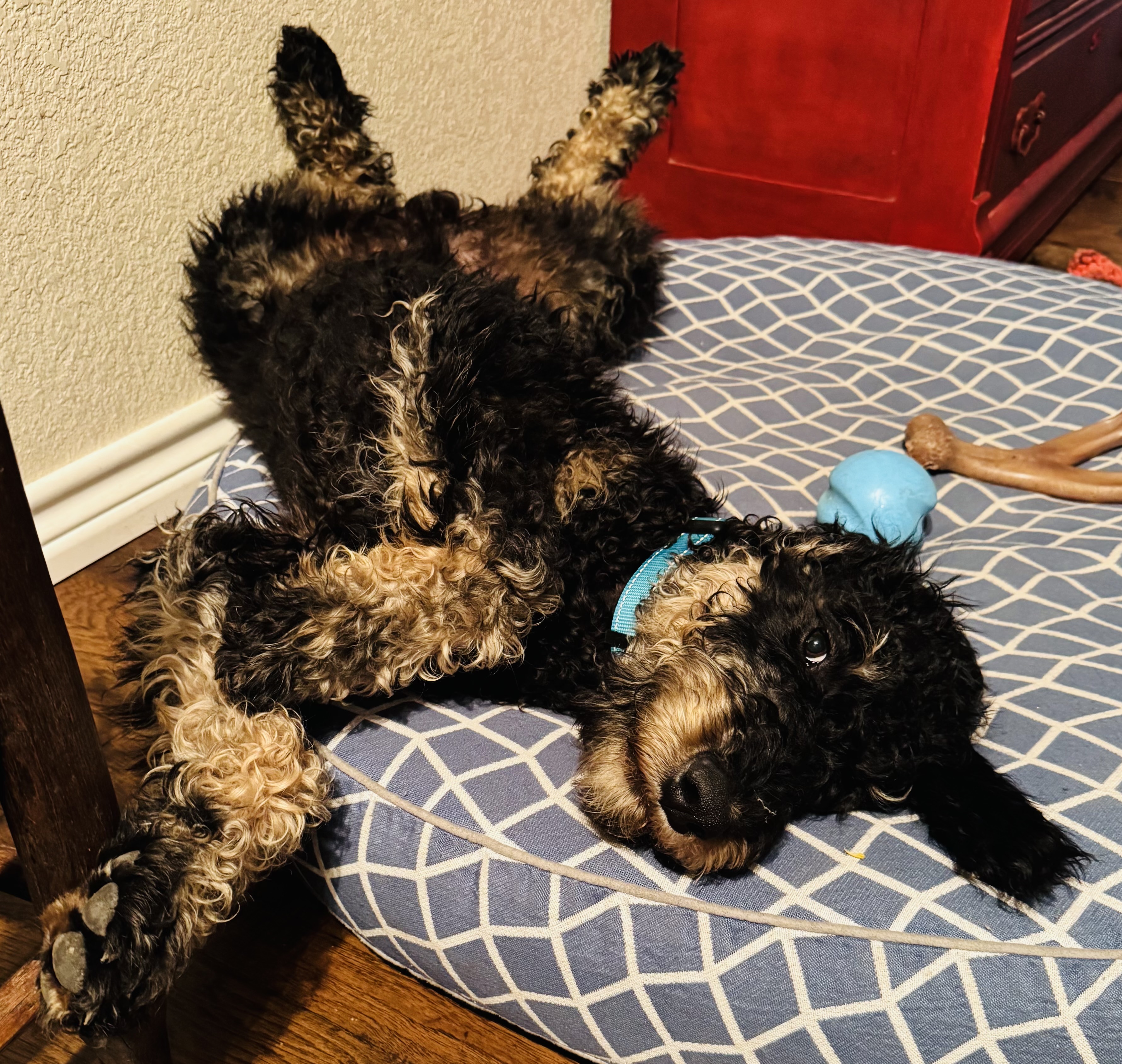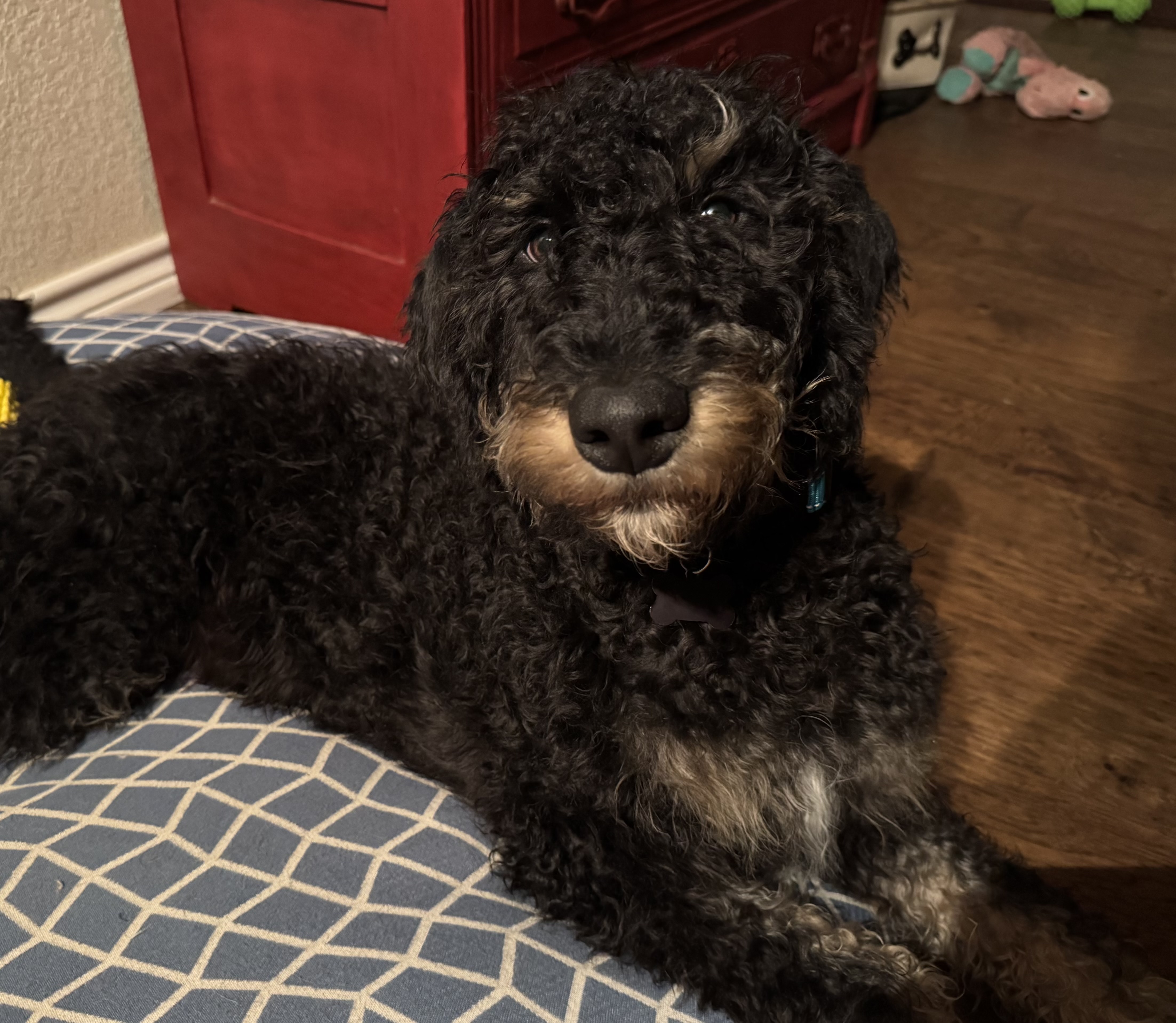 Like any puppy, I still have some habits to work on. If something looks interesting, it’s probably going in my mouth—socks, shoes, ball caps, remote controls, your hands! I’m usually gentle, but my people tell me “no” a lot (I’m learning, I promise!). I’m also just tall enough to check out all the delicious smells on the kitchen counter, but I’m working on resisting temptation. Potty training? Easy! As long as I’m taken outside on a schedule, I know exactly what to do. I might be a little stubborn at times, but with patience and training, I’ll have my big-boy manners down in no time.