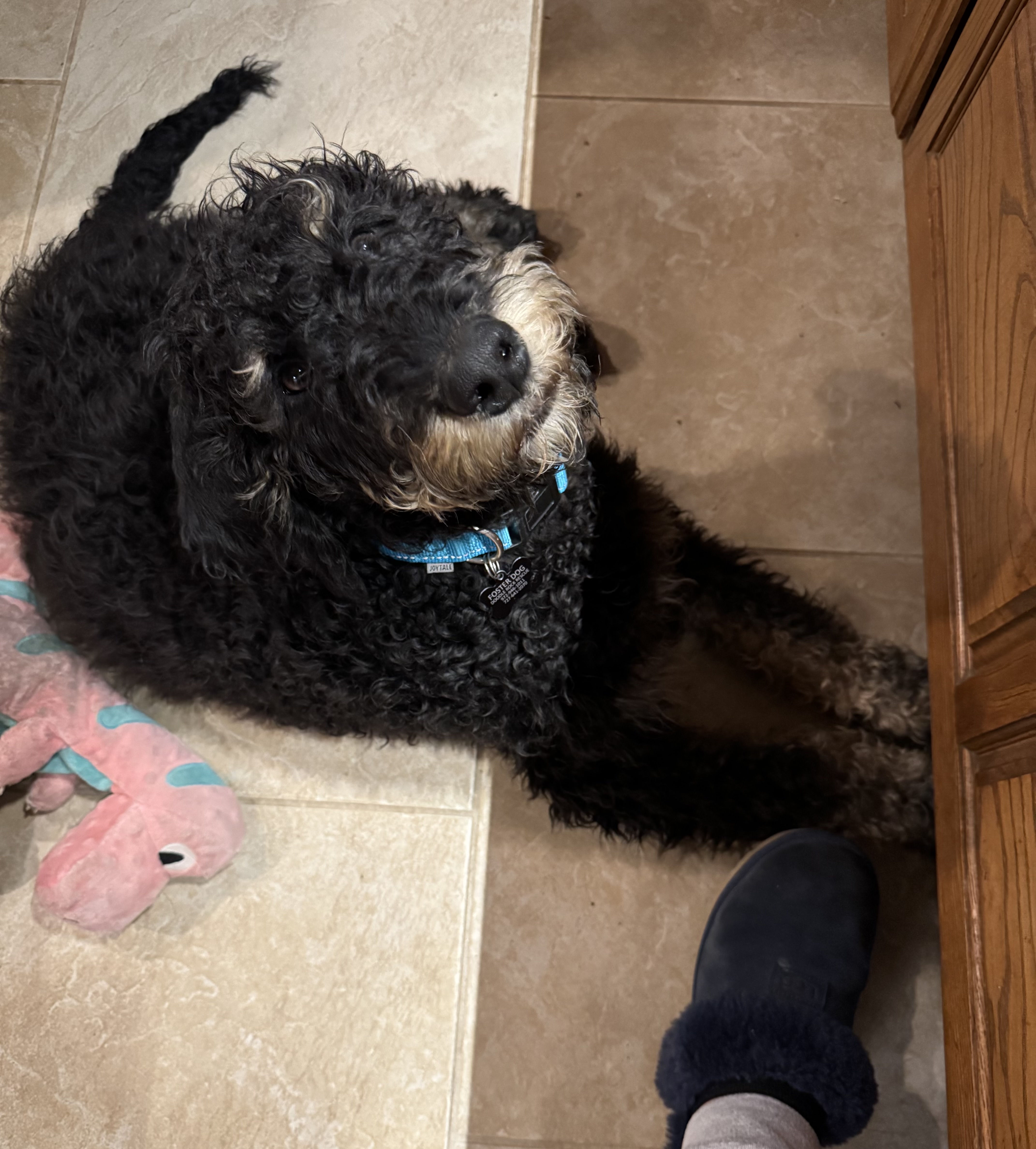 I’m a happy-go-lucky guy, and there’s not much I don’t like. My absolute favorite things? Being close to my people, playing with my dog friends, and watching squirrels (I swear they taunt me!). I’m also an expert snuggler—I secretly wish I were a lap dog and will curl up next to you or my furry friends any chance I get. I have bursts of goofy puppy energy, but once I zoom it all out, I’m more than happy to settle down for some quiet time. My stuffed toys are my pride and joy, and I have a blast playing fetch or tossing them in the air like a pro. My foster family tells me I’m a sweet, gentle-natured boy, and I think they might be right!