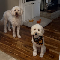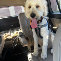 I walk politely on a leash, love a good car ride, and I always remember to potty outside. Snuggling is basically my superpower, so please feel free to hug me, pat me, kiss my head—I’m here for all of it. I love every human I meet, and I’m completely smitten with my foster doodle brother. We’re inseparable playmates, and I follow him around like he’s the coolest dog in the whole world.