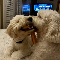 My perfect day is simple: wake up when you do, head outside, eat breakfast, go outside again, and then spend the whole day hanging out with you. Dinner, another quick trip outside, and then bedtime when you’re ready. I still get excited and jump sometimes, but I’m learning fast. As long as I have a good chew bone, I’m content and well-behaved. I’m sweet, goofy, eager to learn, and ready to be someone’s loyal, happy shadow.