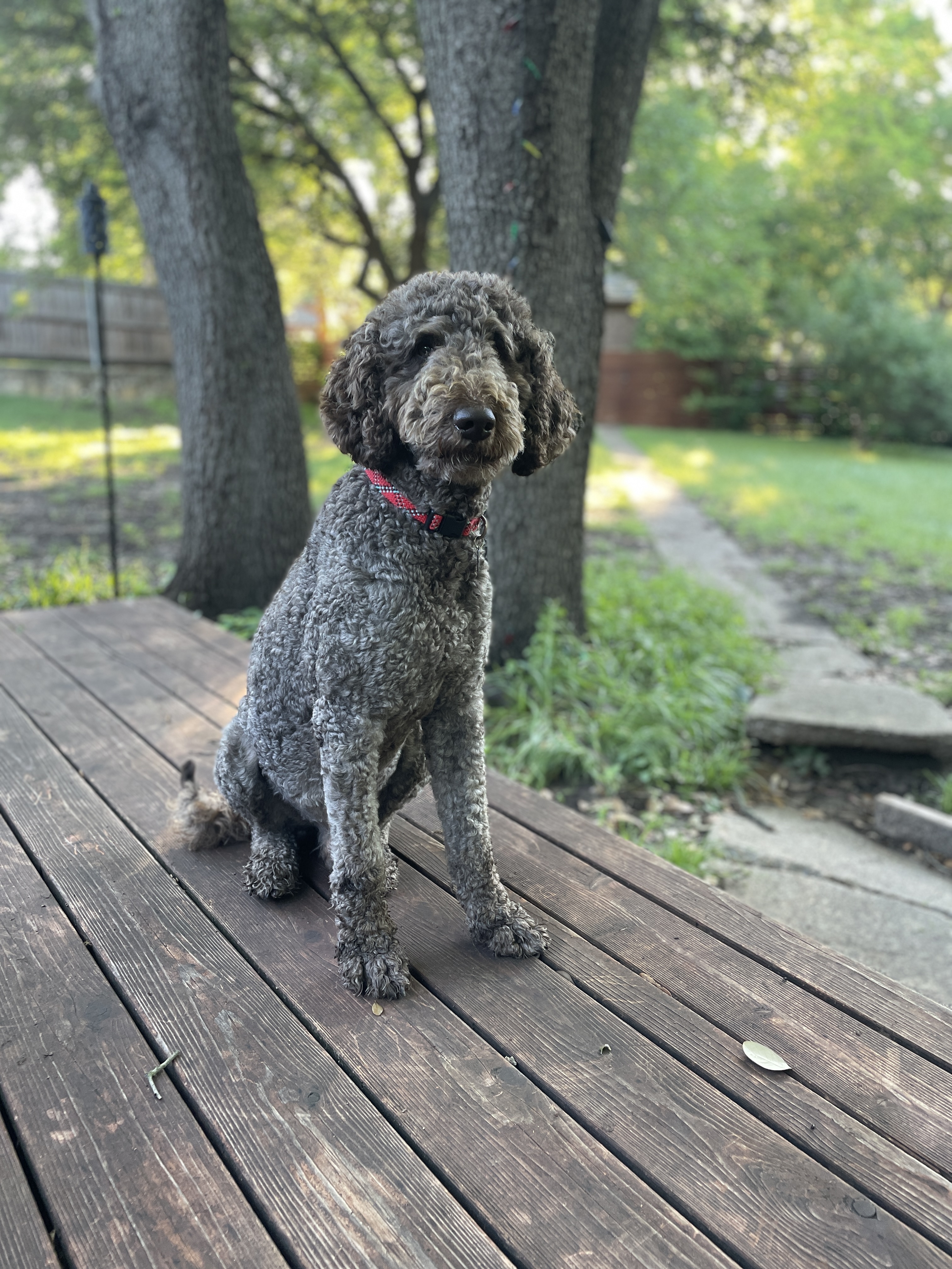 I'm Hawk, a 4-year-old male Goldendoodle weighing about 54 lbs.