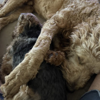 I’m what you might call a lover, not a fighter. I loooove cuddles, snuggles, and being close to my humans. I haven’t had a single accident in the house (house-trained pro over here!) and I adore toys, mealtimes, and romping around with the other doodles at my foster home. Fetch is one of my favorite games, and honestly? I don’t think there’s anything I don’t like. I’m just a happy, tail-wagging kinda guy.