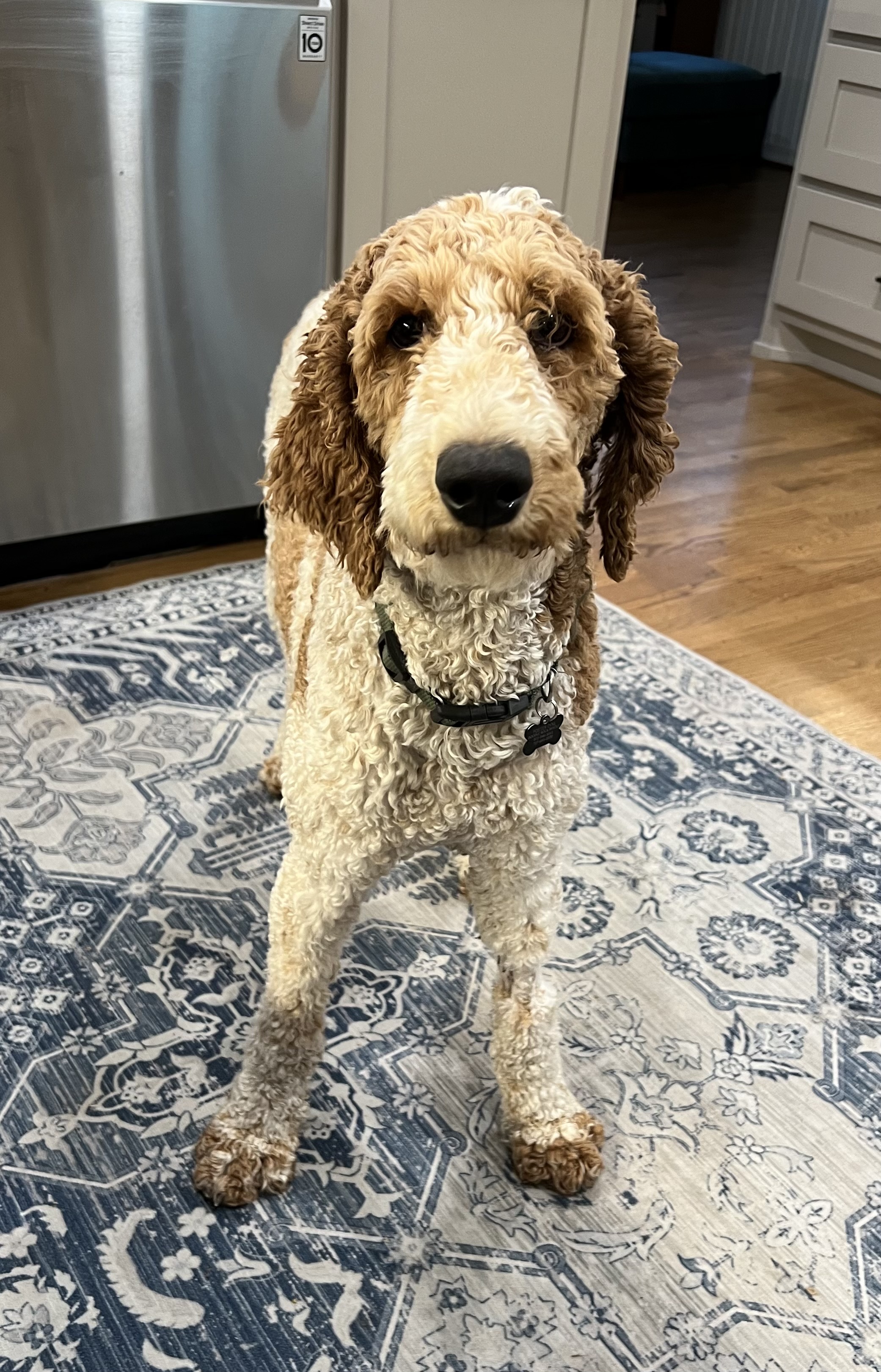 Hello! My name is Hermes and when I am out with my foster mom, people stop us to say I’m beautiful. I weigh 45 lbs and I’m 1 year old Female Standard Poodle.