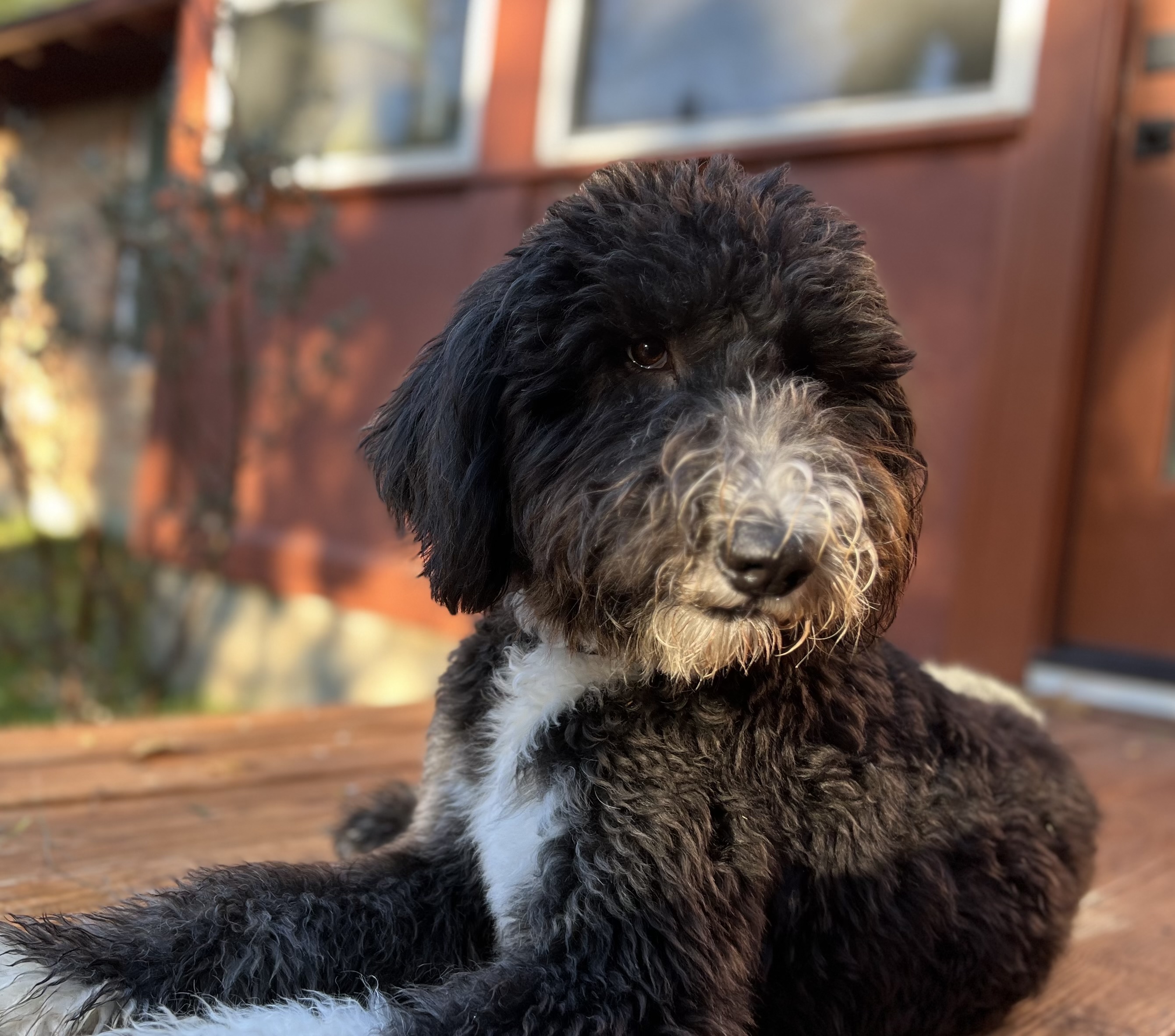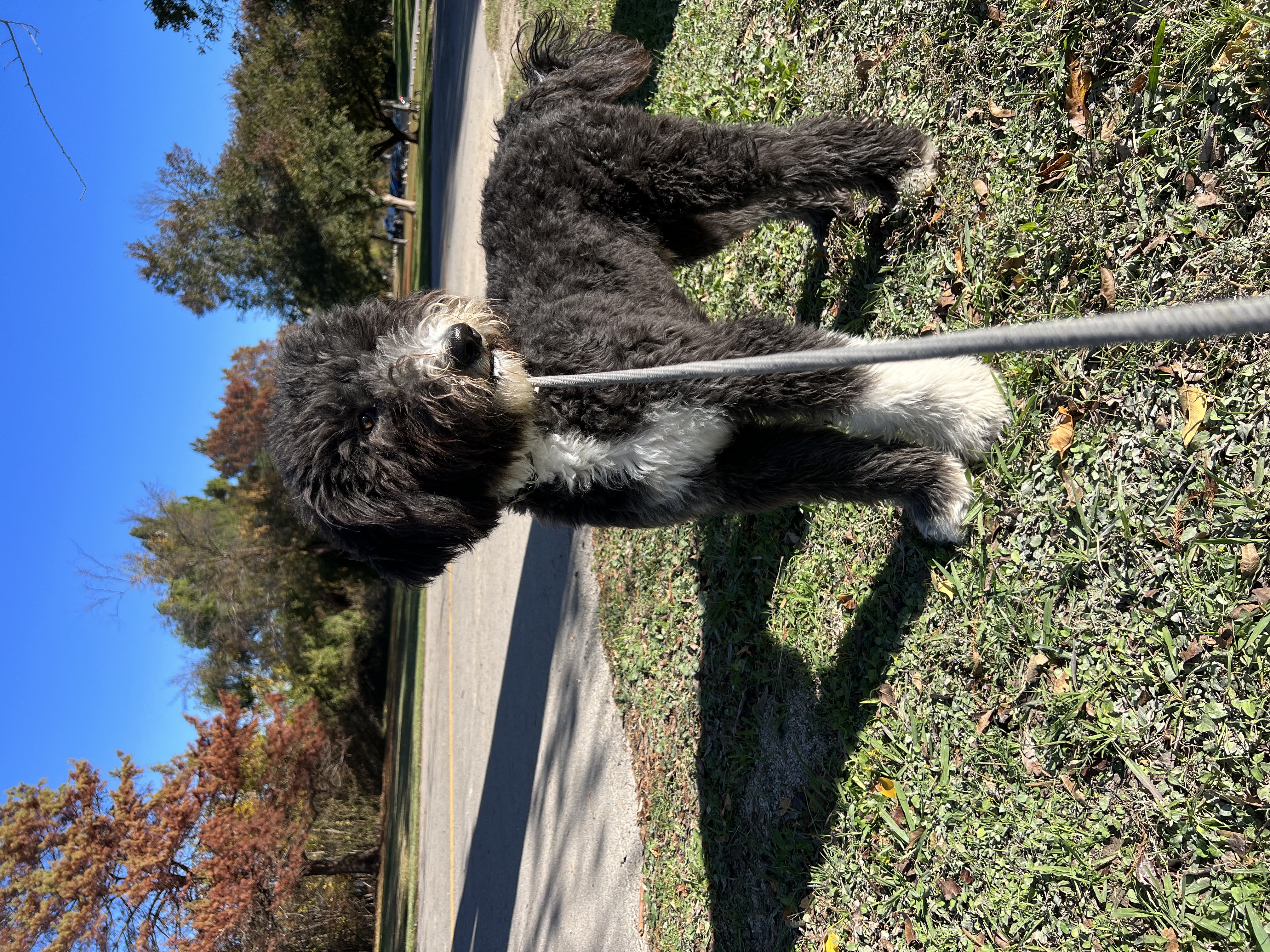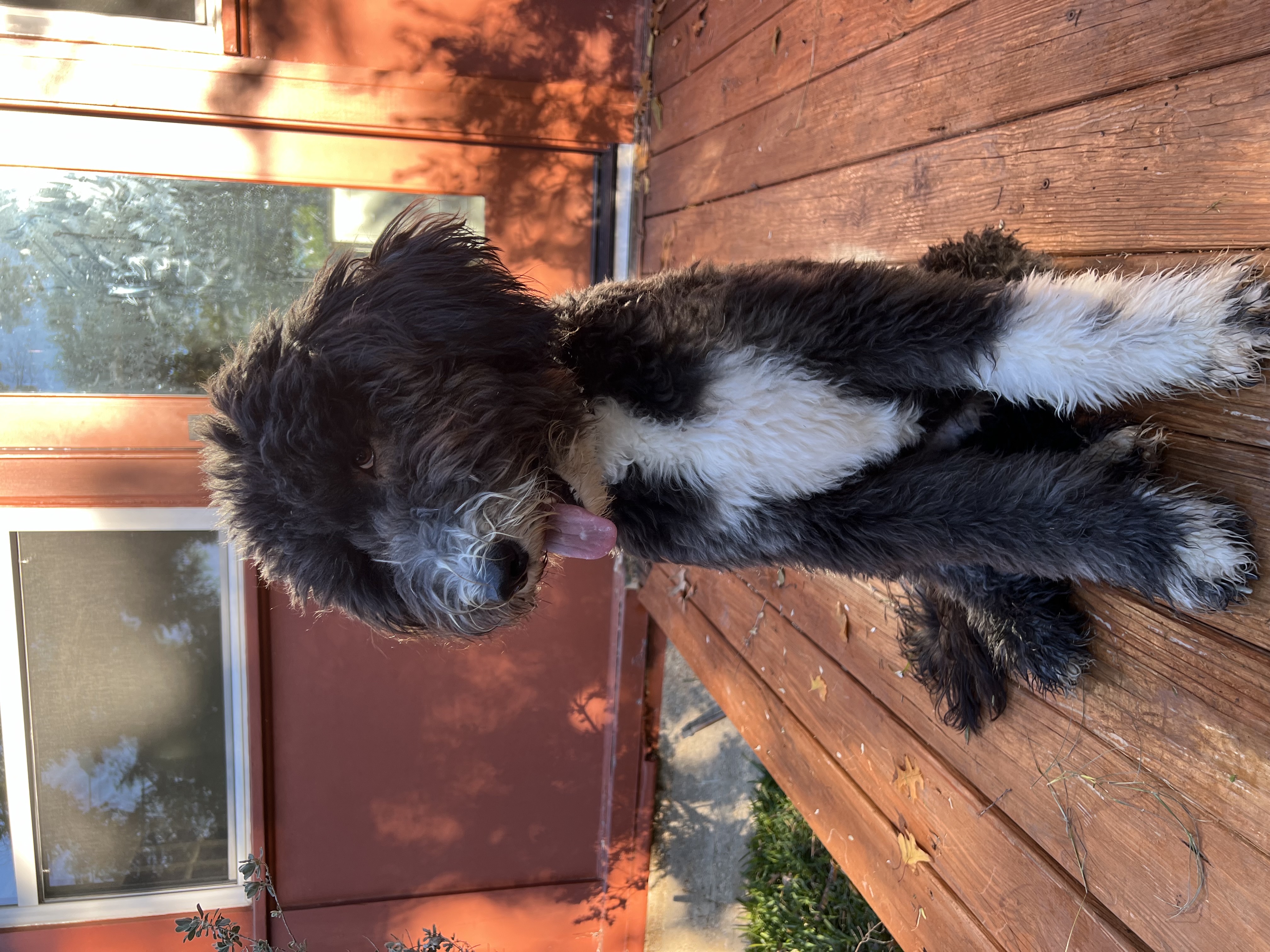 Meet Hickory, a lively 7-month-old Male Sheepadoodle weighing in at 45lbs. I'm an energetic pup who thrives on running laps in my yard, engaging with my myriad toys, and expressing my enthusiasm by barking at everyone passing by on my street. One of my favorite pastimes involves extracting each of my foster brother's toys from their basket and enticing him to join in the play. When in the backyard, I relish sunbathing and showcasing my impressive speed on the race track I've fashioned.