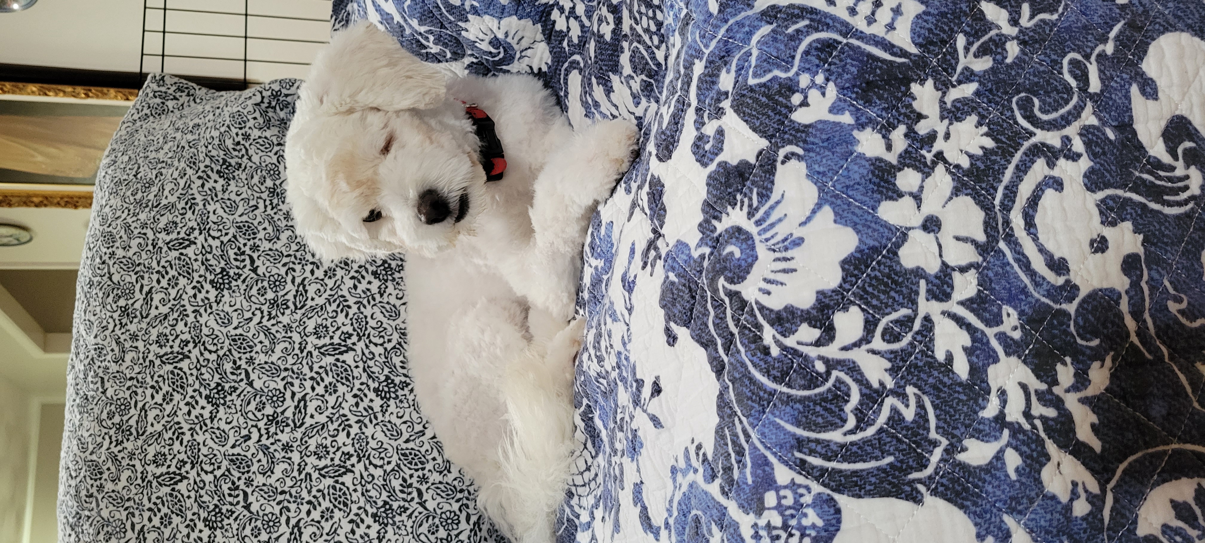 My daily routine begins around 6 am when I go out, returning to bed until 7:30 for breakfast and playtime. I'm a fan of games like chase, keep away, and tug with my foster siblings. Around noon, we take a nap, followed by more play or affection with my humans. At 3, I enjoy a car ride to pick up kids from school, relishing the ride and the company of kids. Dinner is at 5, followed by a short rest. After my food settles, it's back outside to watch for squirrels and play until dark. I wind down around 8, going outside briefly before settling on the couch for ample love. At 9, we go out one last time before bedtime, where I peacefully sleep with my humans.