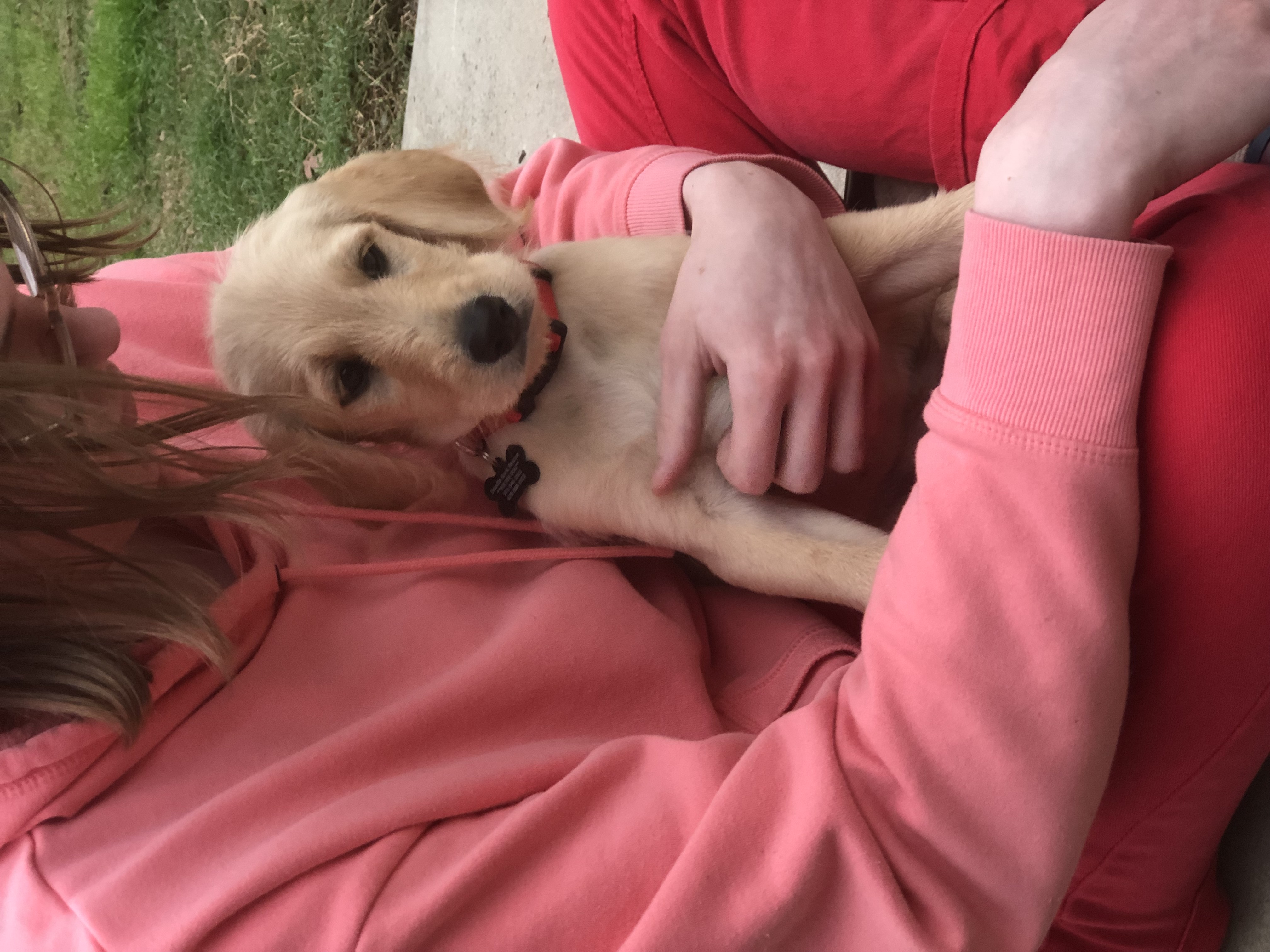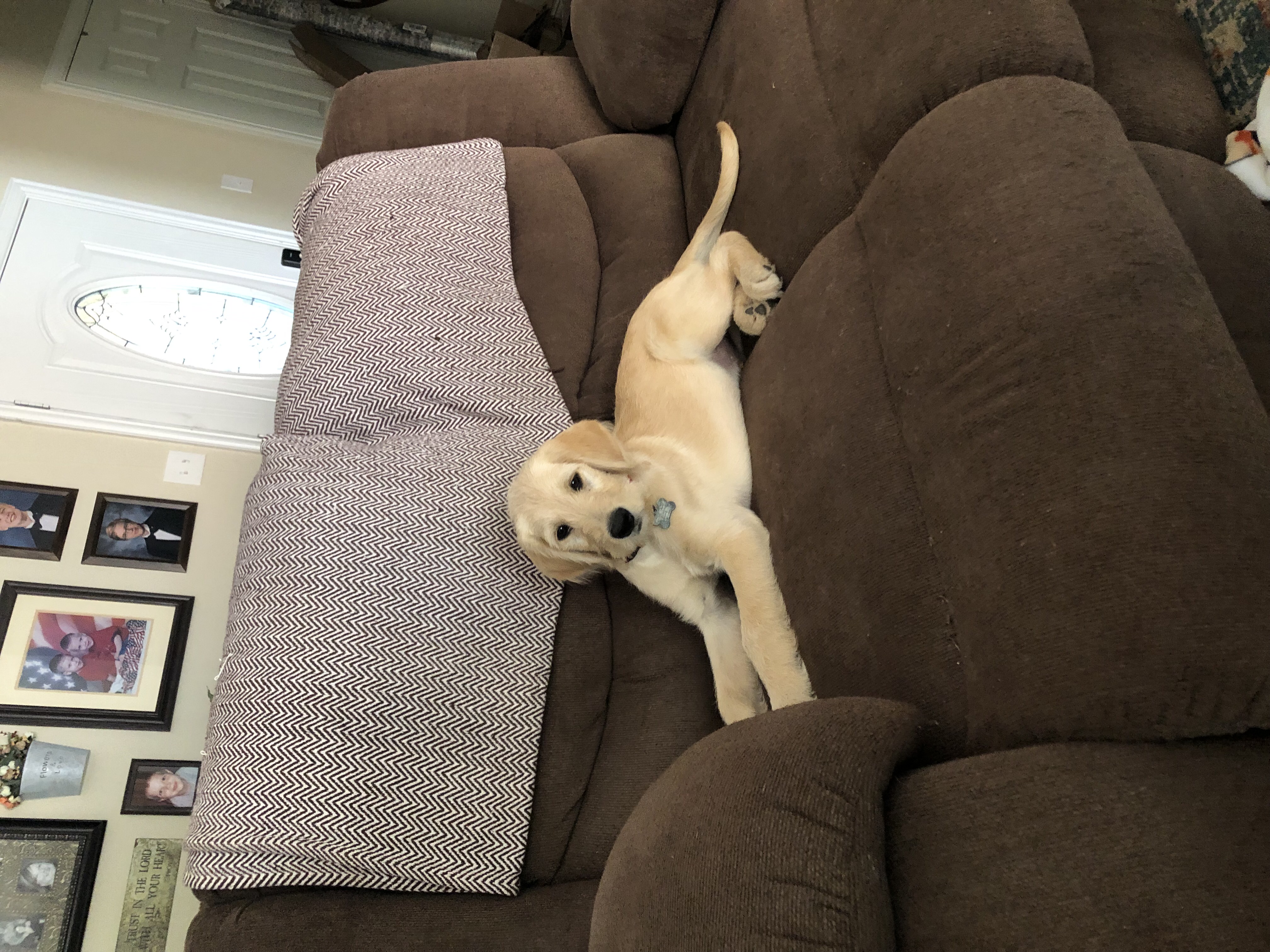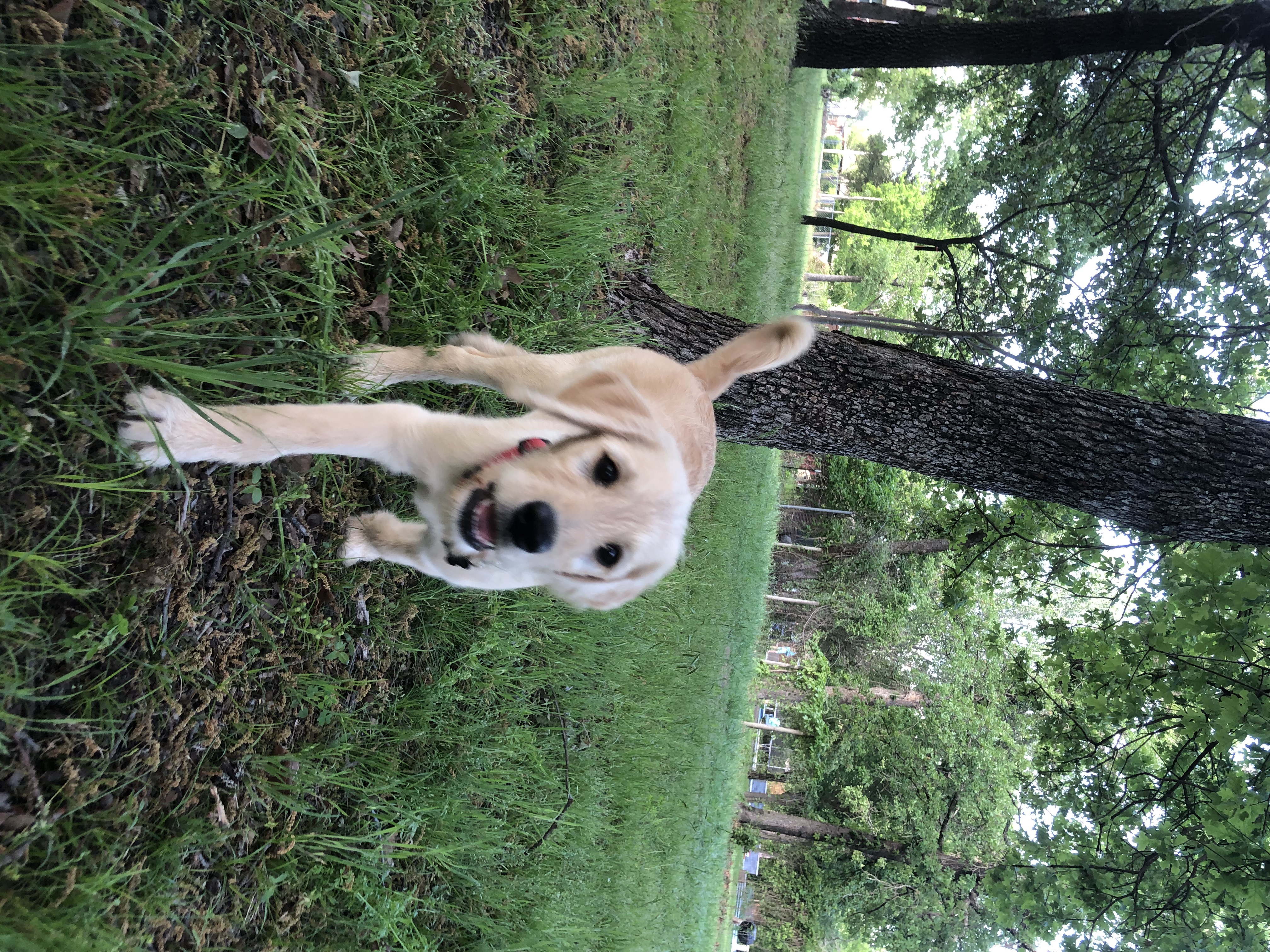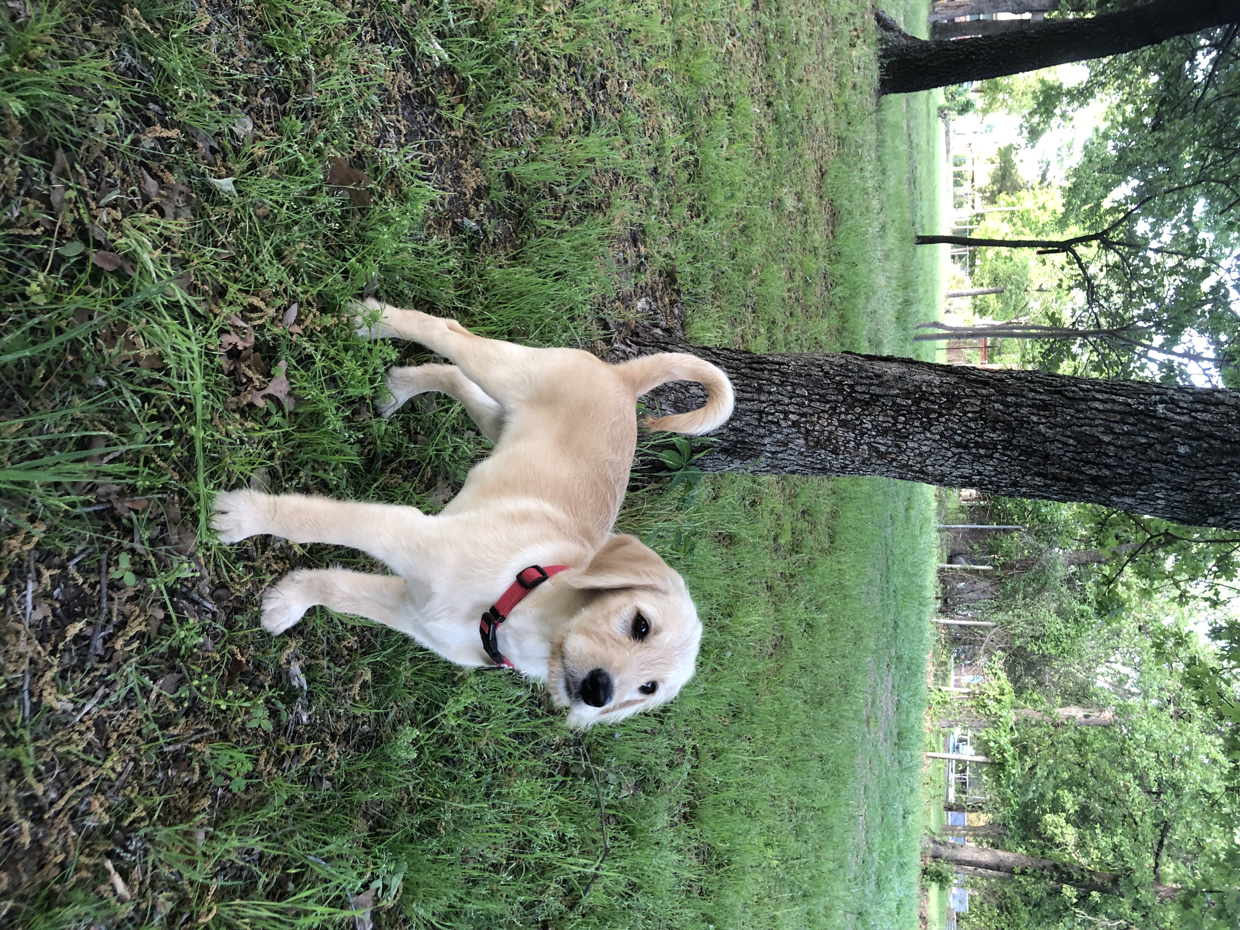 I am still working on lots of training because I’m still a puppy and I need a lot of patience! I can go all night and day without accidents if I stick to my routine but I still may forget sometimes. My leash training is going well but sometimes I think it’s fun to play and pull on the leash. I am working on it! I ride well in the car for short trips. Longer trips make me nauseous.