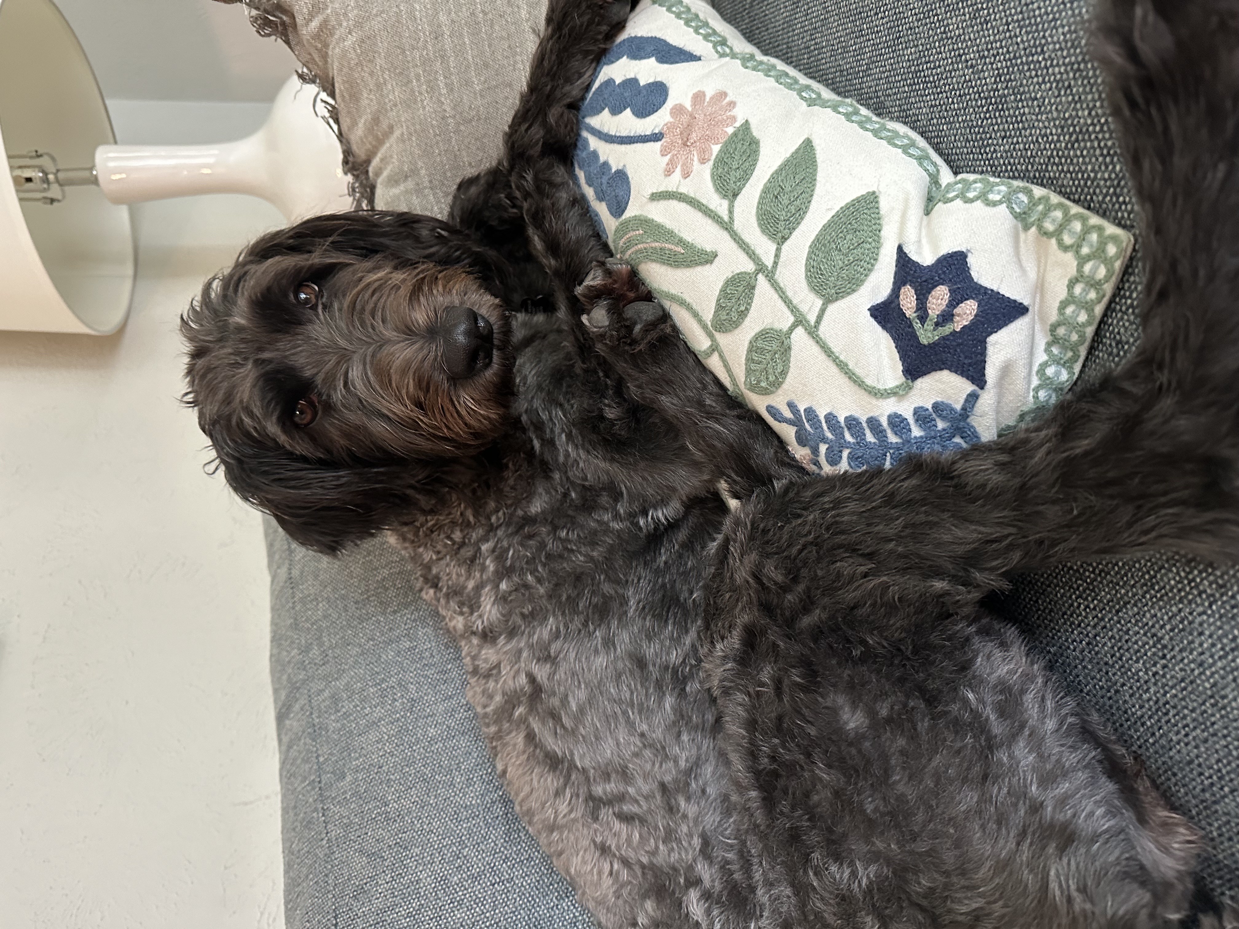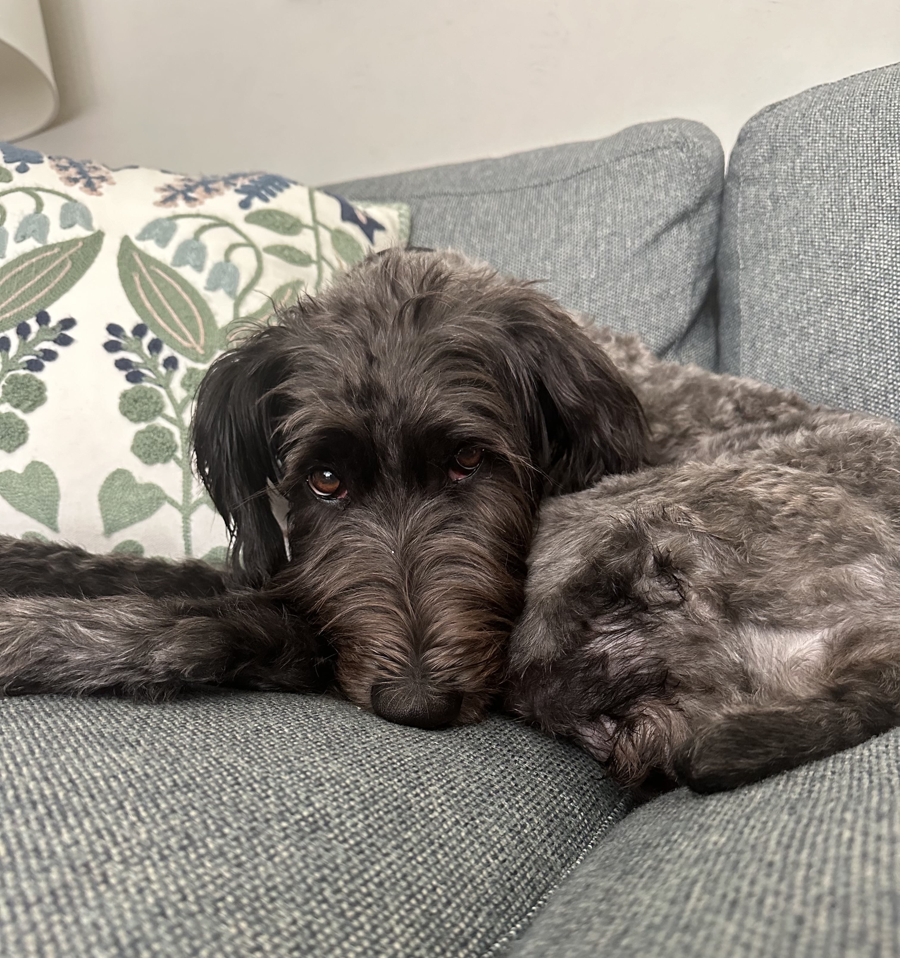 I’m absolutely obsessed with my foster mom and follow her everywhere! My favorite time of day is when we pick up our two little boys from school—I just can’t wait to see them! Fetch is my ideal game, and I have a blast carrying my plush toys all around the house. I live with another small doodle, and we play so well together—it’s a blast having a buddy!