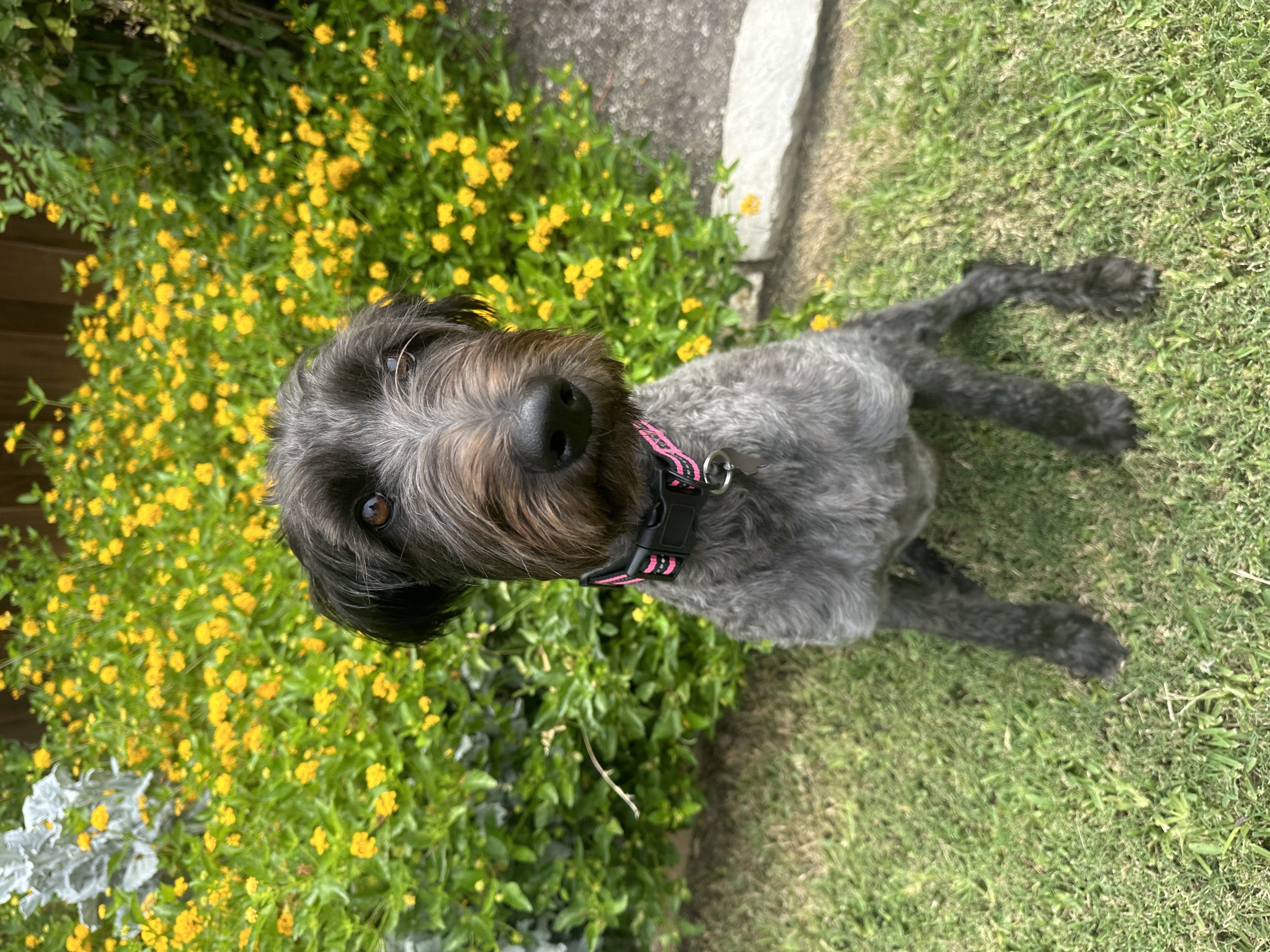 Hi there! My name is Ivy, and I’m a two-year-old female Schnoodle weighing in at 42 pounds. With my beautiful black and gray fur, I’m a total sweetheart who just loves being around adults and kids alike!