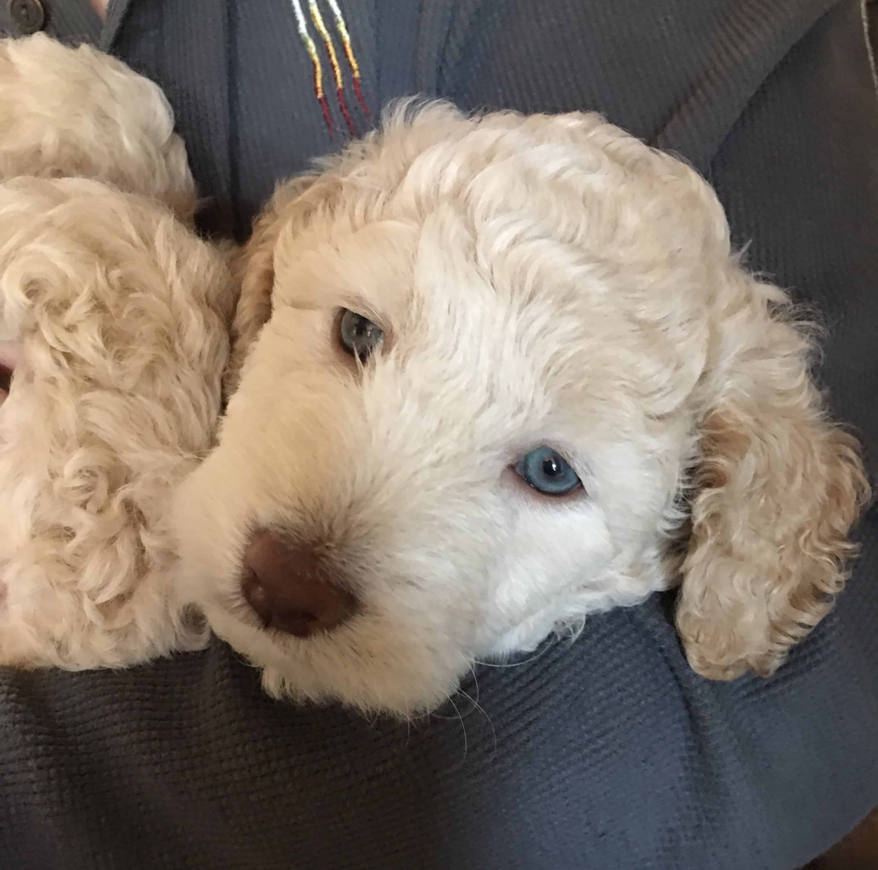Jamie's mother came to us from a breeder bust and shortly after they arrived in Dallas, Jamie and his siblings were born into the DRR family! Jamie is currently 8-weeks-old, (Born on April fools Day) he is a 9.4-pound curly-coated Labradoodle. Read what his foster has to say about him: