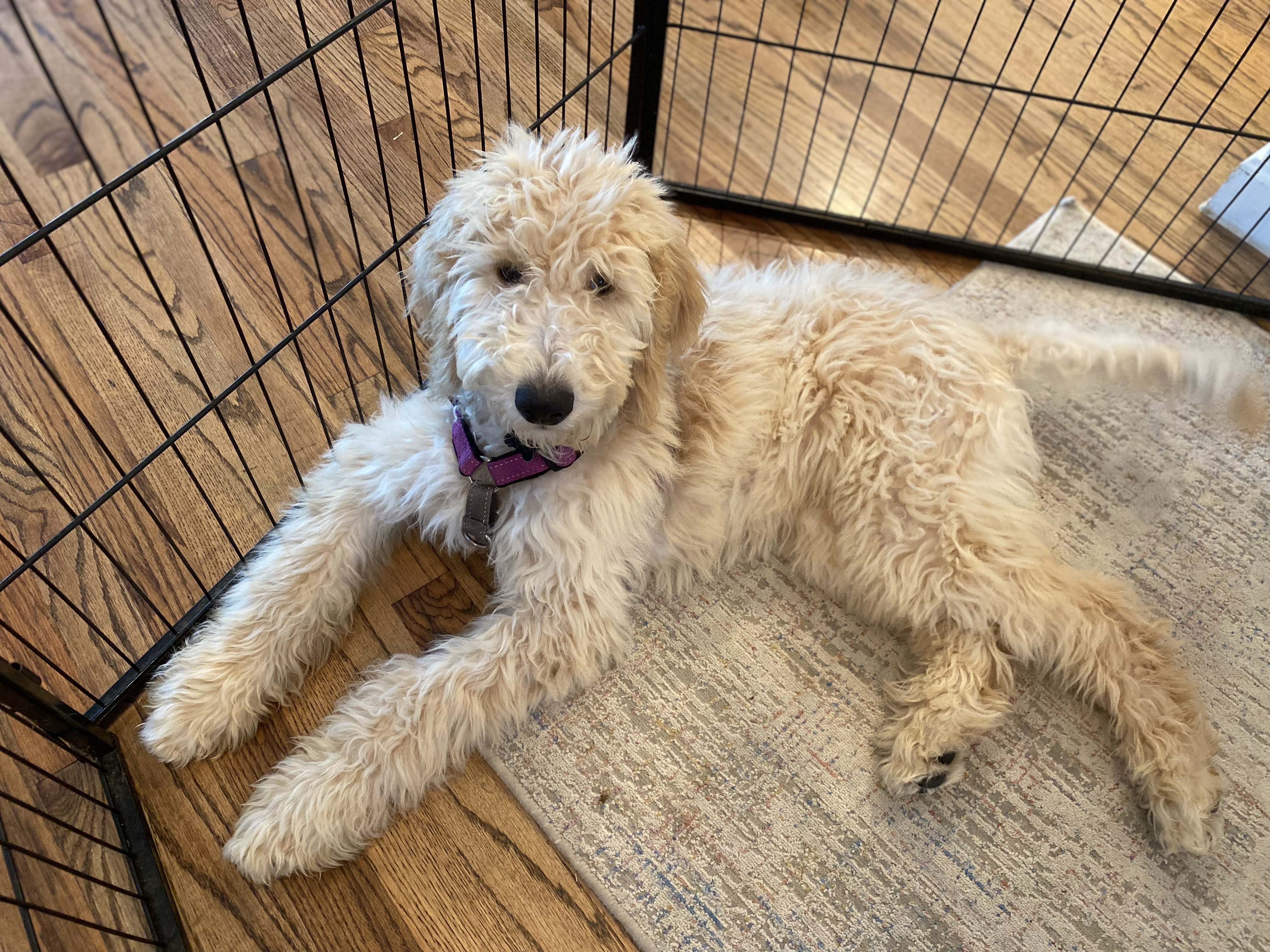 Hi, I’m Jefferson! I am a 4-month old Male Goldendoodle. My foster mom says I am a really sweet boy and am very affectionate. I like to play but have a laid back personality. I am a happy-go-lucky kind of guy. I love attention and am very affectionate towards my humans. I will be your shadow if you’ll let me. I like to run and play with other doggies, and sleep upside down in my crate when I get worn out!