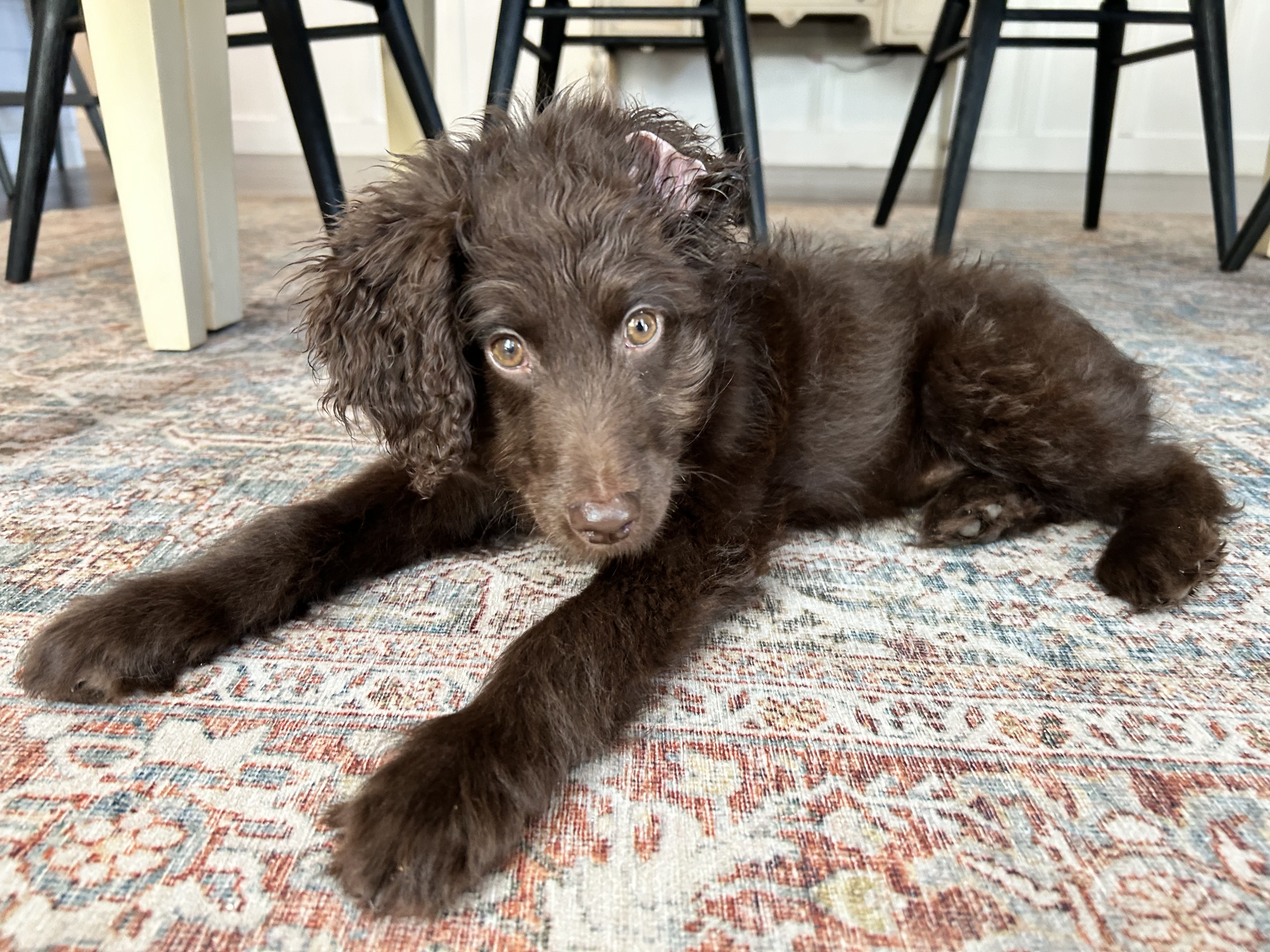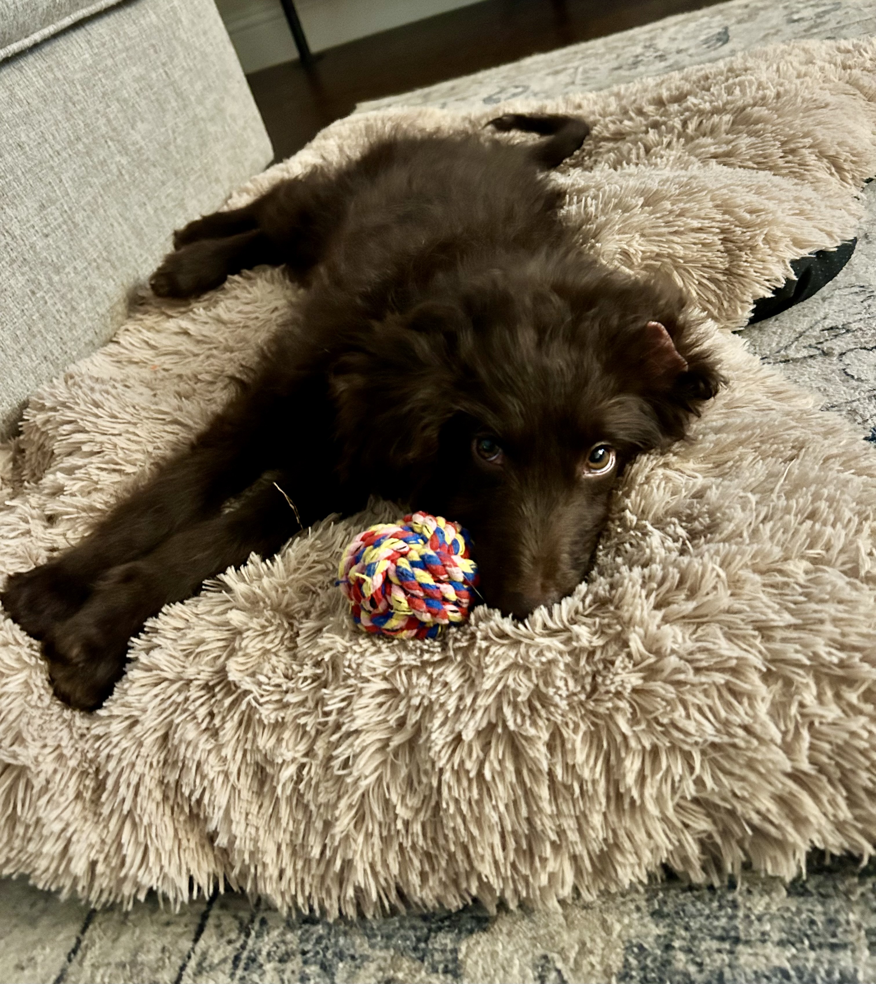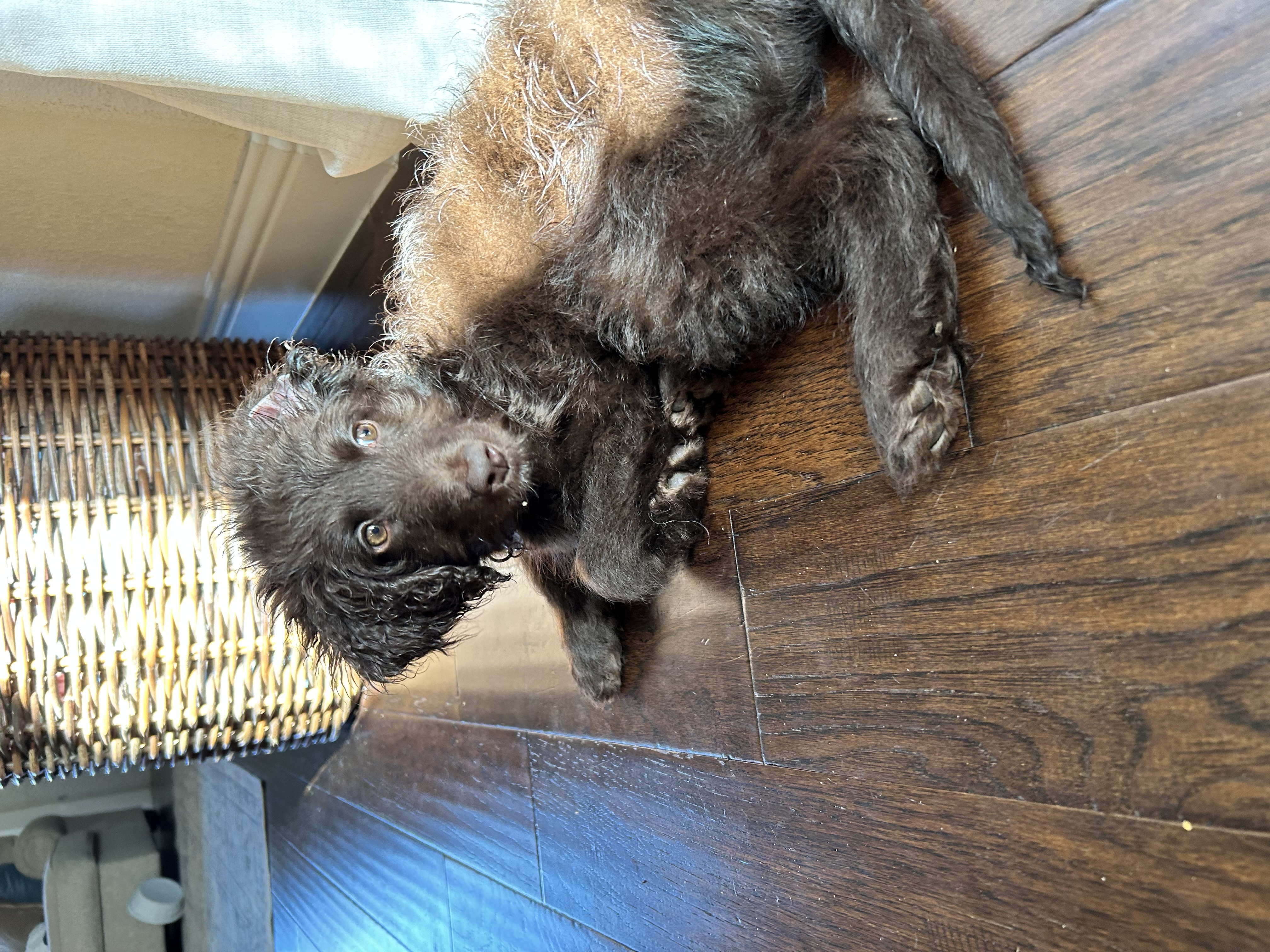 I love humans and dogs so much that I don’t love being in my crate - it makes me sad! I can be trusted overnight not in my crate - I’ll sleep with you at your feet or by your side and stay there all night. I know “sit,” and respond well to redirection. I’m doing really well with potty training - given regular opportunities to go every two hours or so and after I wake up from a nap.