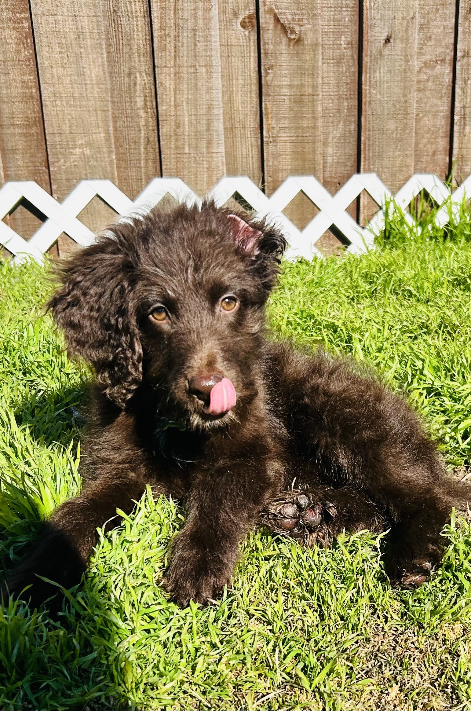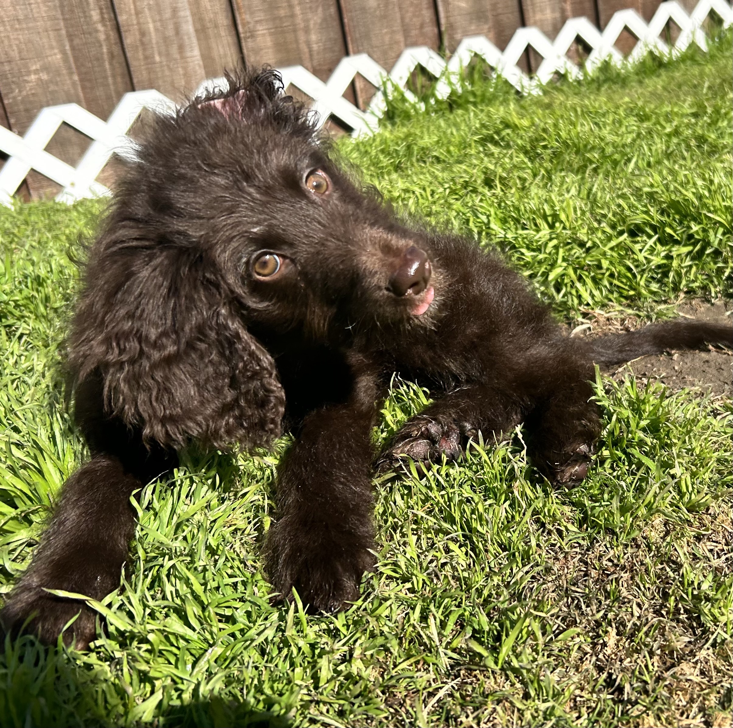 Hi there! I am a 14-week-old, Female Poodle mix weighing about 10 pounds. They call me Jenny and tell me I have beautiful eyes and chocolate fur. Part of my ear is gone, but it doesn't effect my quality of life at all! It actually just adds to my beauty.