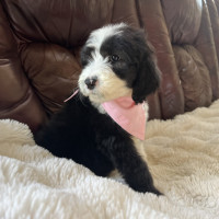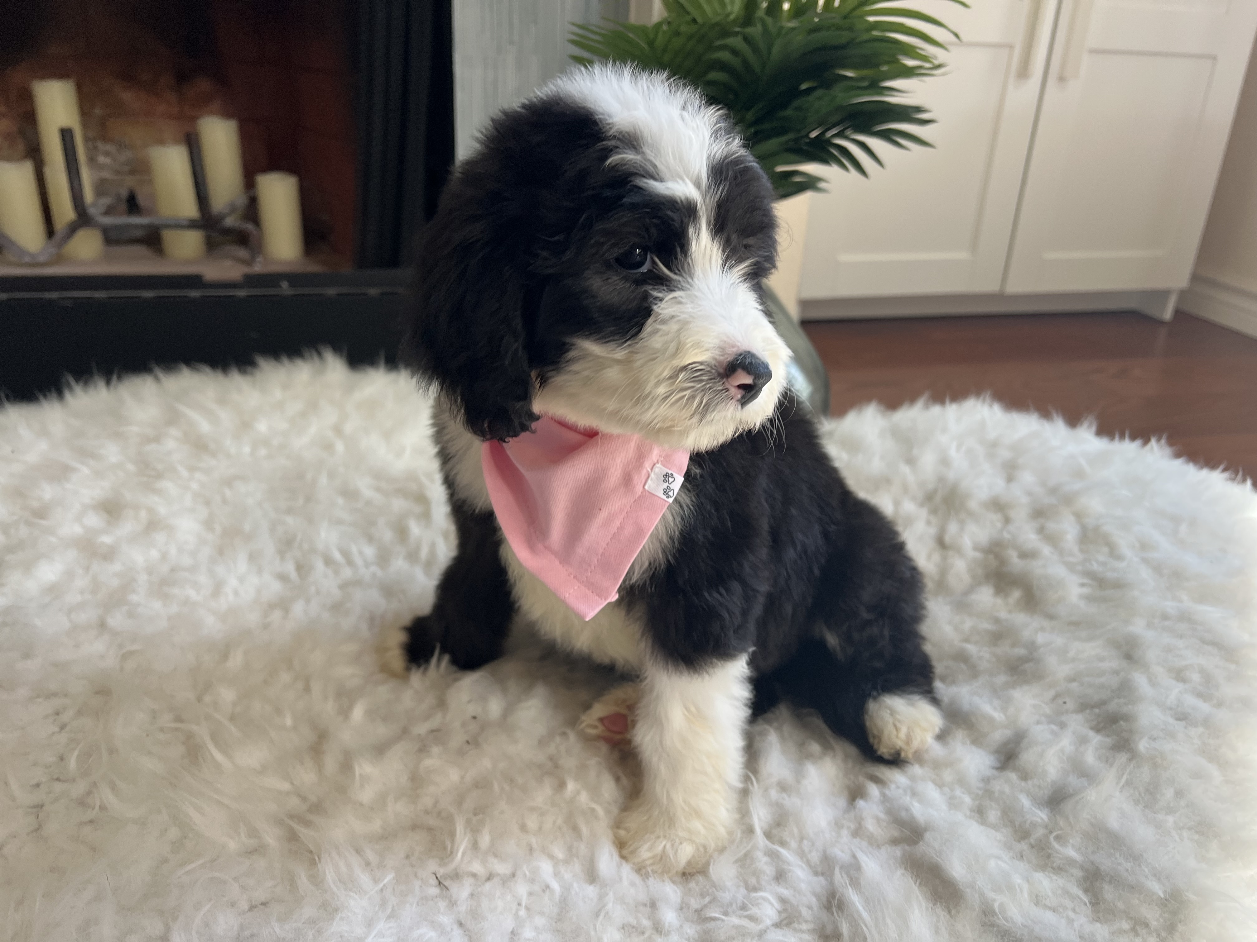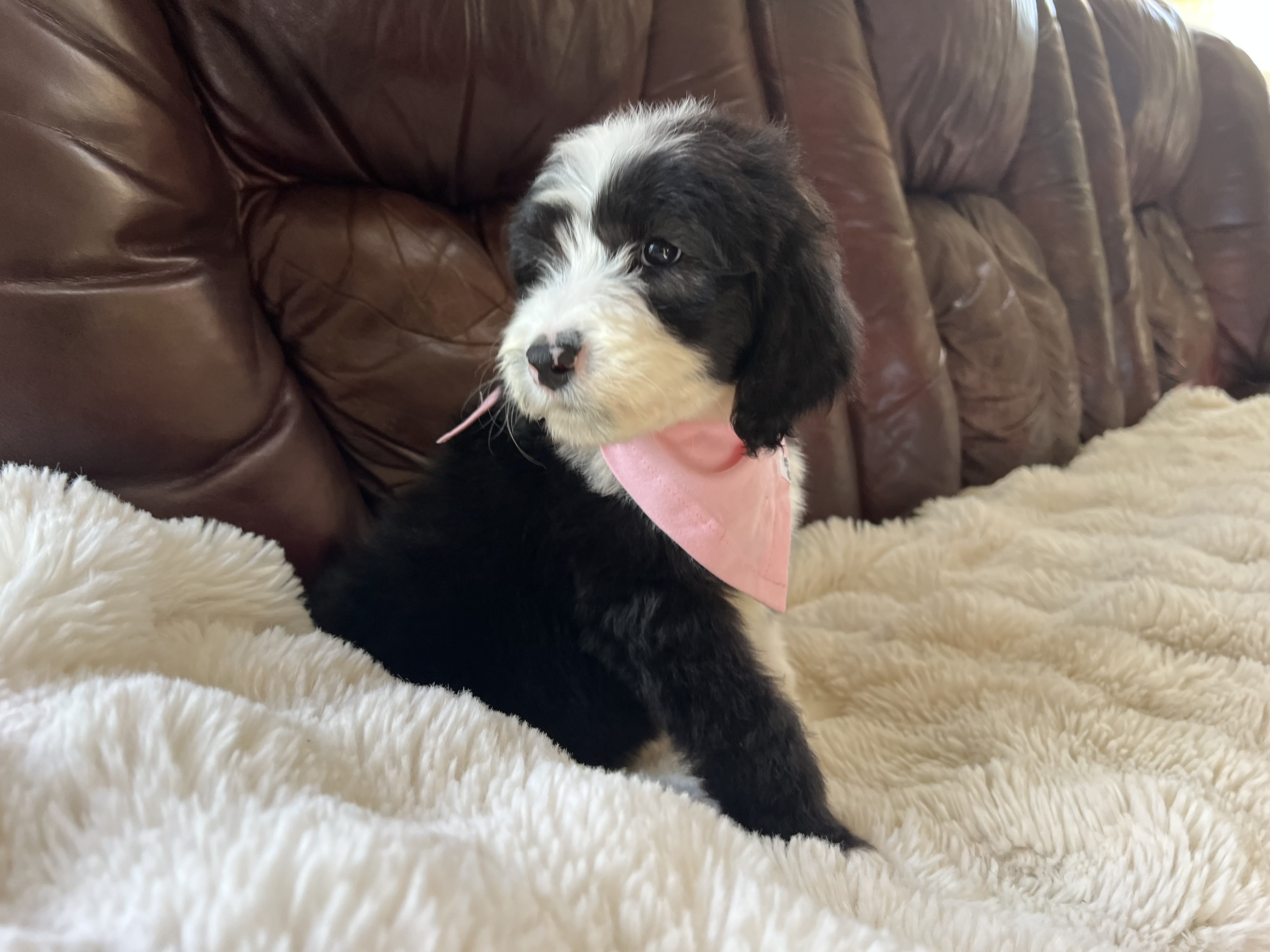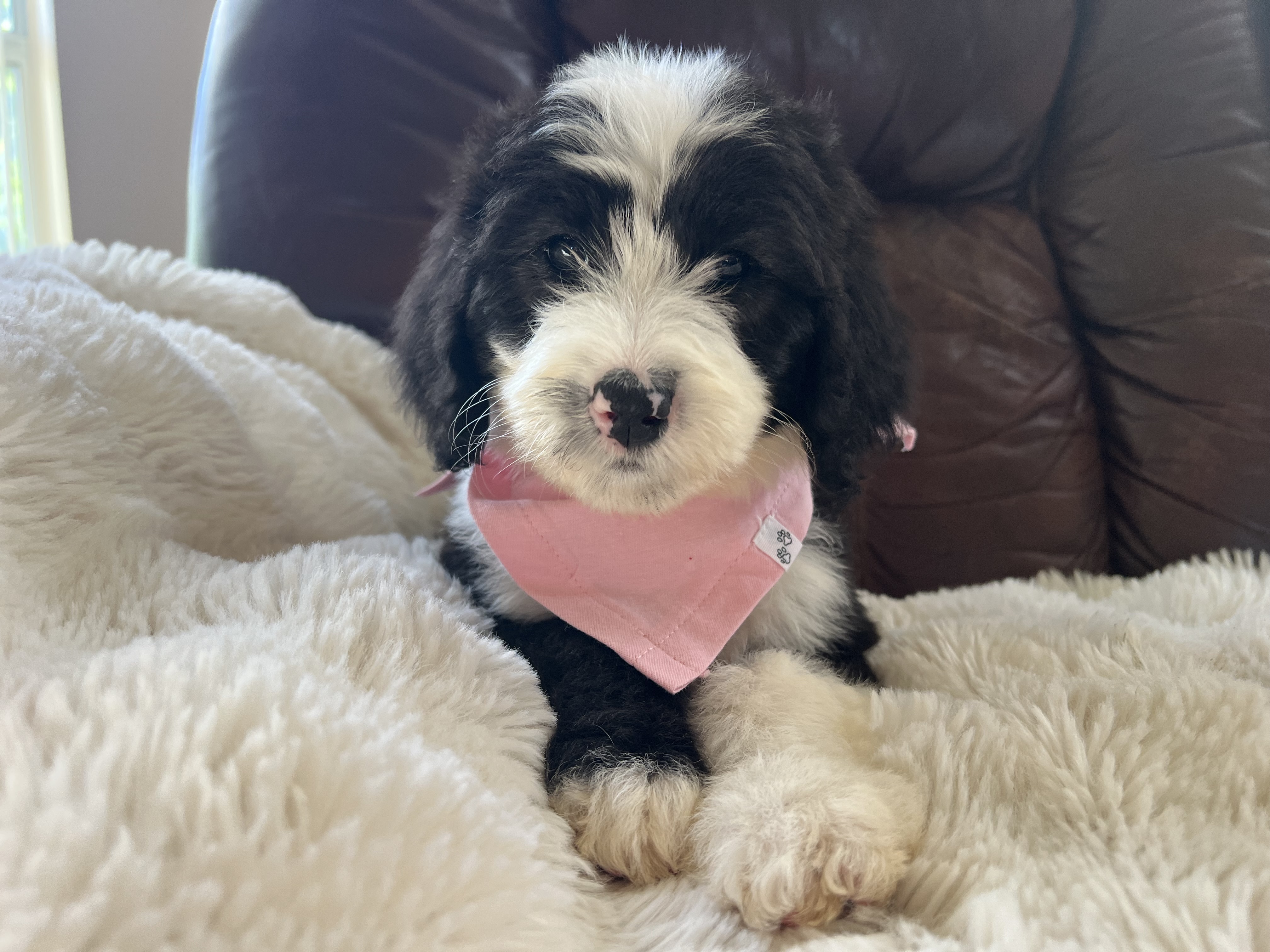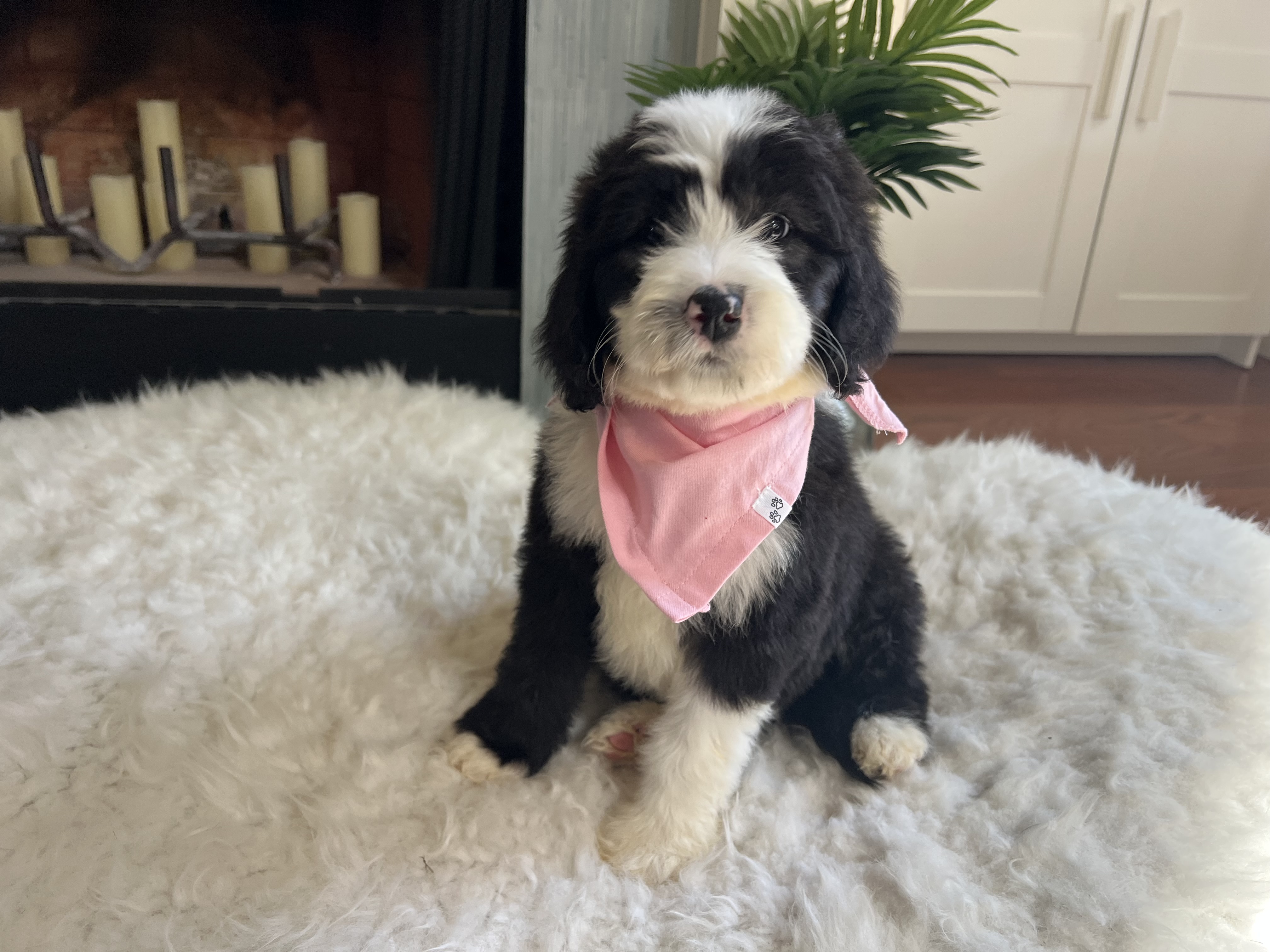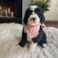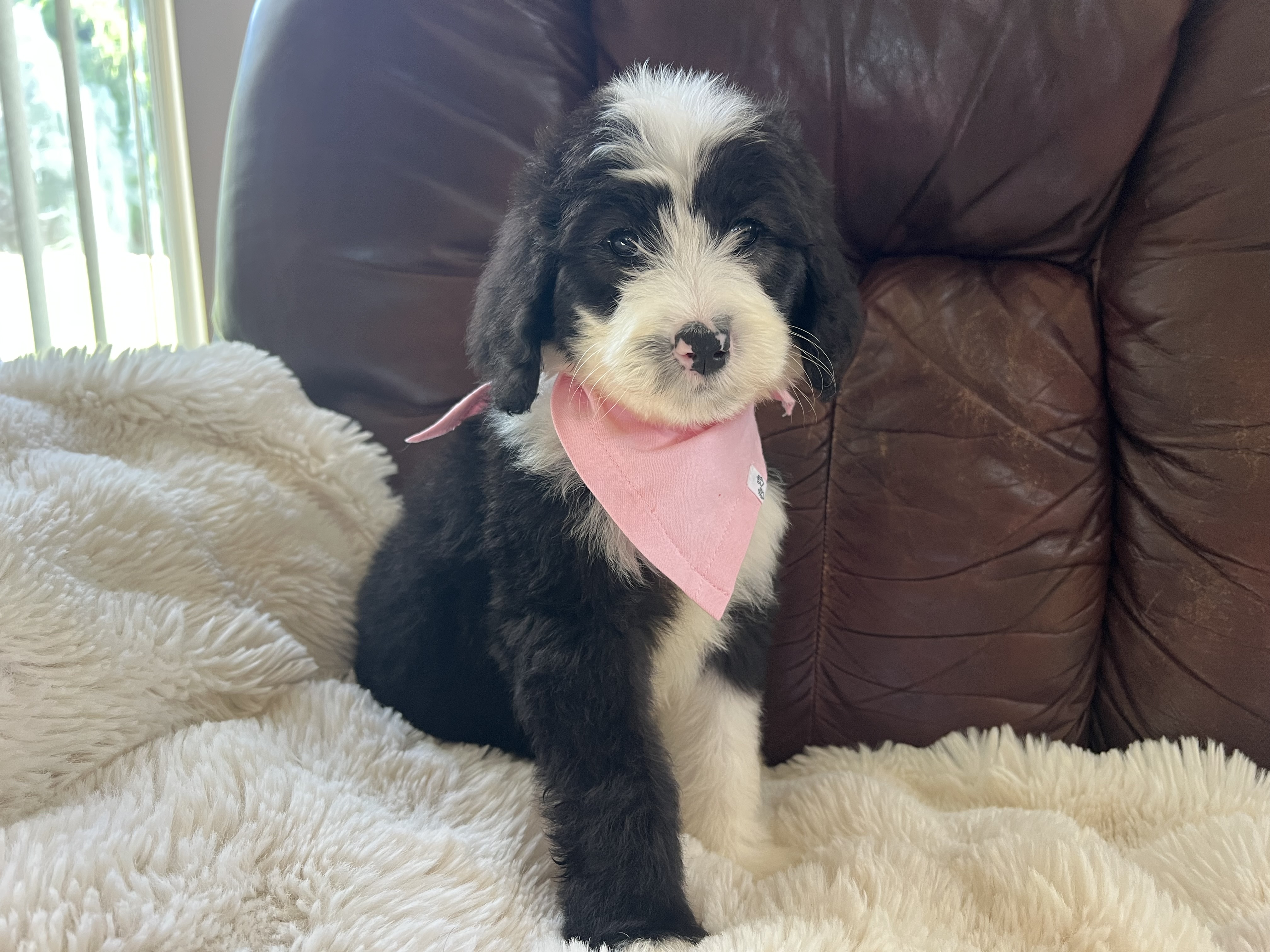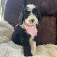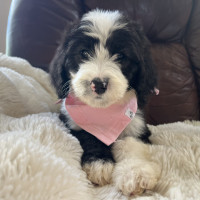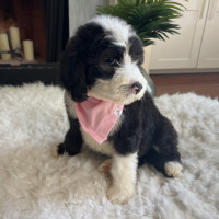 Hi there, I’m Jinny — named after a golf legend and already swinging big in the charm department! ⛳ I’m an 8-week-old, 6-pound poodle mix (maybe a sheepadoodle?) with a soft coat of puppy fluff and a heart full of sweetness. It’s still too early to know if I’ll shed, but I promise I’ll always be adorable.