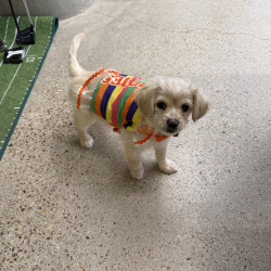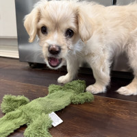 Hi, I’m baby June — a 3-month-old, 5-pound poodle mix girly fluff ball with a big heart and an even bigger personality. I’m a blonde pocket diva with just the right amount of sass, a cautious curiosity, and a whole lot of love to give.