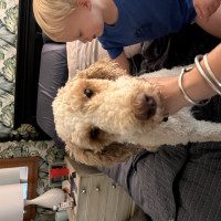 Let me introduce myself—my name is Junibee, though you can call me Juni. A true lady never reveals her age, but I’m somewhere between 2 and 4 years old. I’m a graceful 40-pound Poodle mix with soft, curly fur that doesn’t shed, which I hear is quite the bonus. You might notice my tail is a little shorter than usual—an injury that has been fixed—but I like to think it just gives me a bit of extra charm.