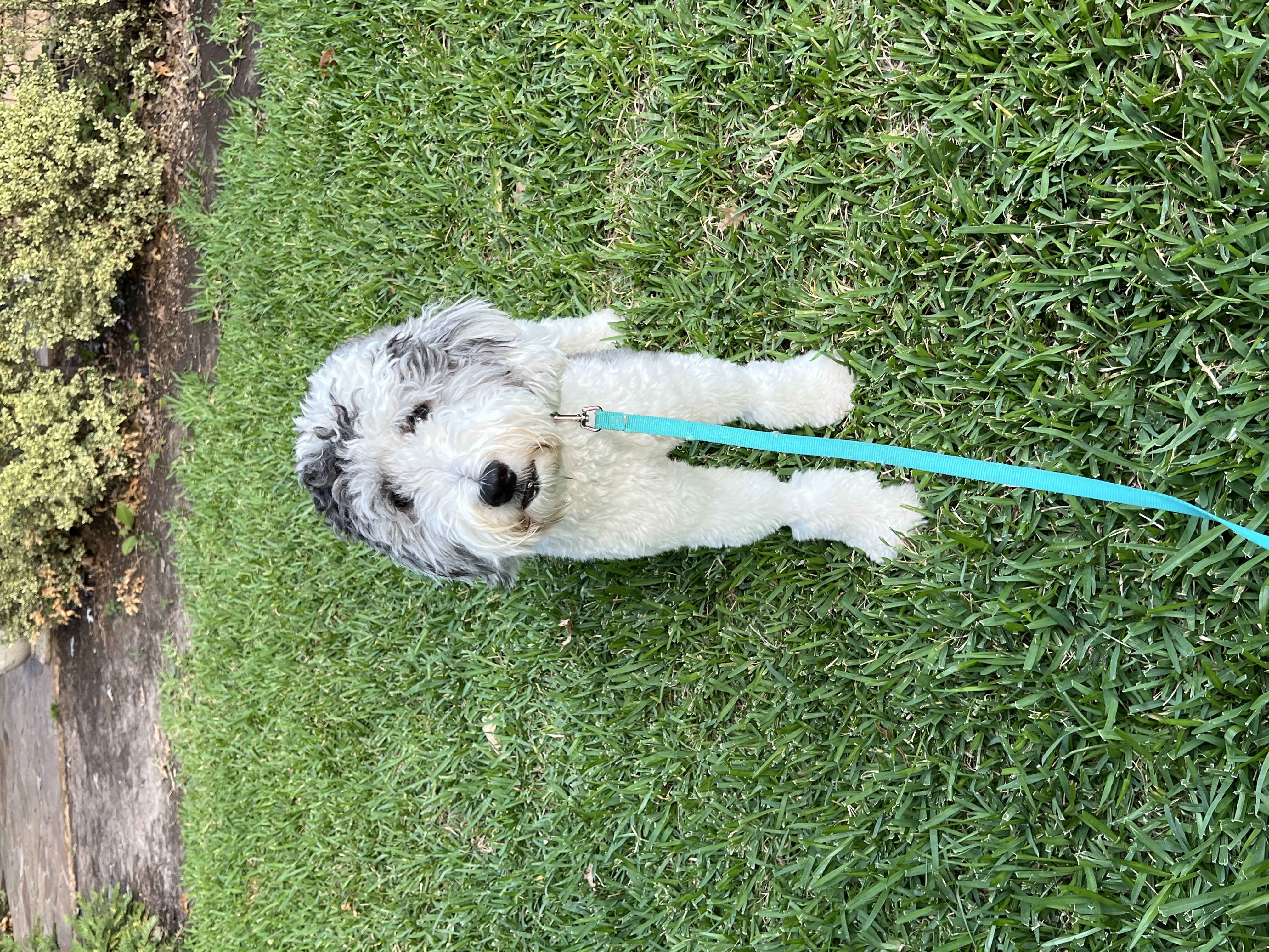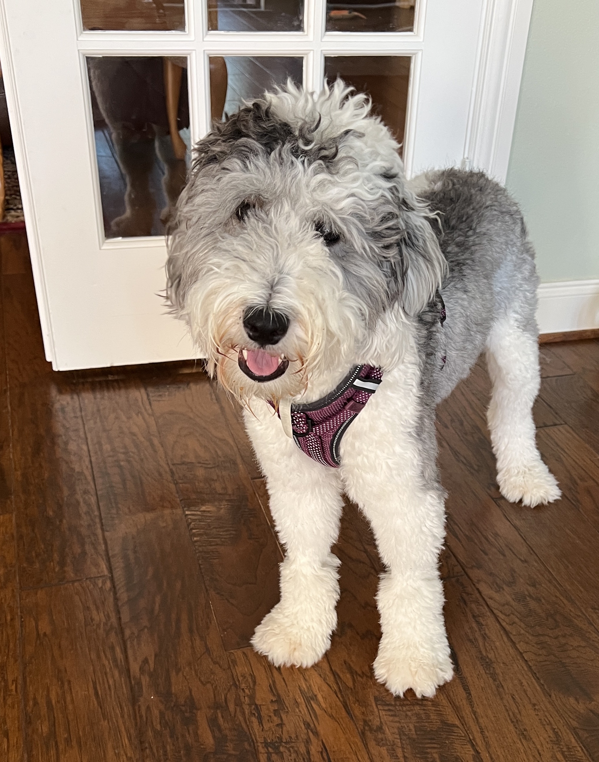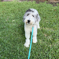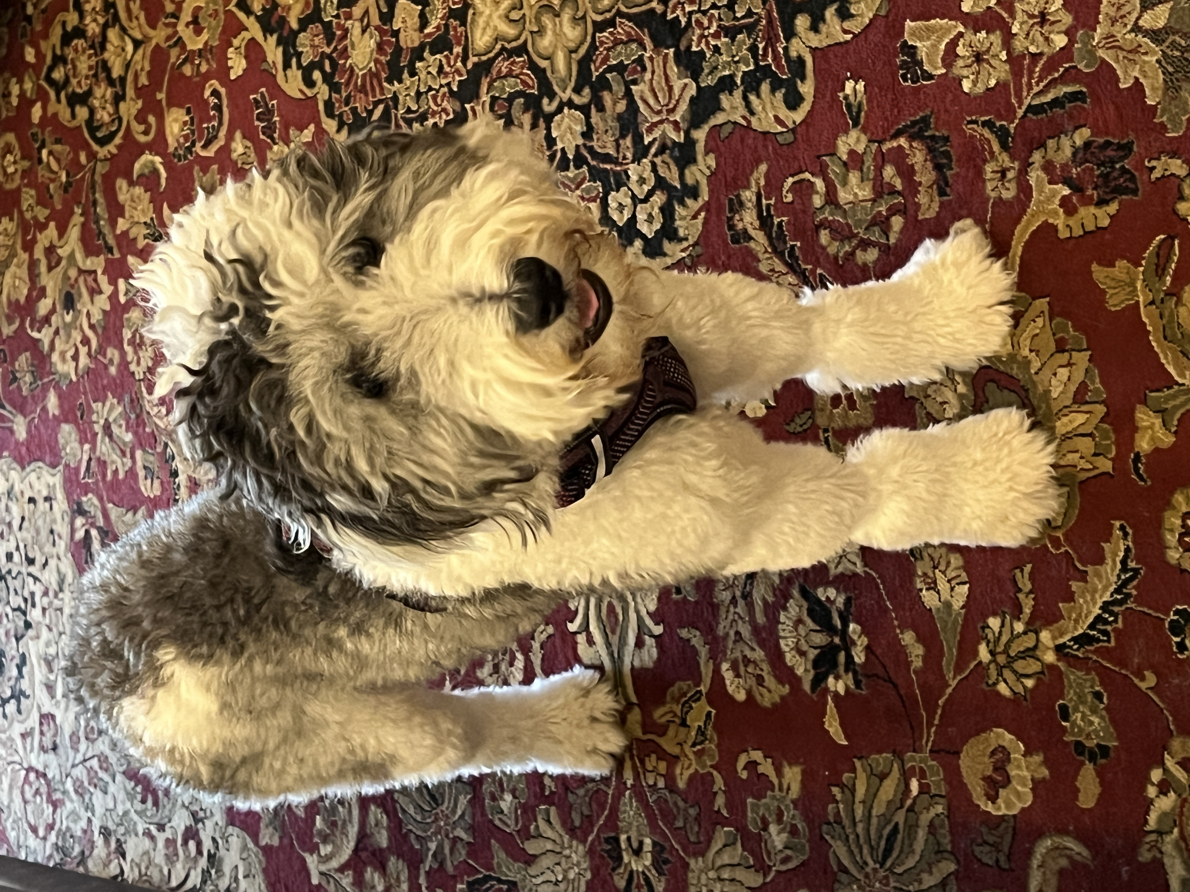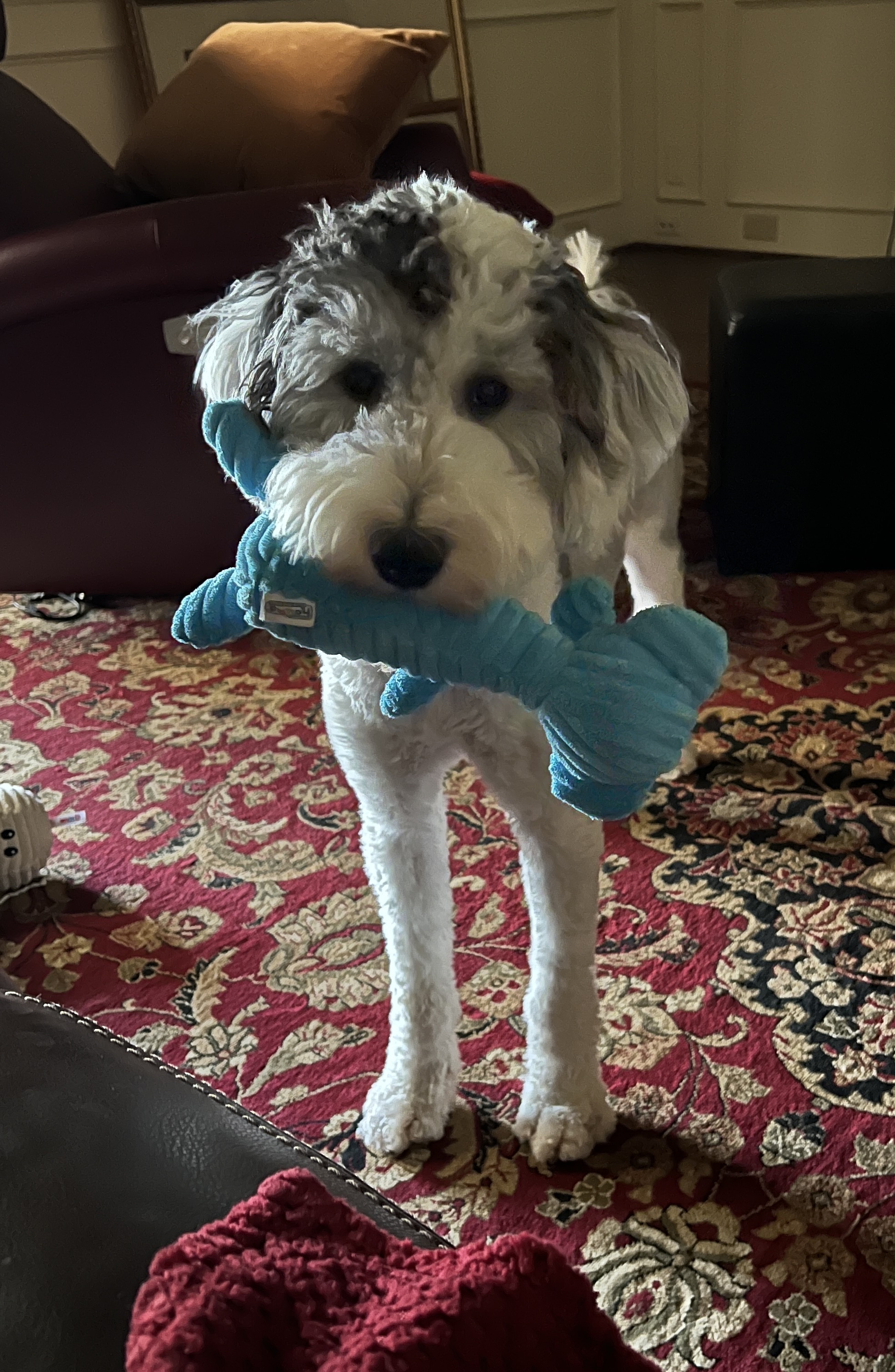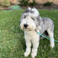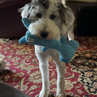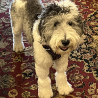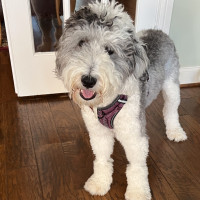 Hi, I’m Juniper—though my friends call me Juni! I’m a one-year-old sheepadoodle with a fluffy coat, a wiggly tail, and a curious heart. At just 35 pounds, I’m on the petite side, but don’t let that fool you—I’ve got plenty of energy packed in. Life as a family dog is still new to me, and I can be shy or unsure around strangers, often choosing to hang back until I feel safe. Because of that, I’d be happiest in a calm household without kids, where patience and gentleness are part of the daily routine.